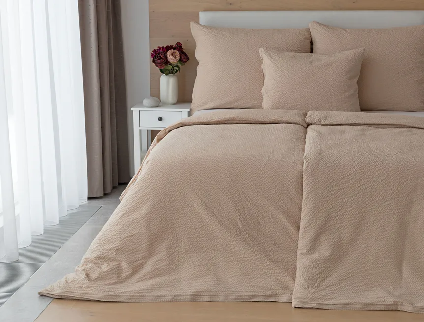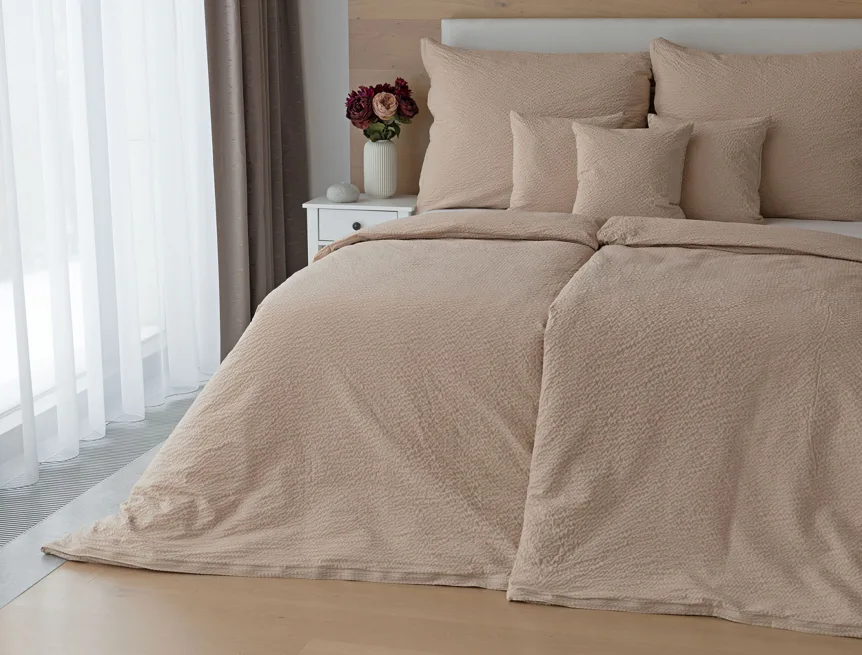 Dopřejte své ložnici nadčasový styl a eleganci s jednobarevným krepovým povlečením. Typická jemně zvlněná struktura krepové tkaniny dodává povlečení osobitý vzhled a zároveň zajišťuje jeho snadnou údržbu.