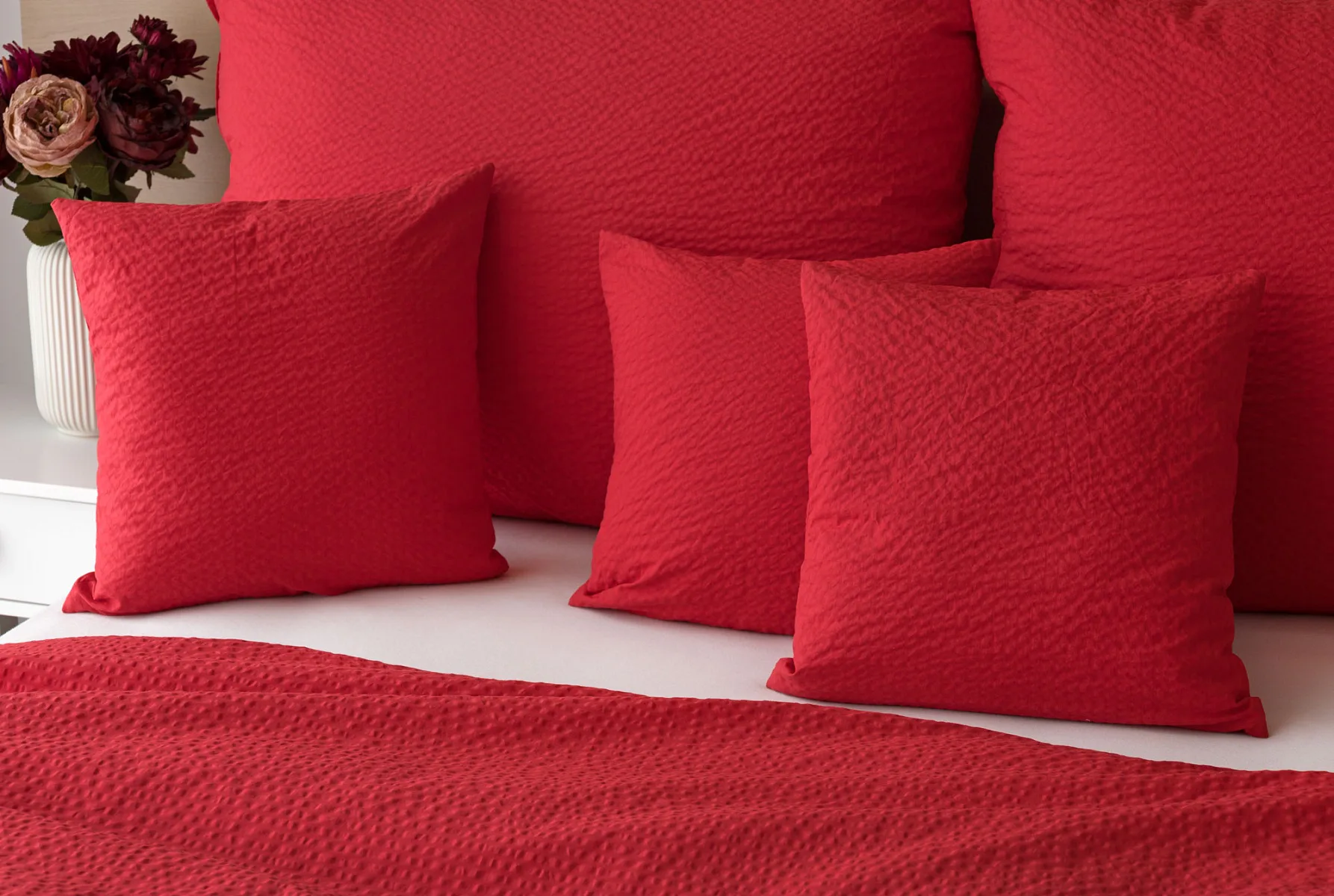 Luxusní červené krepové povlečení v provedení kvalitní 100% bavlny je opatřeno komfortním zipovým uzávěrem. Povlečení se snadno udržuje - nežehlí se.