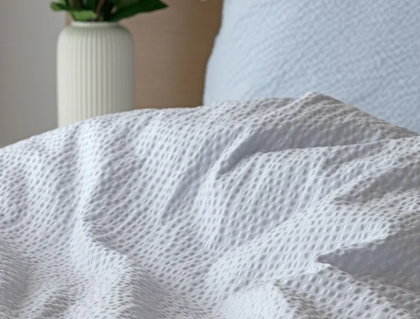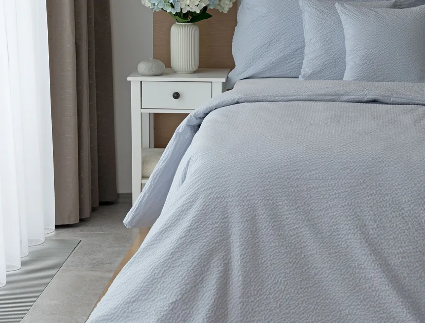 Krep je velmi oblíbený materiál především díky tomu, že nevyžaduje žehlení. Po vyprání si zachovává svůj charakteristický povrch a žehlením by mohlo dojít k narušení jeho typické krepové struktury, proto žehlení krepového povlečení nedoporučujeme.