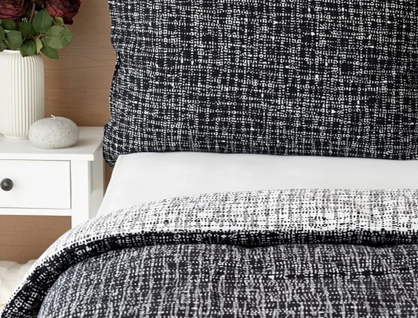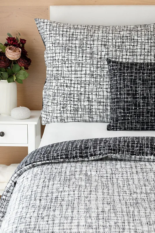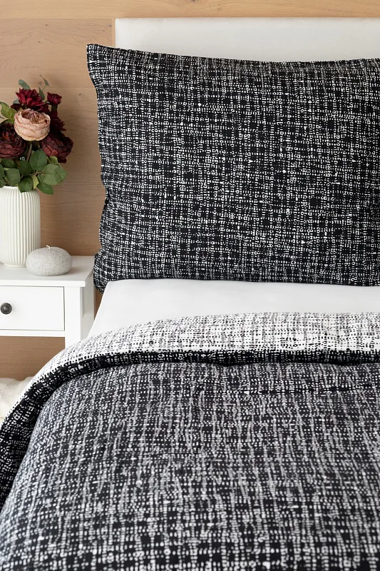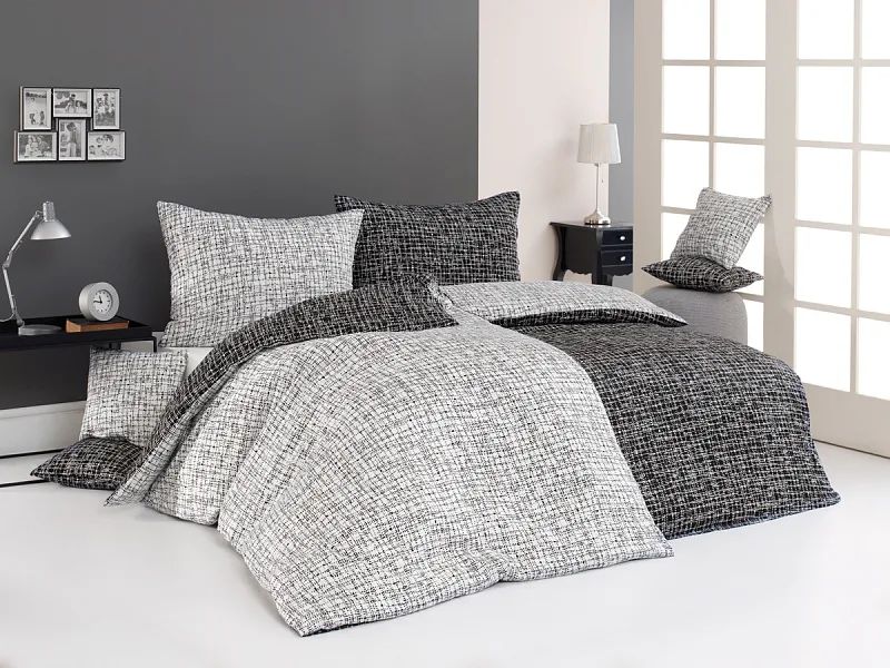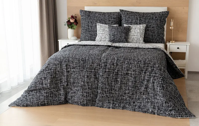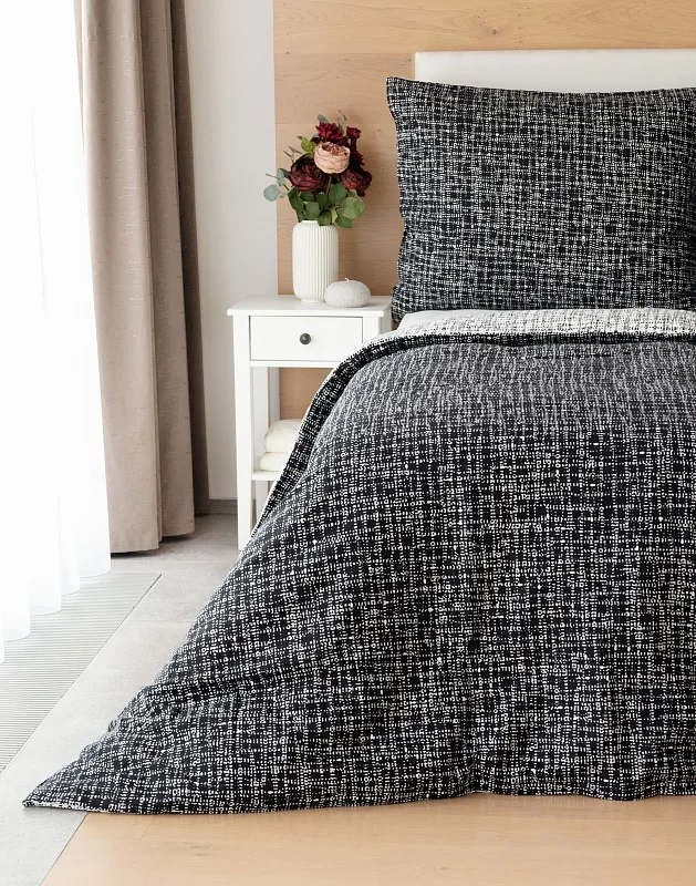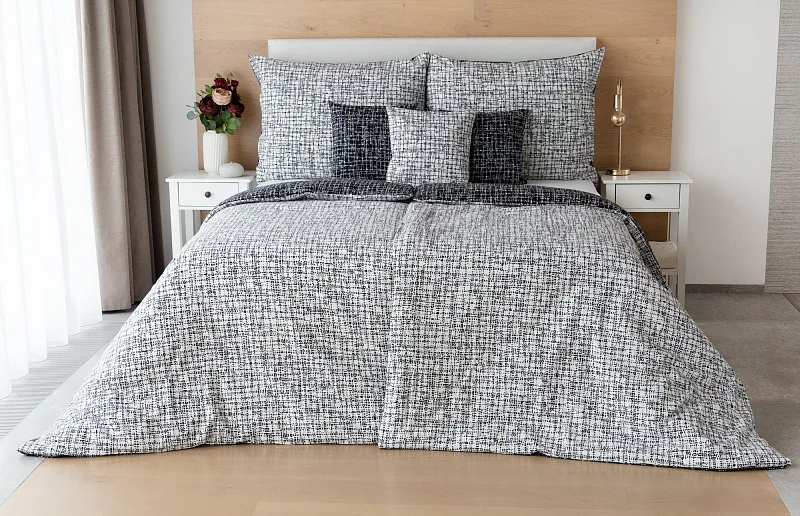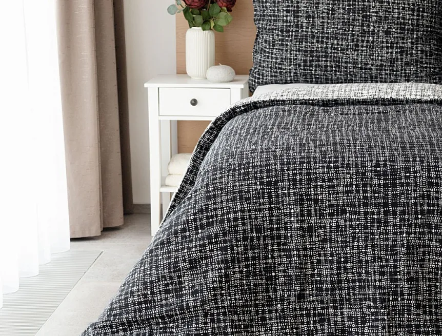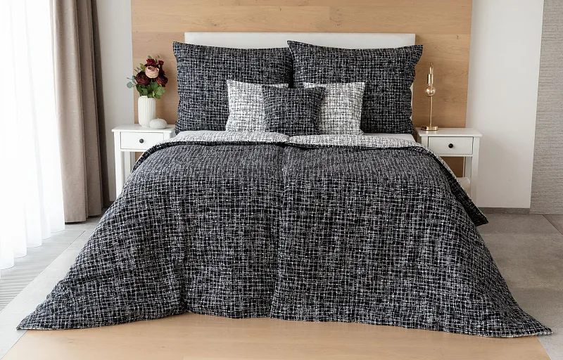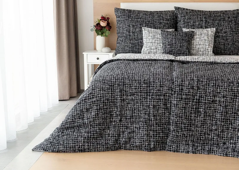 Vrchní strana povlečení je provedena s bílým podkladem a spodní pak opačně s černým podkladem, zapínání usnadní komfortní zipový uzávěr.