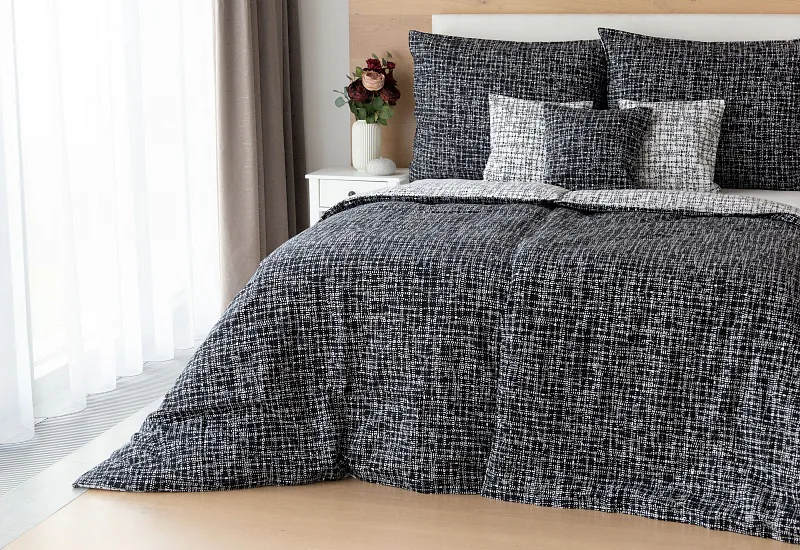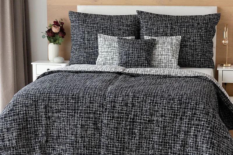 Báječně jednoduché v nestárnoucí kombinaci černé a bílé je ložní povlečení Labyrint. Jak napovídá název, vzor představuje miniaturu labyrintu.