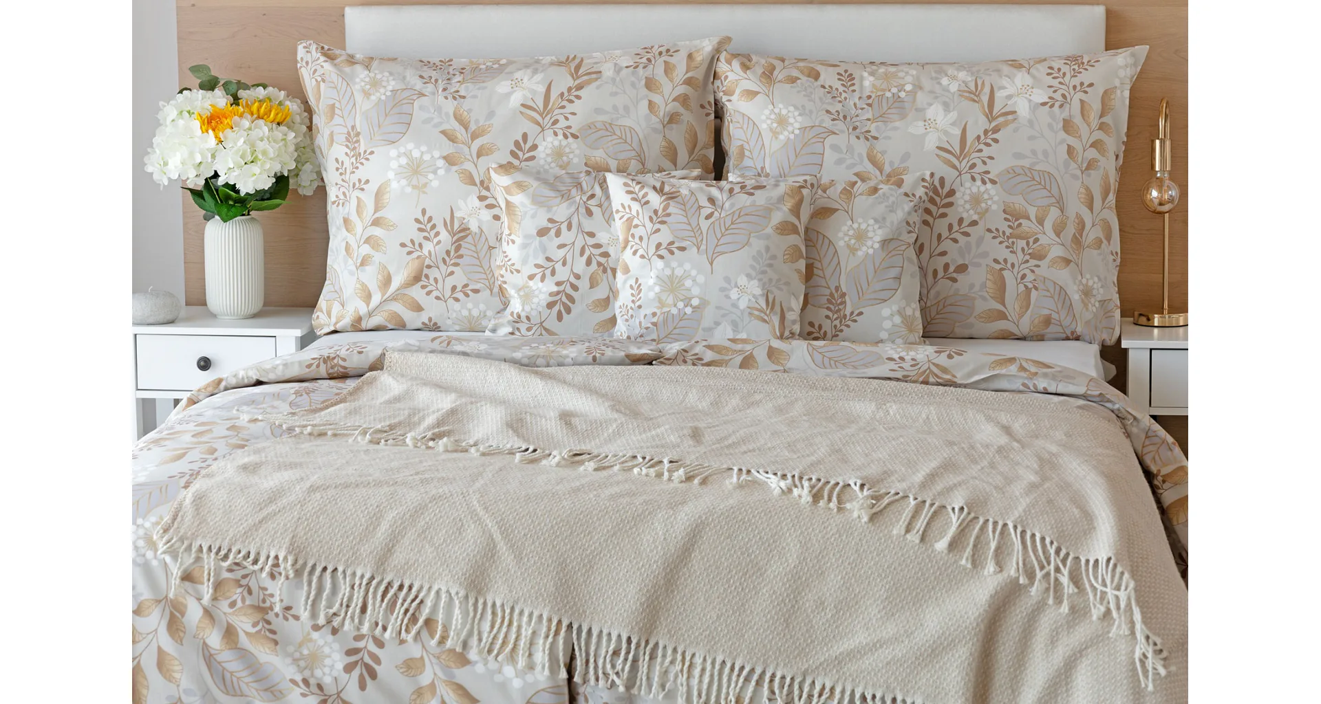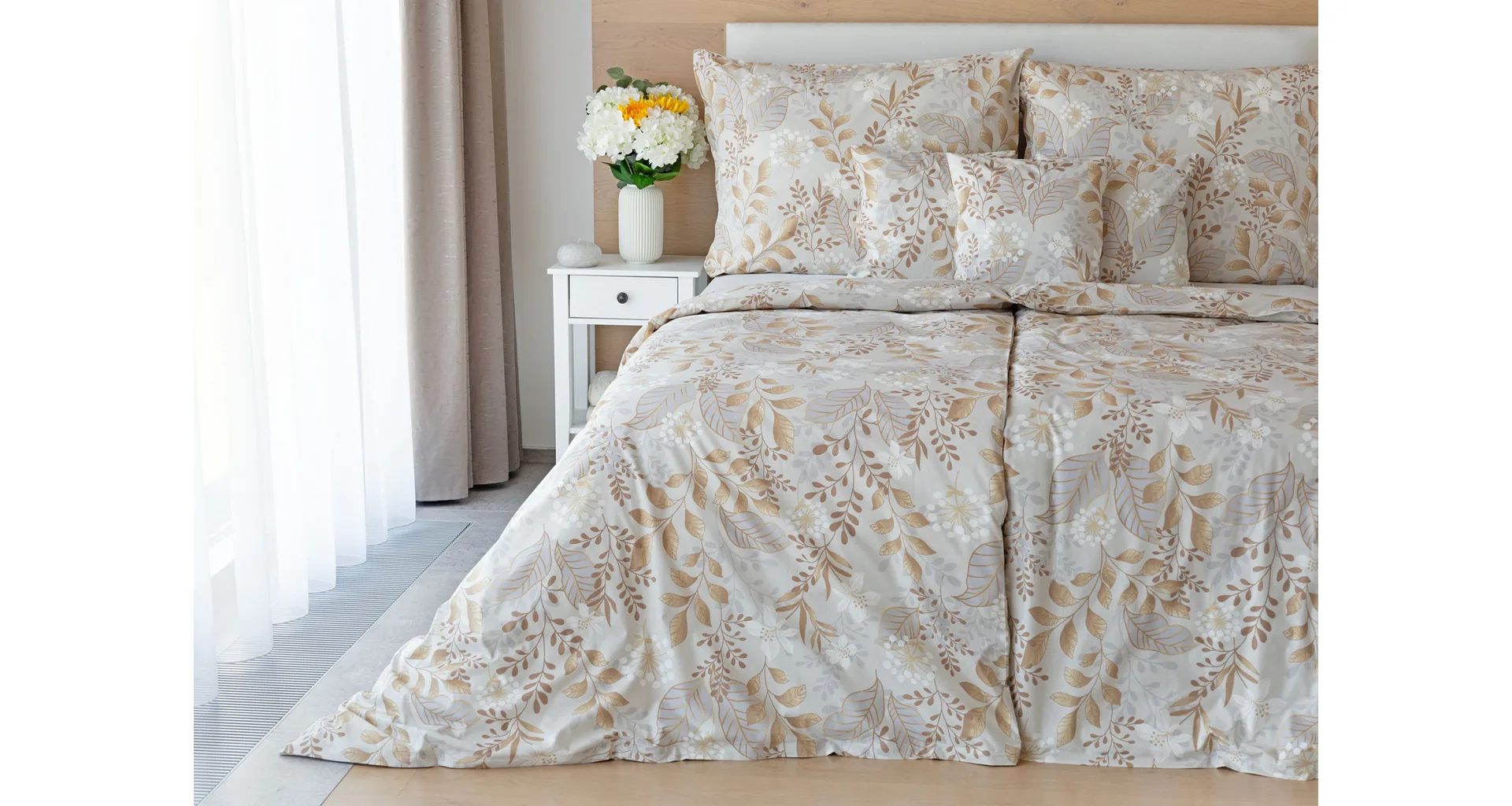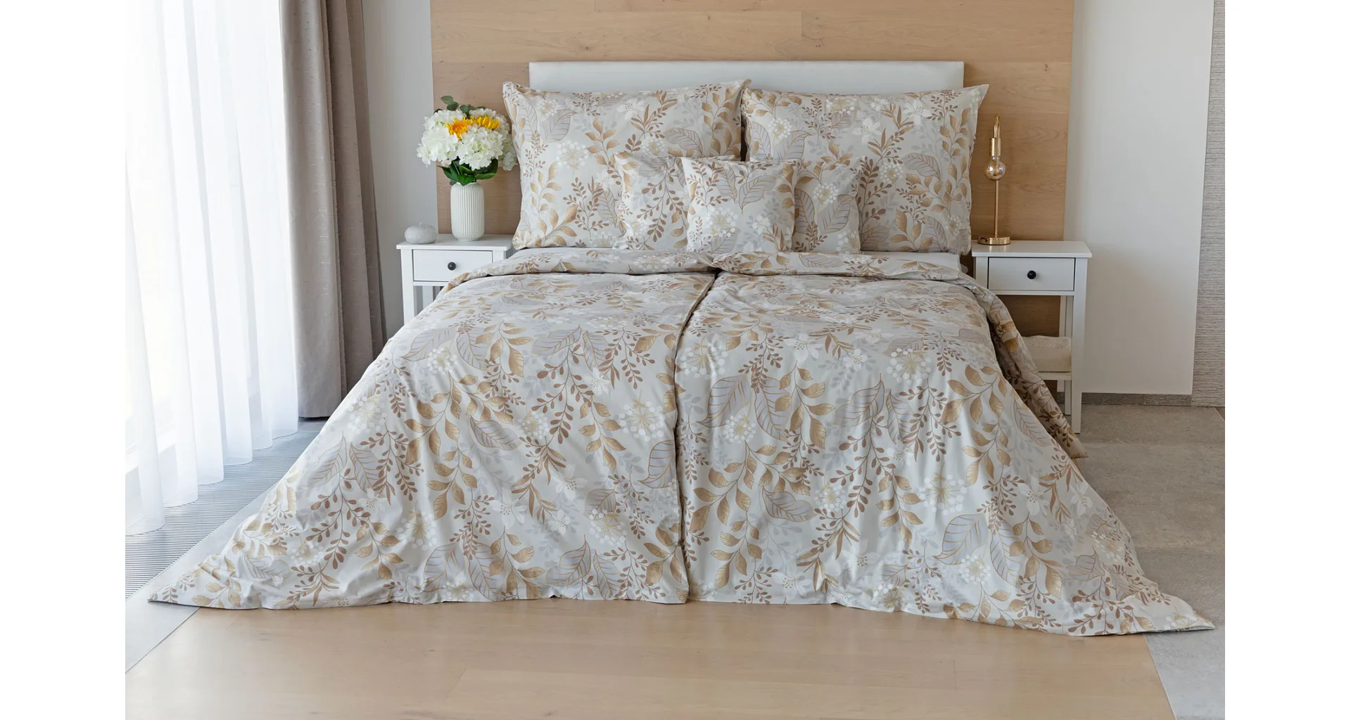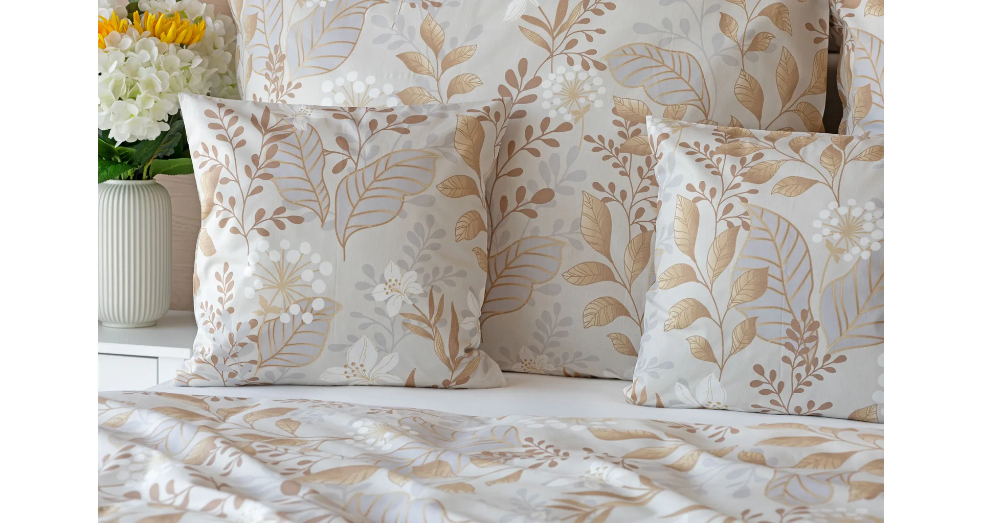 S okouzlujícím ložním povlečením Libertine bude vaše ložnice vždy působivě elegantní. Jemný florální motiv v paletě béžových, hnědých a světle šedých tónů je v dokonalé harmonii s podkladem v barvě slonové kosti.
