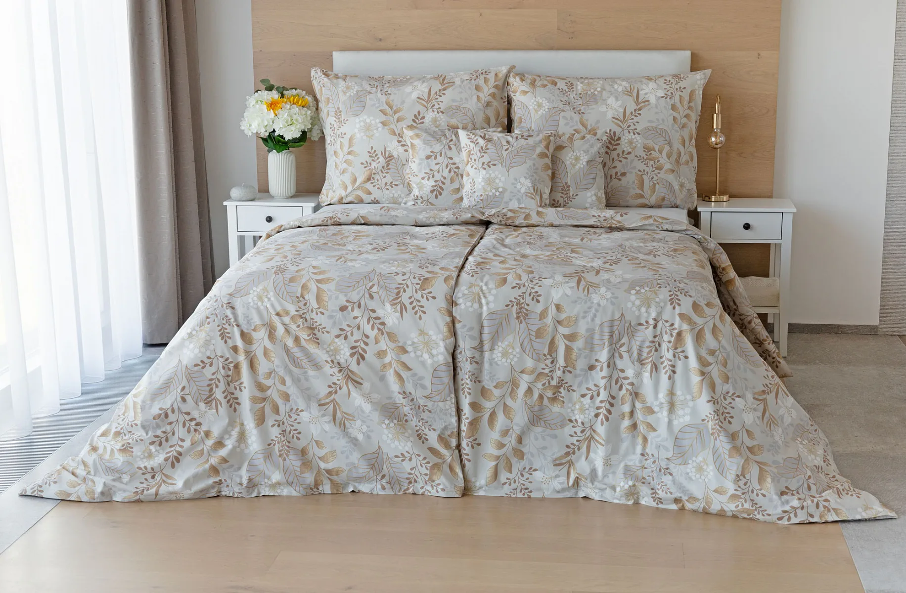 S okouzlujícím ložním povlečením Libertine bude vaše ložnice vždy působivě elegantní. Jemný florální motiv v paletě béžových, hnědých a světle šedých tónů je v dokonalé harmonii s podkladem v barvě slonové kosti.