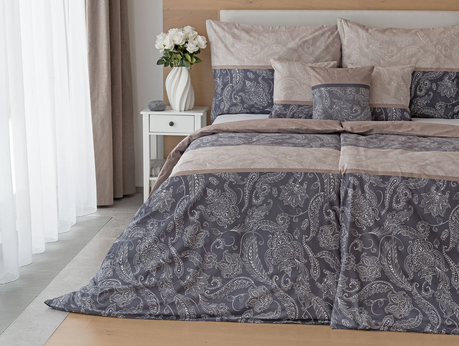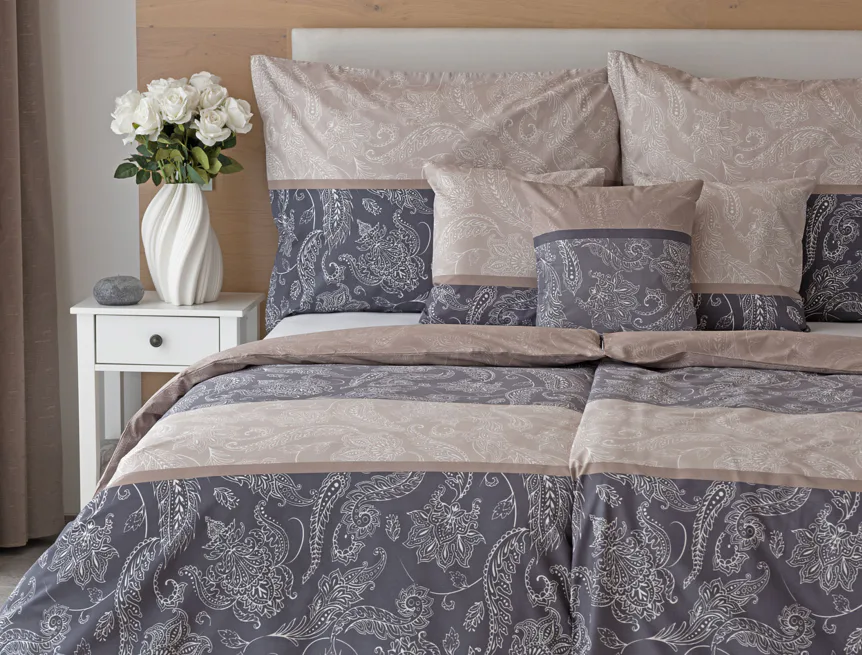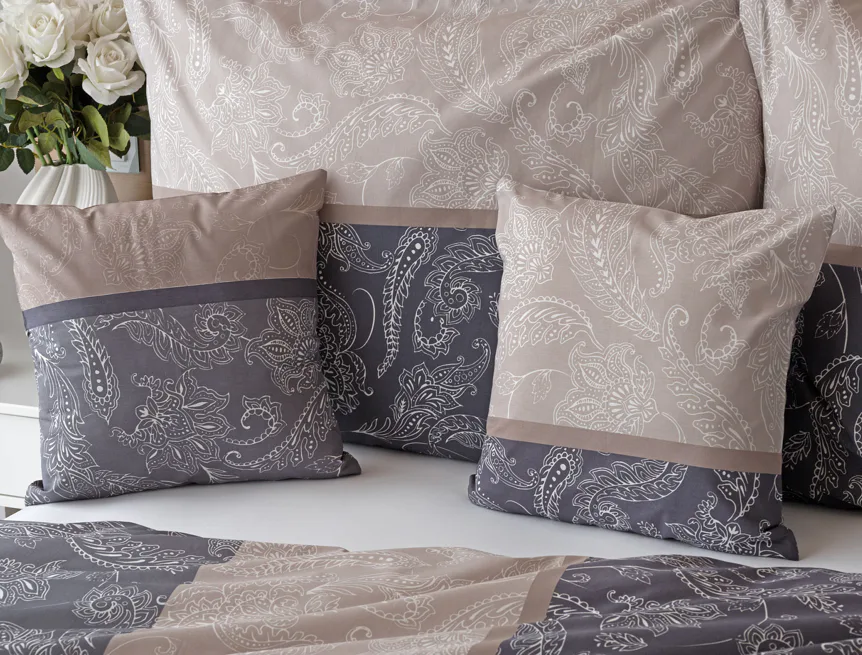 Vneste do své ložnice harmonii, eleganci a nadčasový půvab s bavlněným ložním povlečením Lior, zdobeným klasickým paisley motivem. Ornamentální vzor vyniká svou jemnou kresbou a dokonale ladí jak s moderním, tak s tradičním interiérem. Podklad povlečení tvoří oblíbené hřejivé tóny přírodní béžové a šedé barvy.
