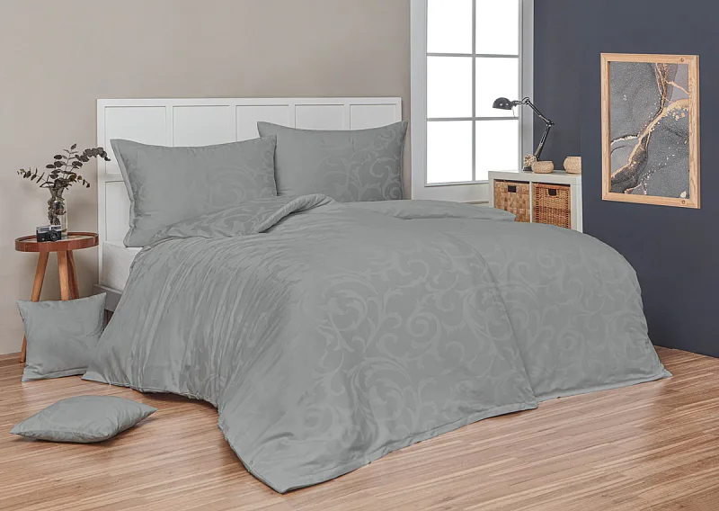 Klasika, čistá linie a nestárnoucí design. Tato synonyma se hodí pro luxusní žakárové povlečení LOLITA s decentním vzorem, které působí na lůžku víc než elegantně. Kouřově středně šedá barva nechá vyniknout vzor a současně dodá povlečení patřičnou noblesu.