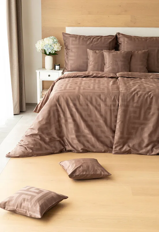Nová kolekce damaškového povlečení Louvre vás zcela okouzlí originálním žakárovým vzorem a pečlivě vybranými přírodními barvami. Vychutnejte si královský komfort a pocit přepychu každou noc s povlečením Louvre Braun v odstínu nugátově hnědé.
