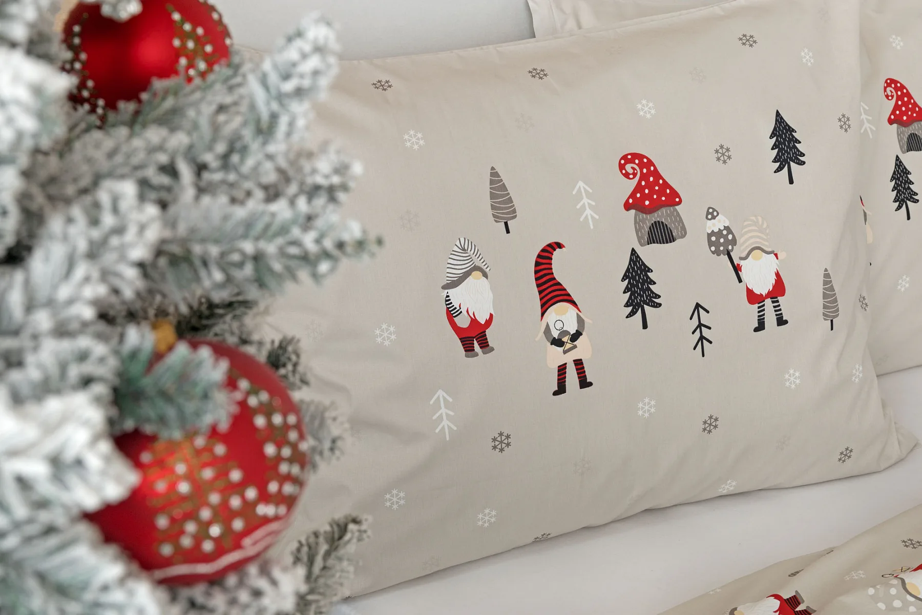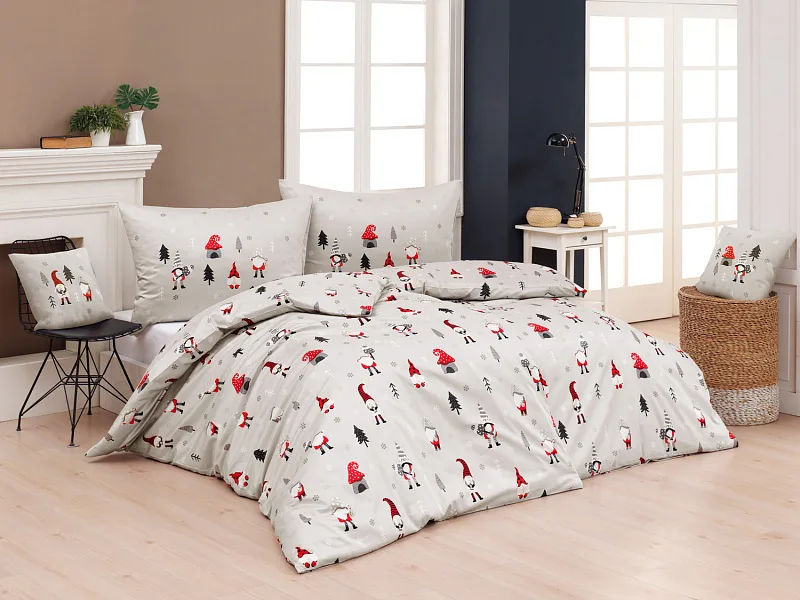 Povlak na přikrývku je z obou stran stejný, povlak na polštář zachycuje z každé strany jiné skřítky. Podkladová barva povlečení je matně šedá. Povlečení je opatřeno komfortním zipovým uzávěrem.