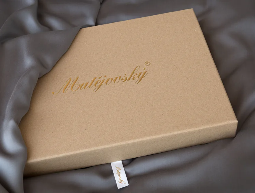 Povlečení je dodáváno v luxusní dárkové krabici (v případě dvou stejných setů baleno v jedné krabici jako sada povlečení na manželské lůžko). Obal z přírodních surovin podtrhuje jedinečnost tohoto 100% přírodního produktu.
