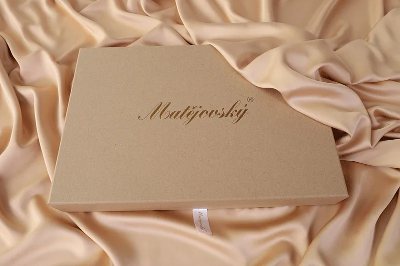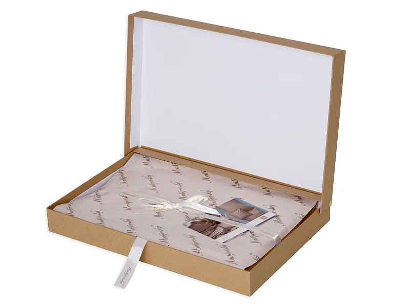 Povlečení je dodáváno v luxusní dárkové krabici (v případě dvou stejných setů baleno v jedné krabici jako sada povlečení na manželské lůžko). Obal z přírodních surovin podtrhuje jedinečnost tohoto 100% přírodního produktu.