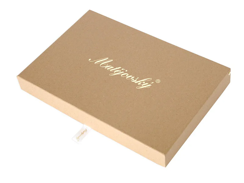 Povlečení je dodáváno v luxusní dárkové krabici (v případě dvou stejných setů baleno v jedné krabici jako sada povlečení na manželské lůžko). Obal z přírodních surovin podtrhuje jedinečnost tohoto 100% přírodního produktu.