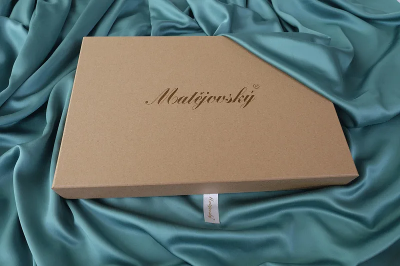 Povlečení je dodáváno v luxusní dárkové krabici (v případě dvou stejných setů baleno v jedné krabici jako sada povlečení na manželské lůžko). Obal z přírodních surovin podtrhuje jedinečnost tohoto 100% přírodního produktu.