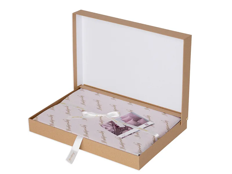 Povlečení je dodáváno v luxusní dárkové krabici (v případě dvou stejných setů baleno v jedné krabici jako sada povlečení na manželské lůžko). Obal z přírodních surovin podtrhuje jedinečnost tohoto 100% přírodního produktu.