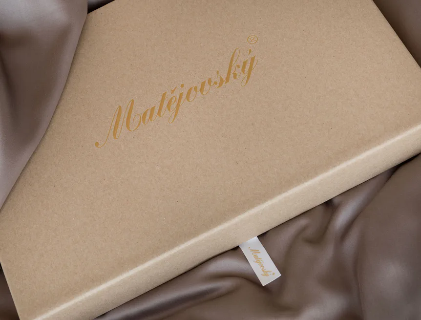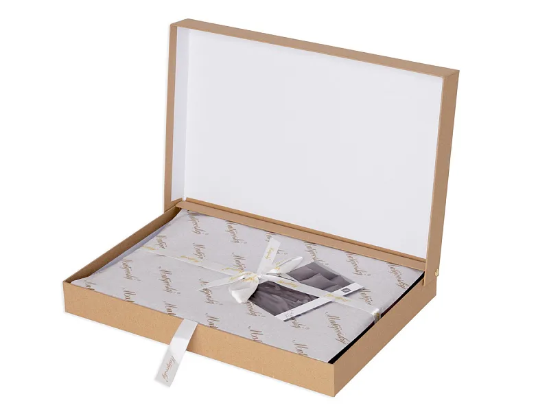 Balení: Povlečení Luna je dodáváno v luxusní dárkové krabici, zabalené do jemného hedvábného papíru. Obal z přírodních surovin podtrhuje jedinečnost tohoto 100% přírodního produktu.