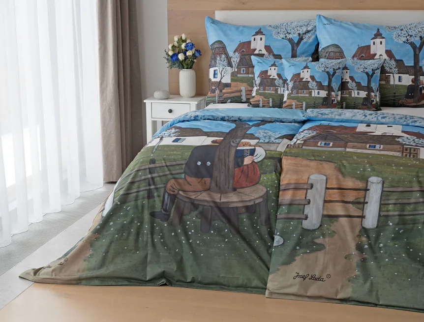 Tento motiv povlečení z kolekce Josef Lada vyrábíme s ohledem na dostupná tisková data pouze v klasickém rozměru přikrývek 140x200 cm, případně v prodloužené délce 140x220 cm.