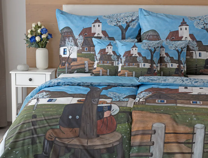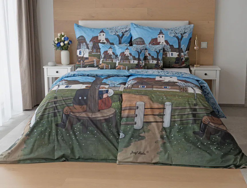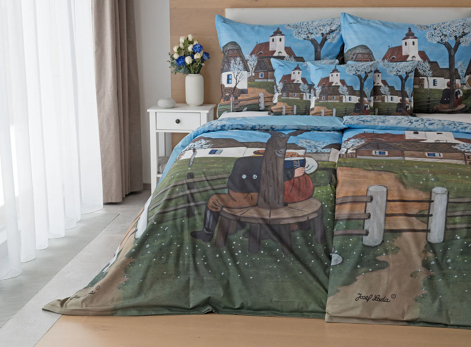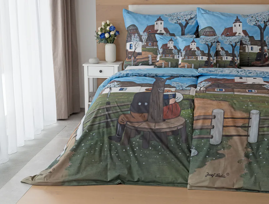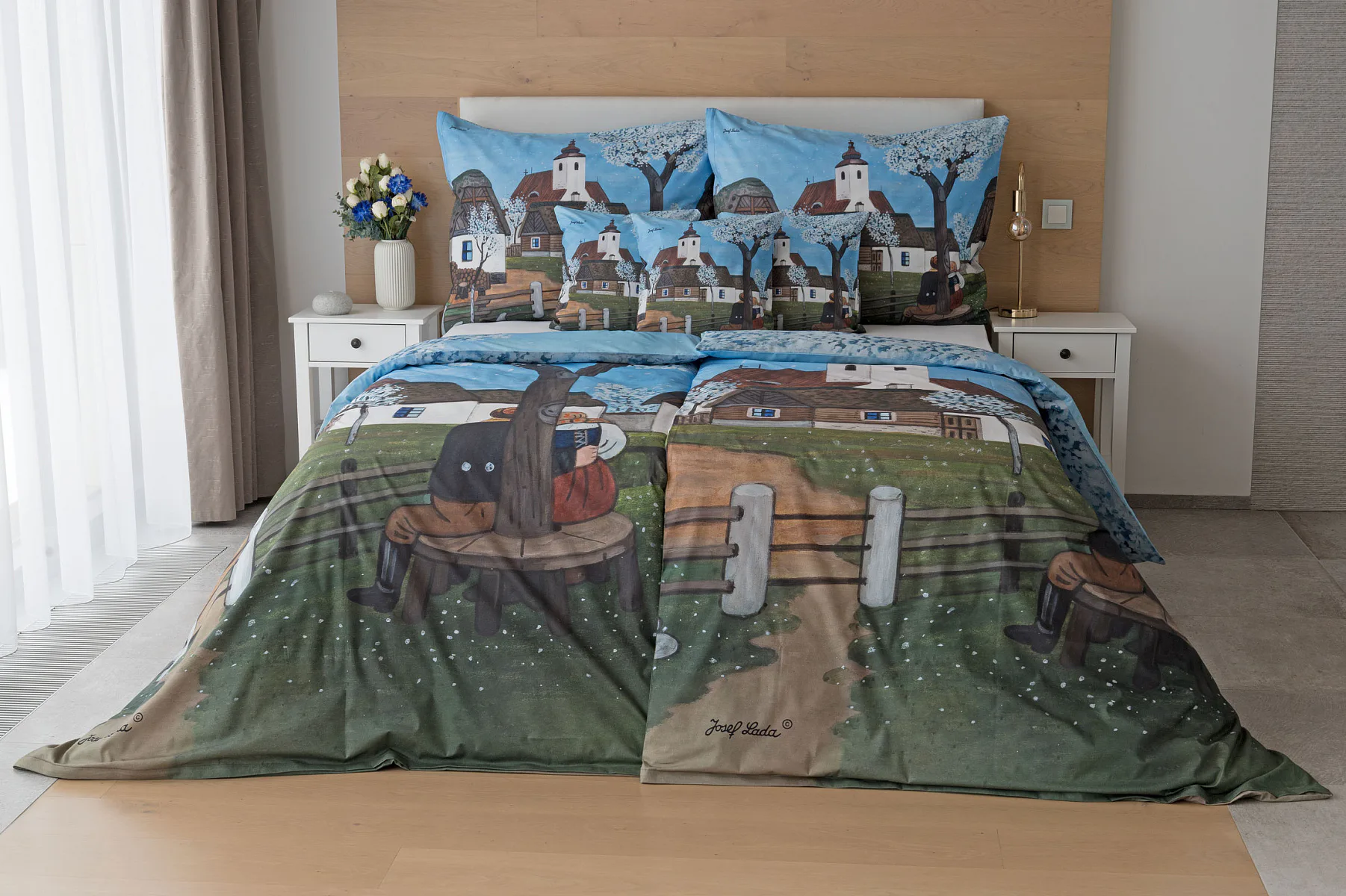 Pozvěte k sobě domů kouzlo nestárnoucích kreseb Josefa Lady, které jsou pro mnohé z nás symbolem dětství, harmonického venkova a české tradice. Povlečení Májová noc v sobě nese atmosféru hřejivých nocí a probouzí romantické vzpomínky, které patří k nejkrásnějším okamžikům jara.