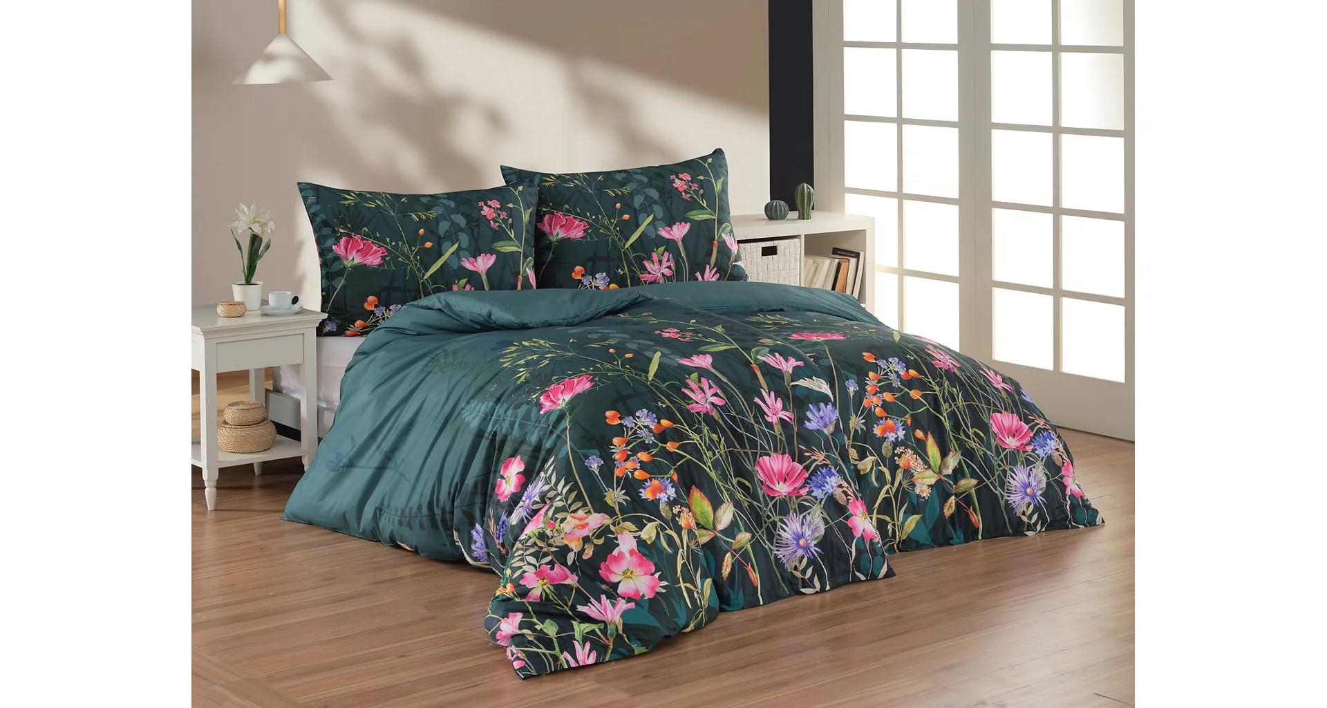 Povlečení Margot vás uchvátí na první pohled díky atraktivní kombinaci pestrých tónů, které se snoubí v okouzlujícím květinovém vzoru. Energický nádech ložního povlečení Margot podtrhuje výrazný podklad v zelenomodré barvě. Probouzejte se každý den s dobrou náladou!