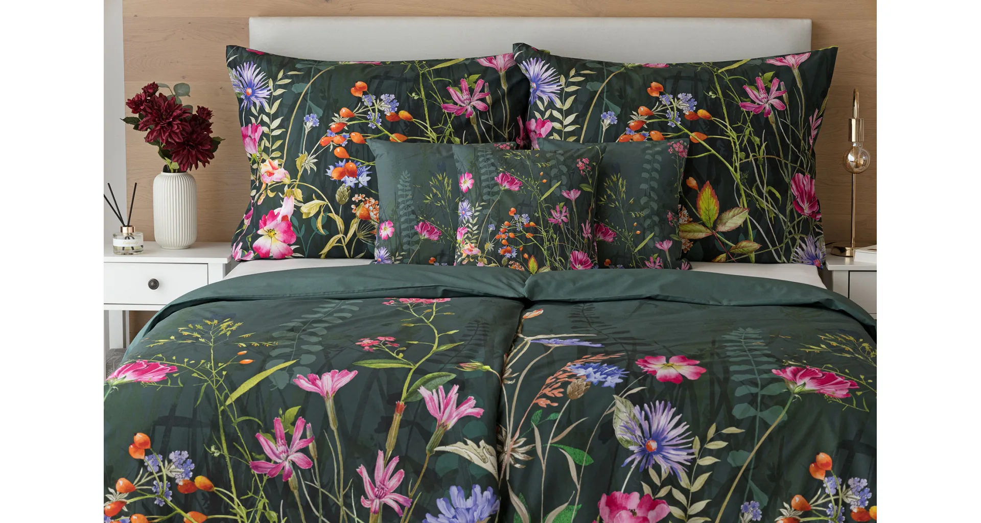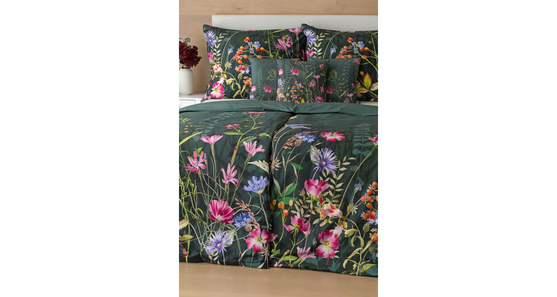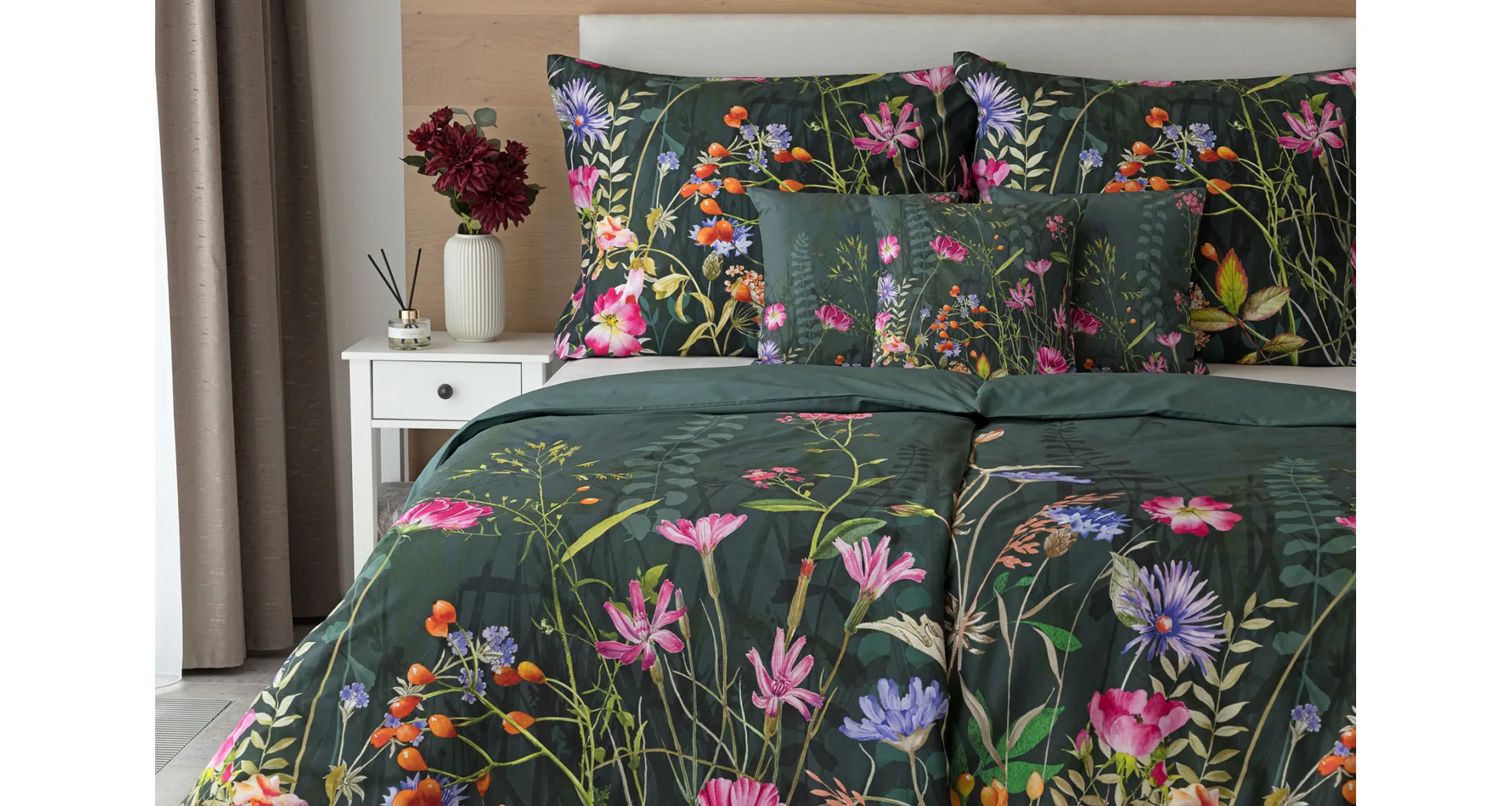 Povlak na přikrývku je z obou stran stejný, povlak na polštář zachycuje z každé strany jinou část květinového vzoru. Povlečení je opatřeno komfortním zipovým uzávěrem.