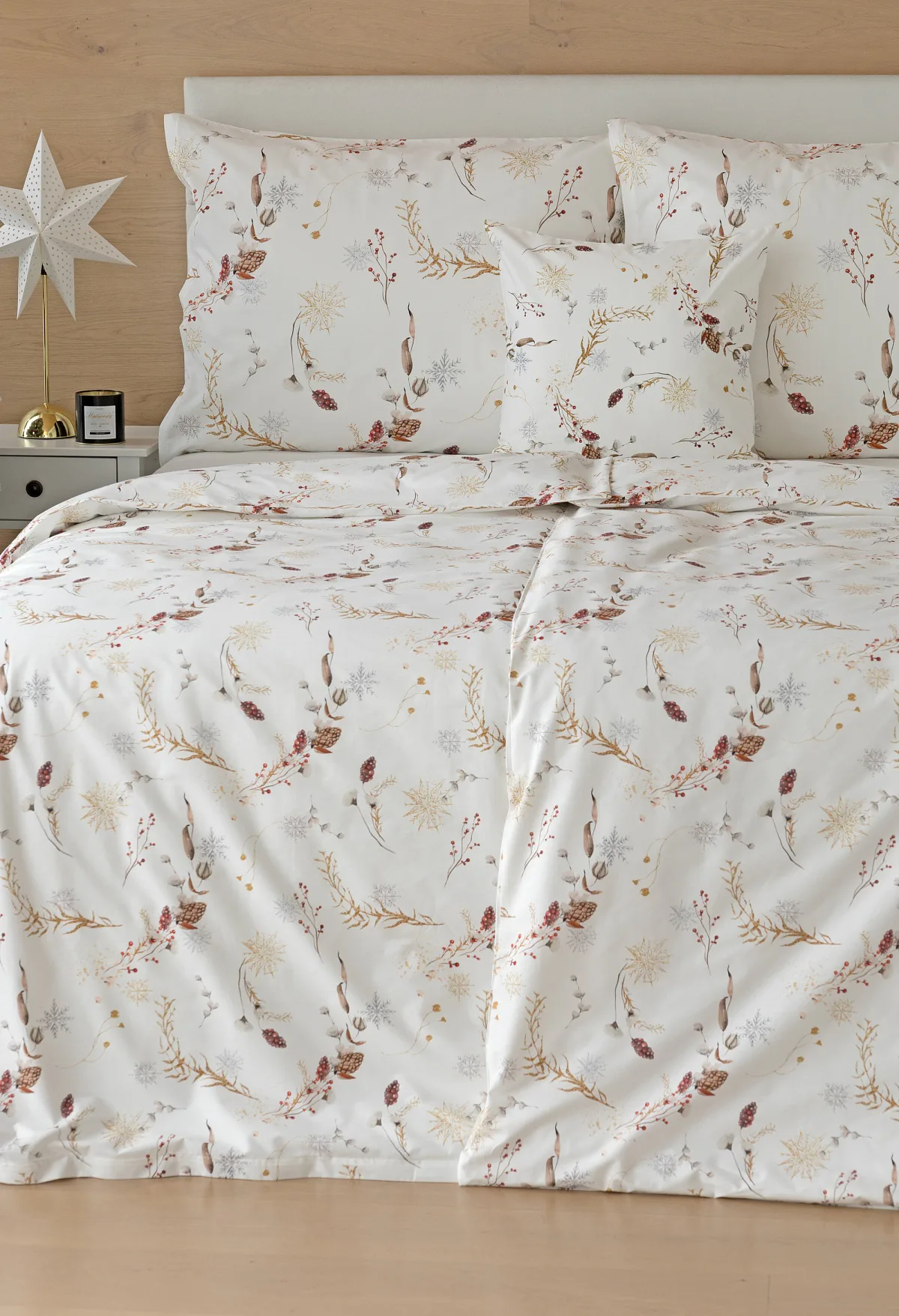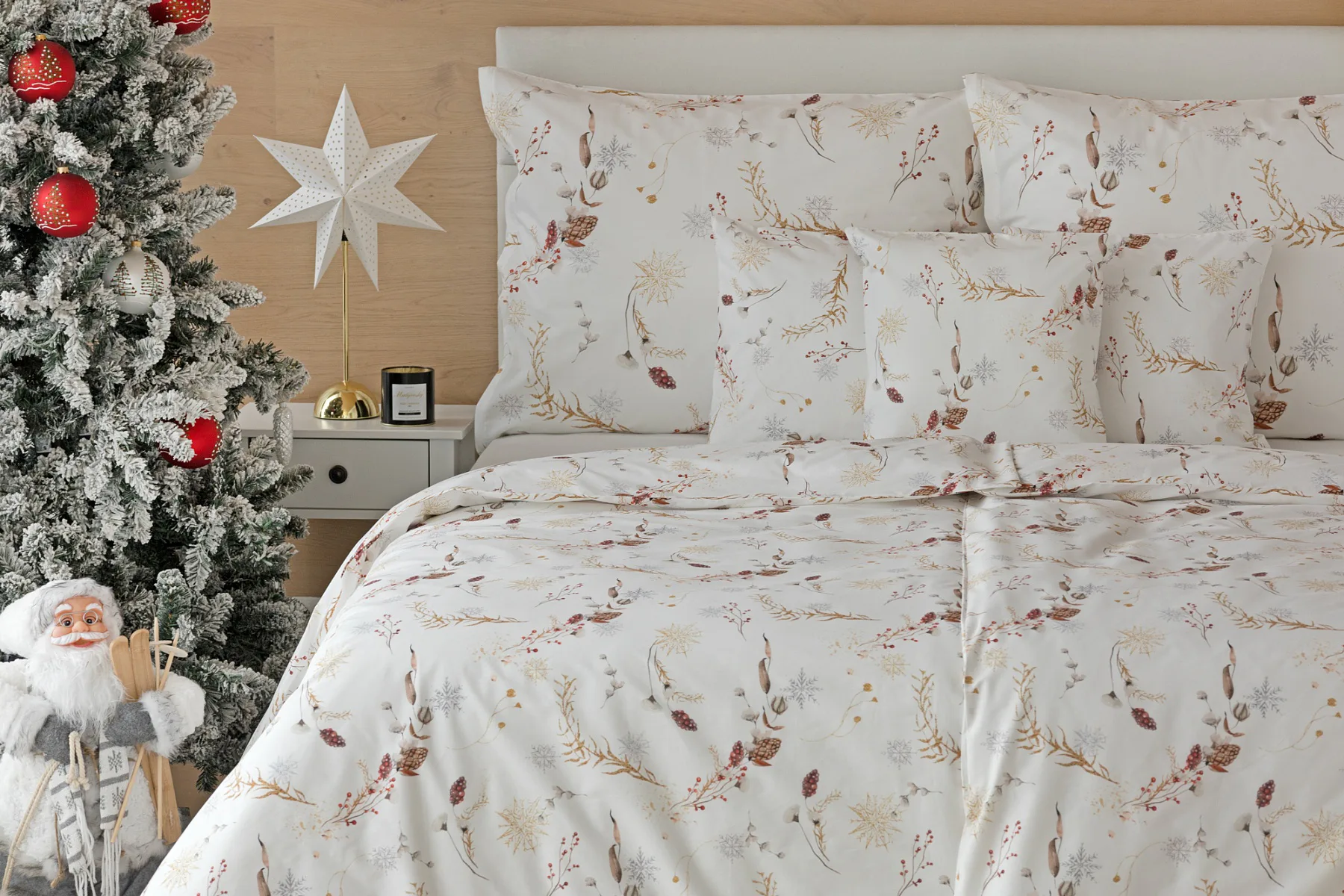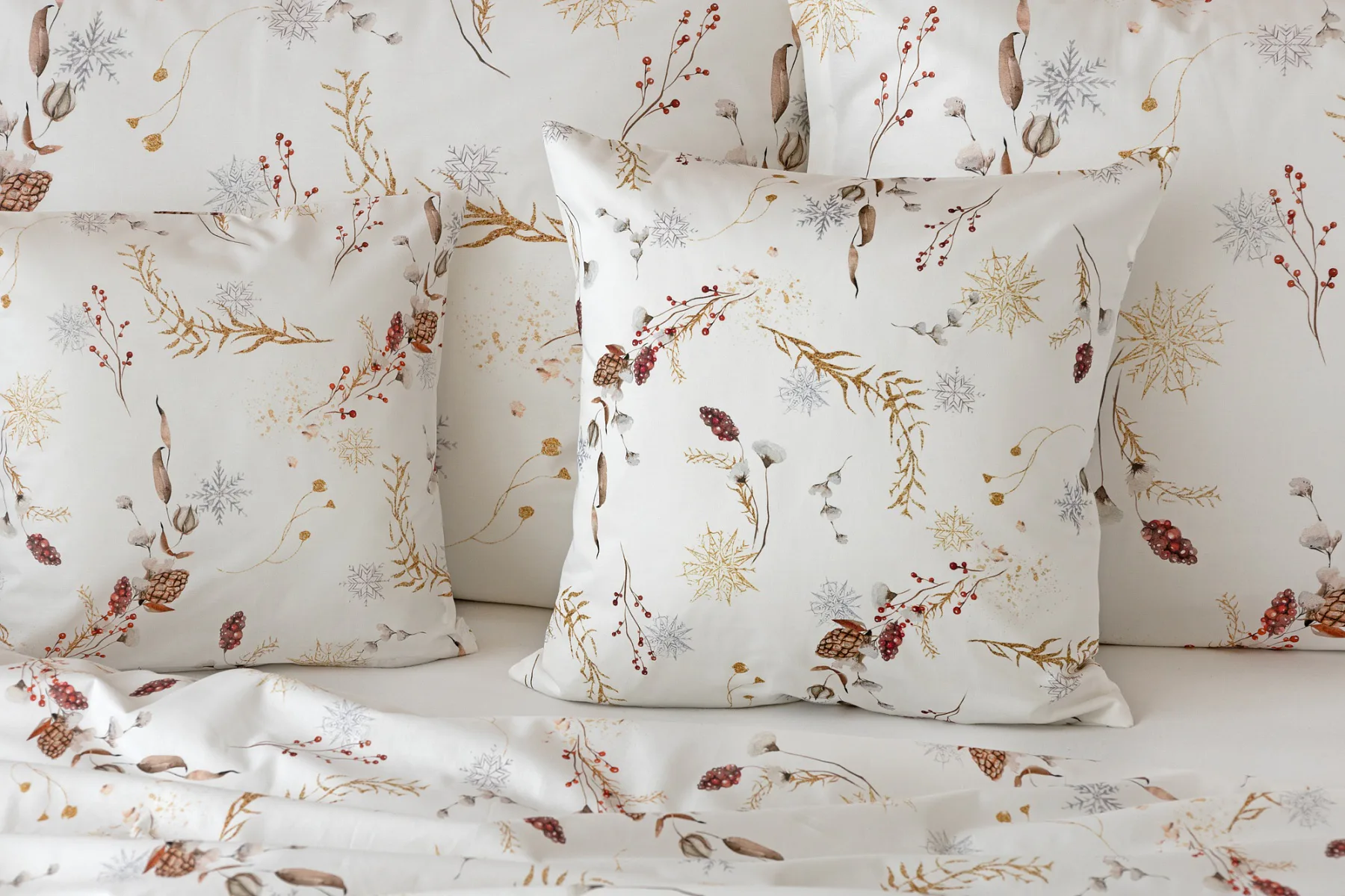Nechte zimu za oknem a dopřejte si útulnou sváteční atmosféru v teple s elegantním bavlněným povlečením Marlen. Sněhově bílý podklad zdobí po celé ploče decentní motiv šišek a větviček v paletě hřejivých zlatohnědých a svátečně červených tónů. Doplňte aroma difuzér s přírodní vůní, rozsviťte lampičku a vaše zimní večery budou nezapomenutelné.