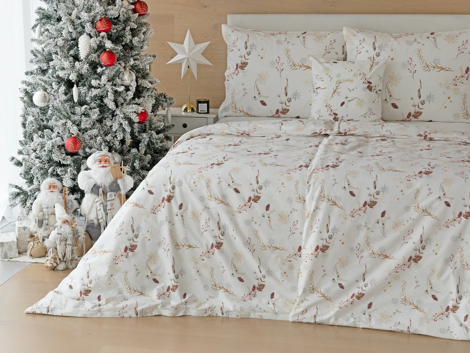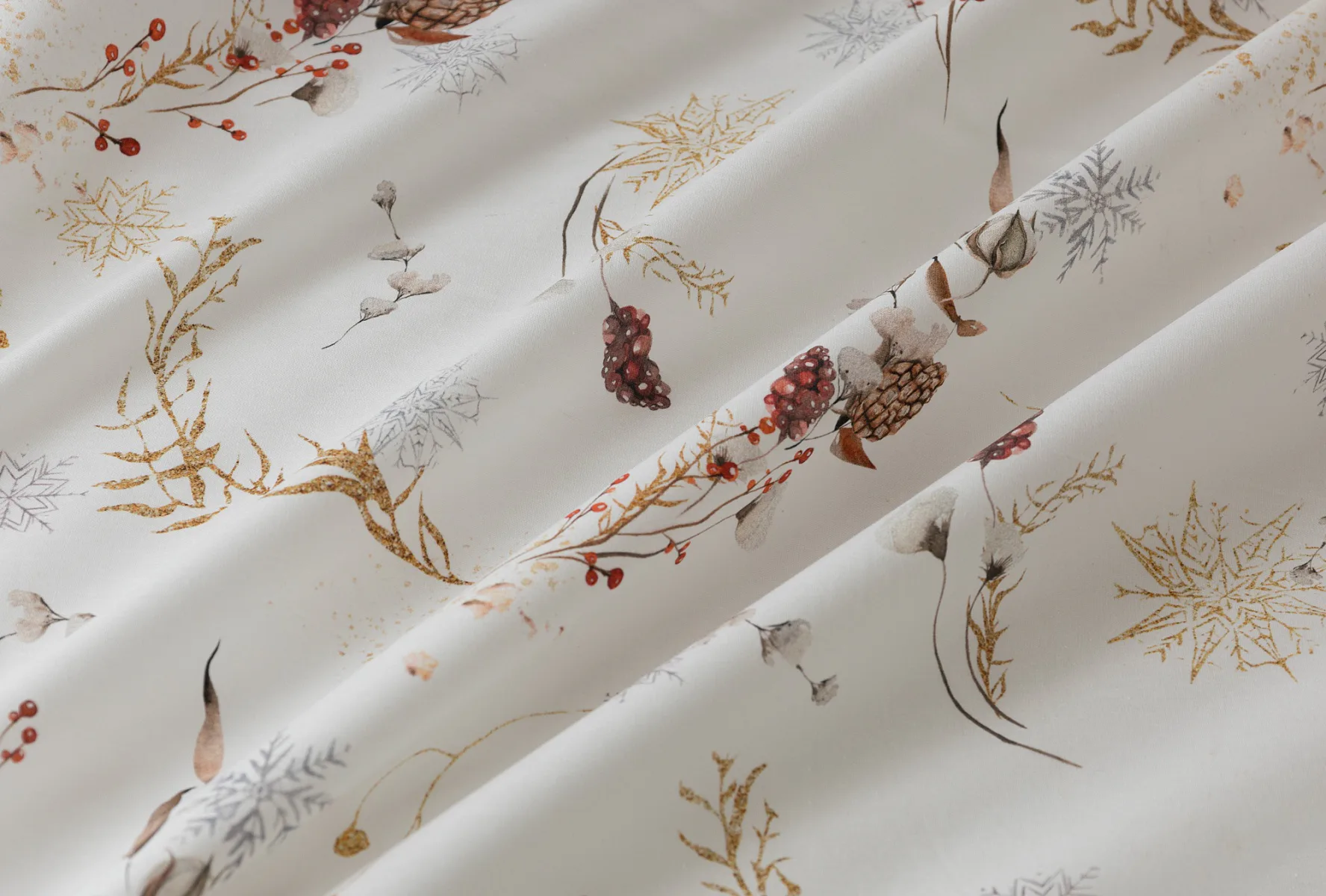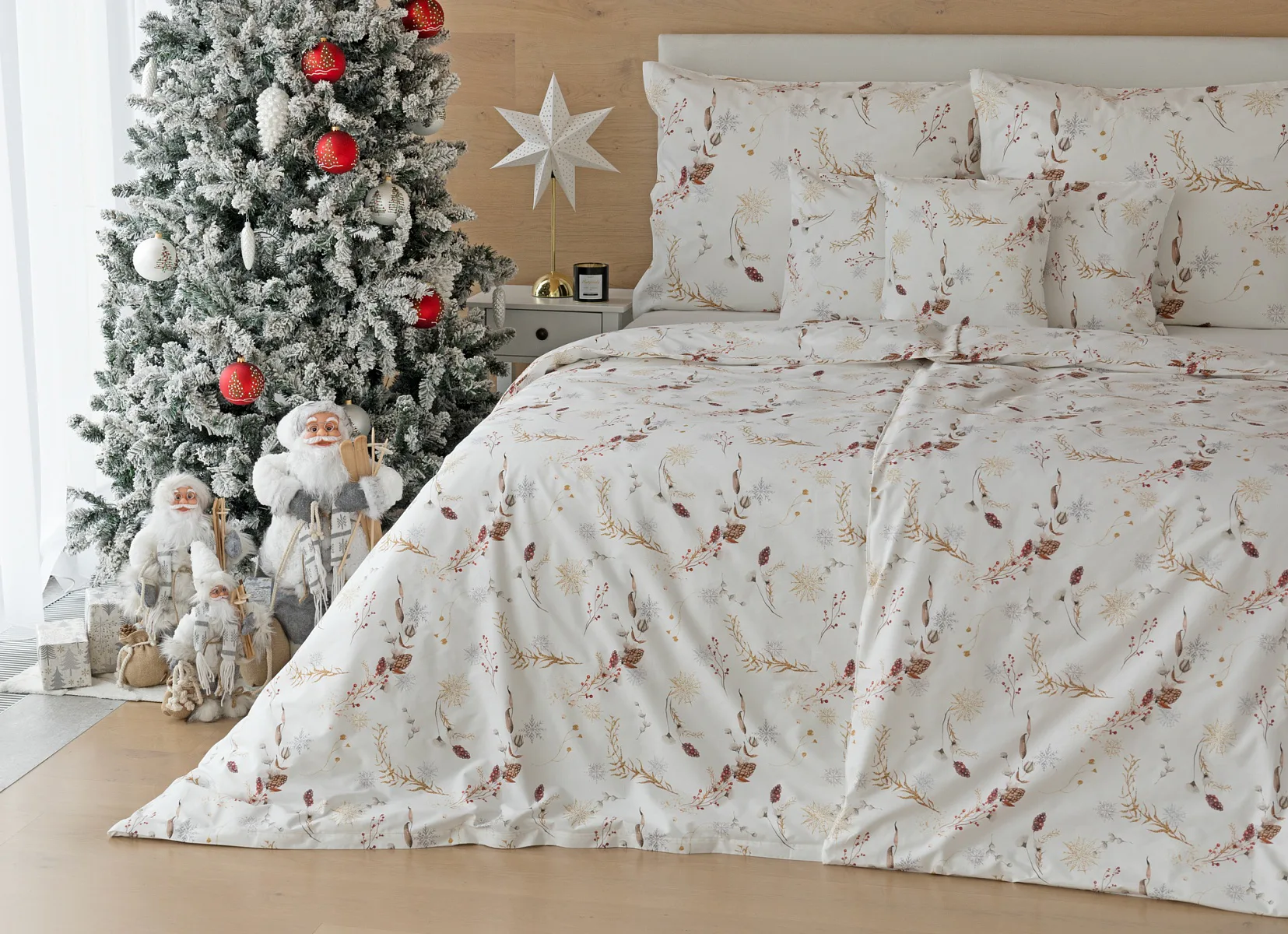 Nechte zimu za oknem a dopřejte si útulnou sváteční atmosféru v teple s elegantním bavlněným povlečením Marlen. Sněhově bílý podklad zdobí po celé ploče decentní motiv šišek a větviček v paletě hřejivých zlatohnědých a svátečně červených tónů. Doplňte aroma difuzér s přírodní vůní, rozsviťte lampičku a vaše zimní večery budou nezapomenutelné.