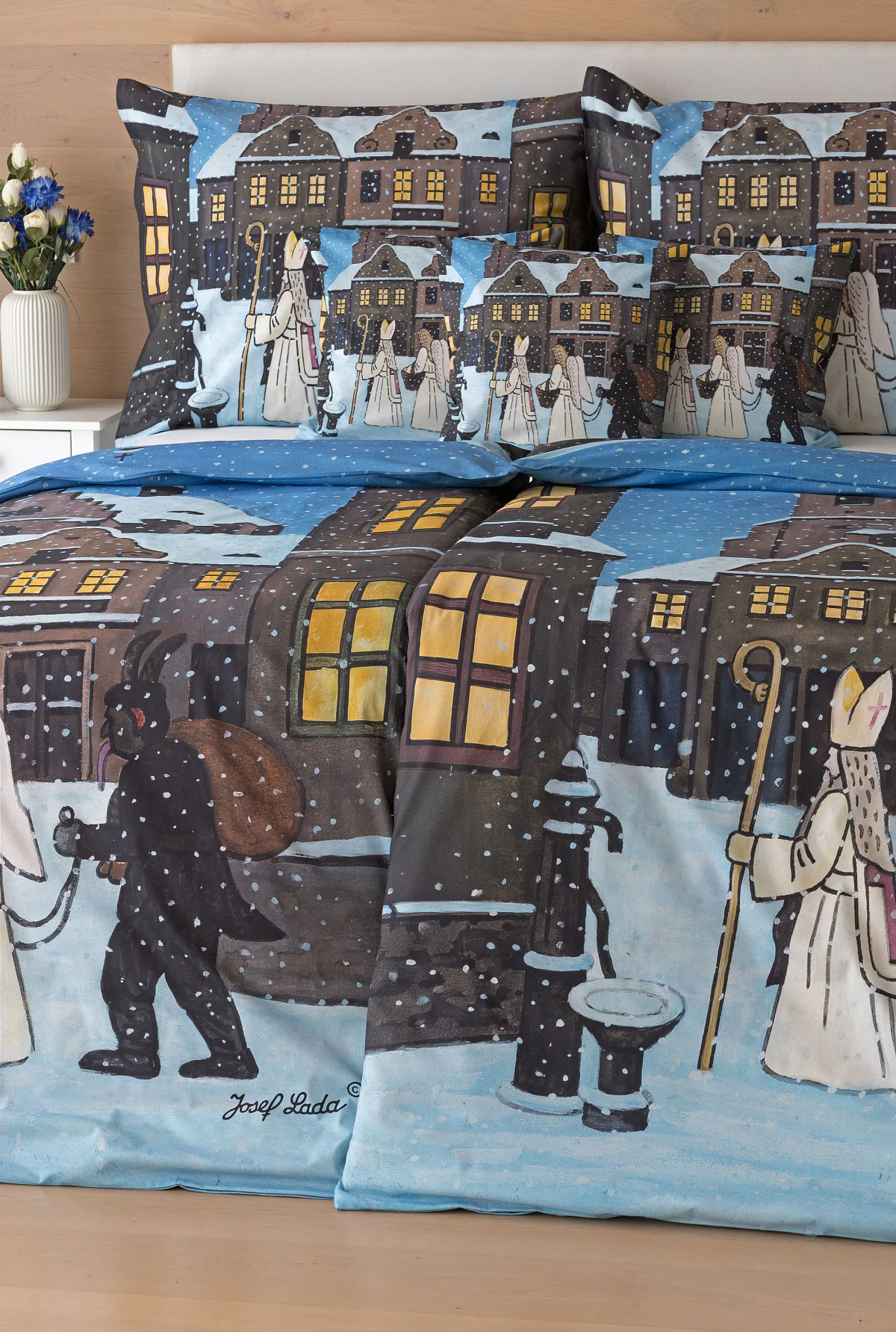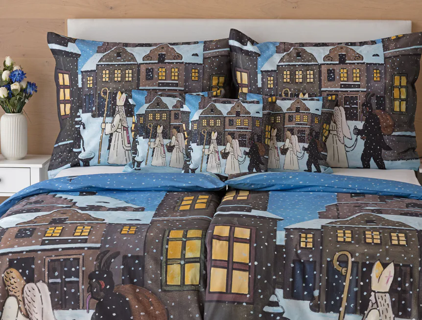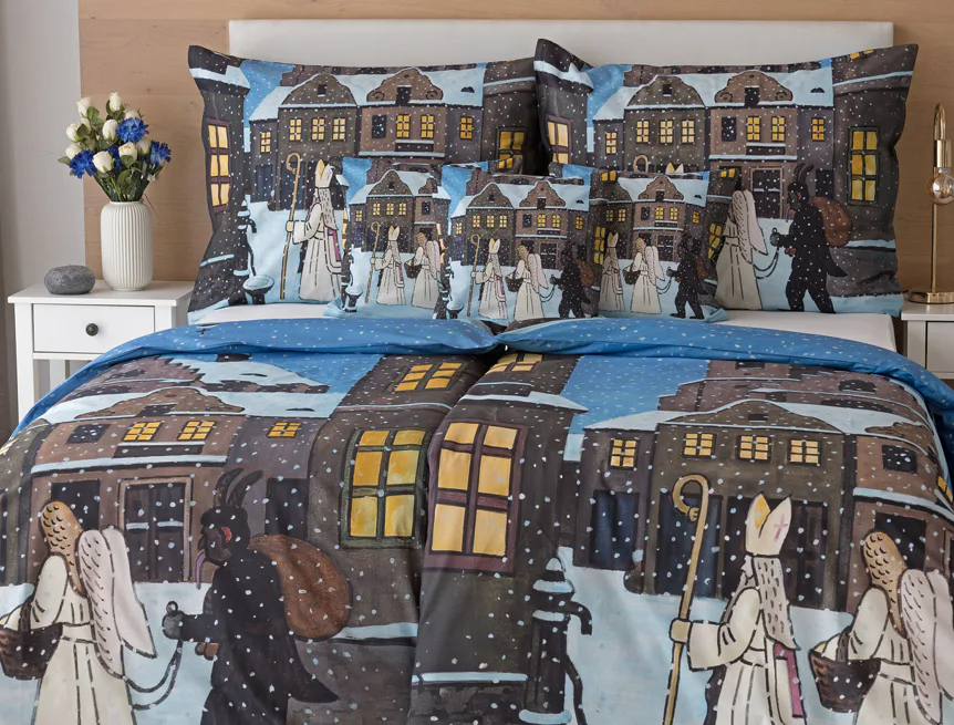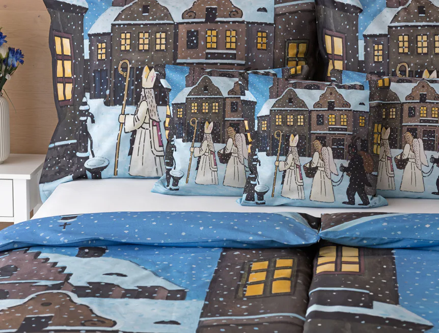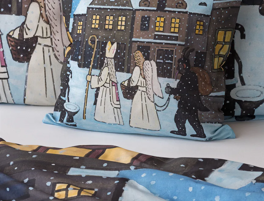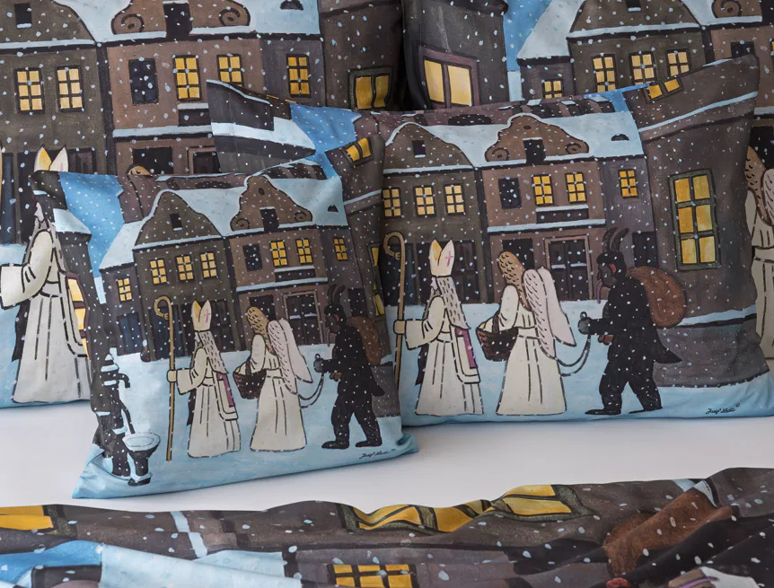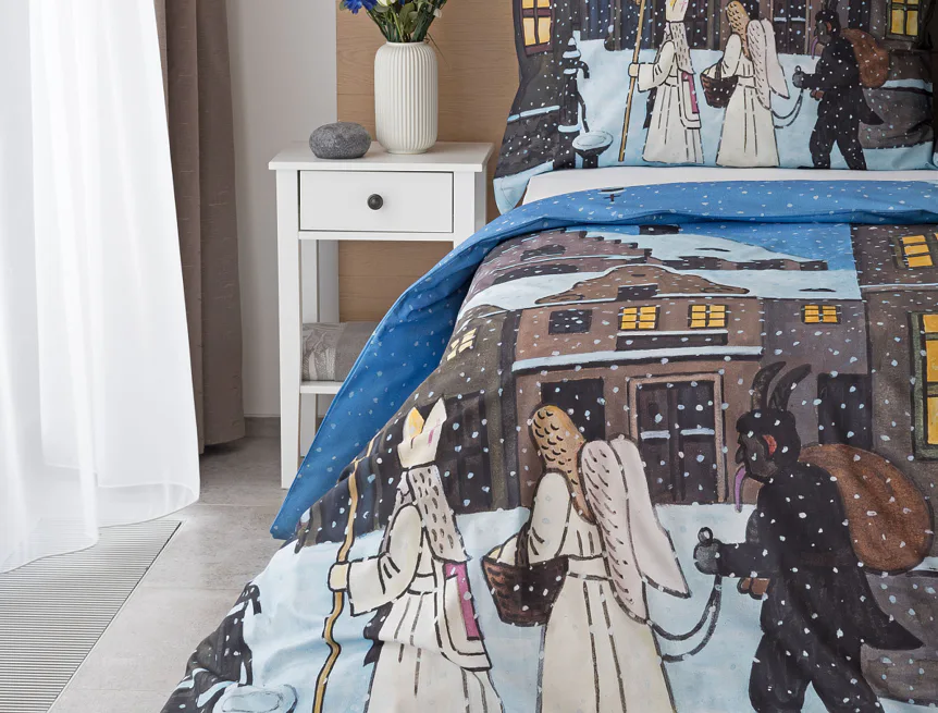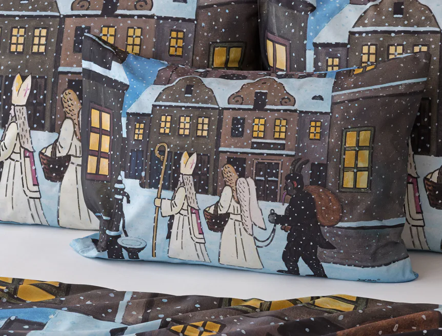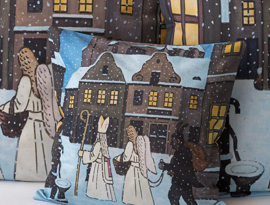 Pozvěte k sobě domů kouzlo nestárnoucích kreseb Josefa Lady, které jsou pro mnohé z nás symbolem dětství, harmonického venkova a české tradice. Motiv inspirovaný lidovou tradicí Mikuláše, anděla a čerta zachycuje kouzlo adventního období a připomíná oblíbený zvyk spojený s očekáváním Vánoc.