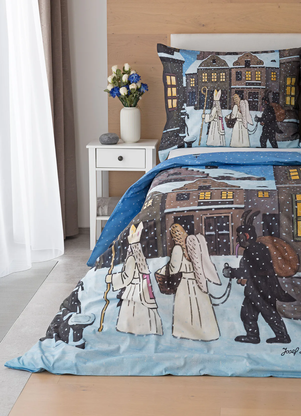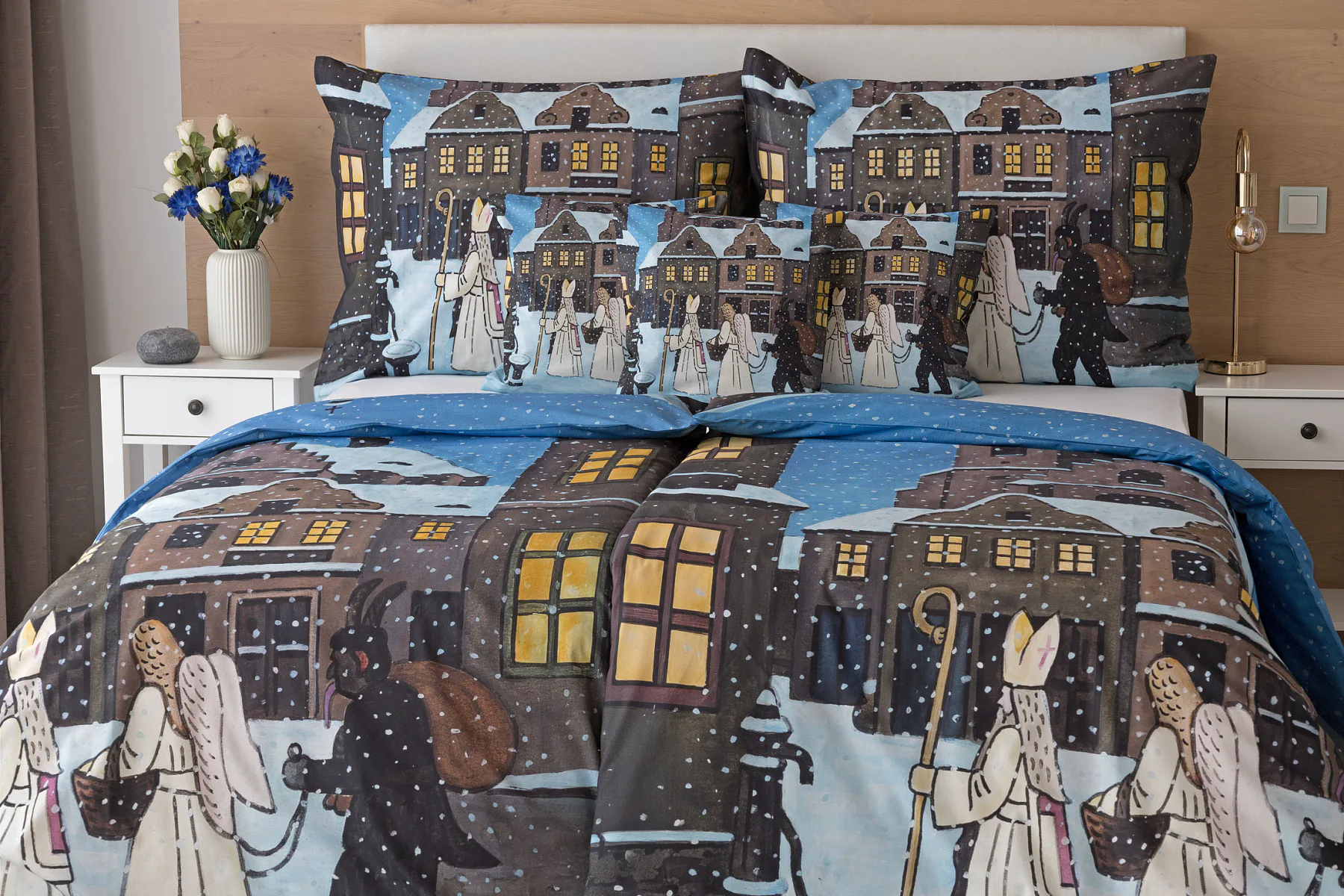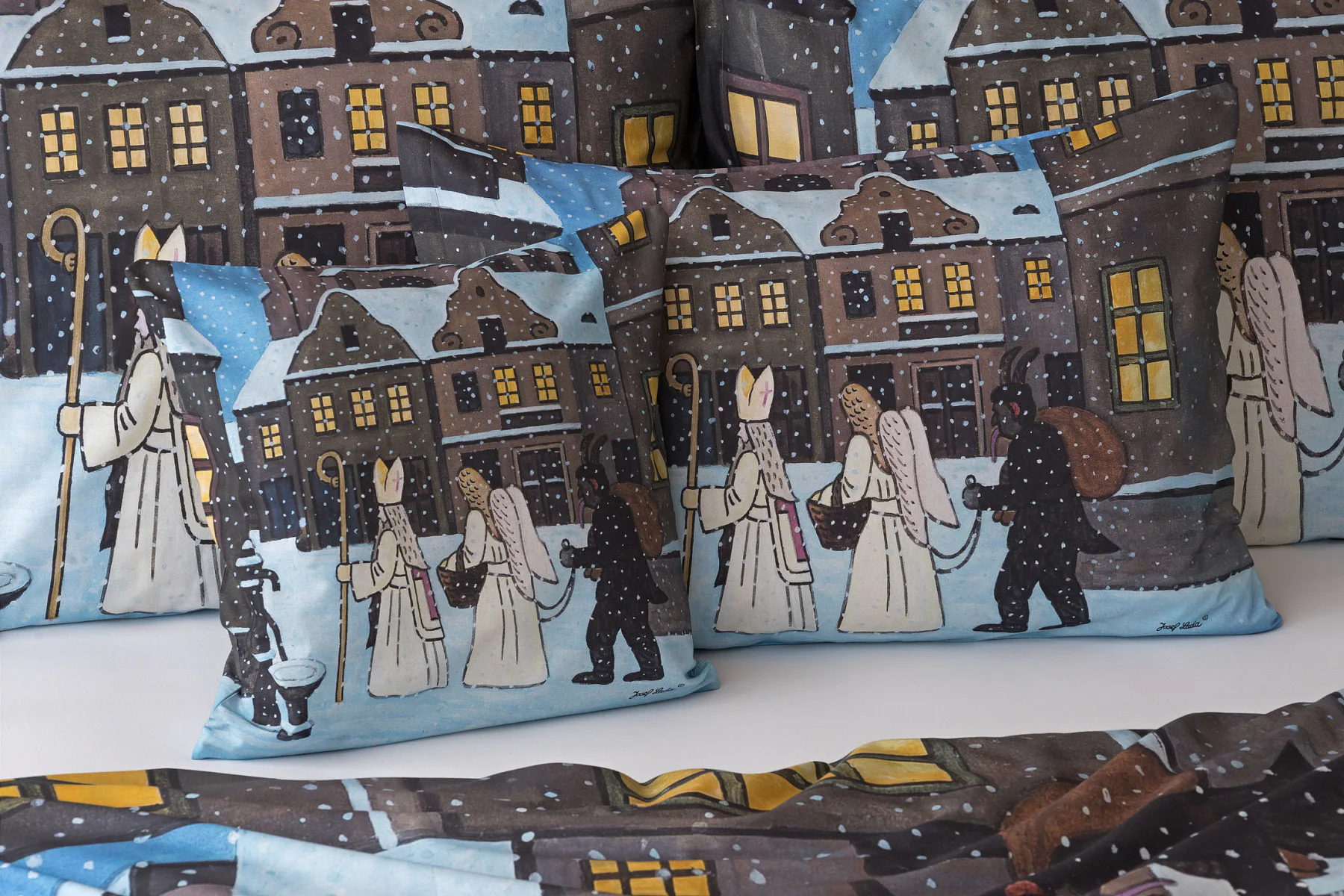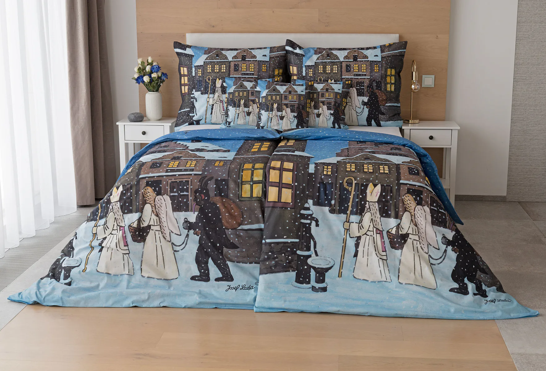 Pozvěte k sobě domů kouzlo nestárnoucích kreseb Josefa Lady, které jsou pro mnohé z nás symbolem dětství, harmonického venkova a české tradice. Motiv inspirovaný lidovou tradicí Mikuláše, anděla a čerta zachycuje kouzlo adventního období a připomíná oblíbený zvyk spojený s očekáváním Vánoc.