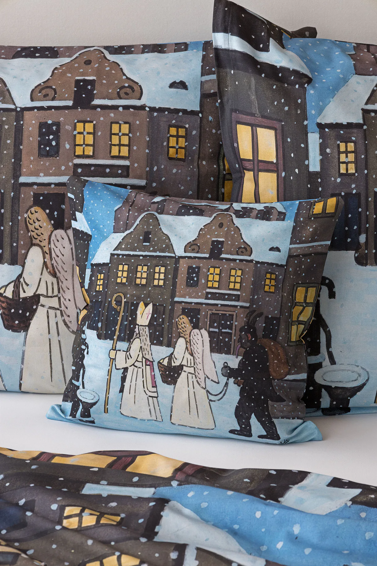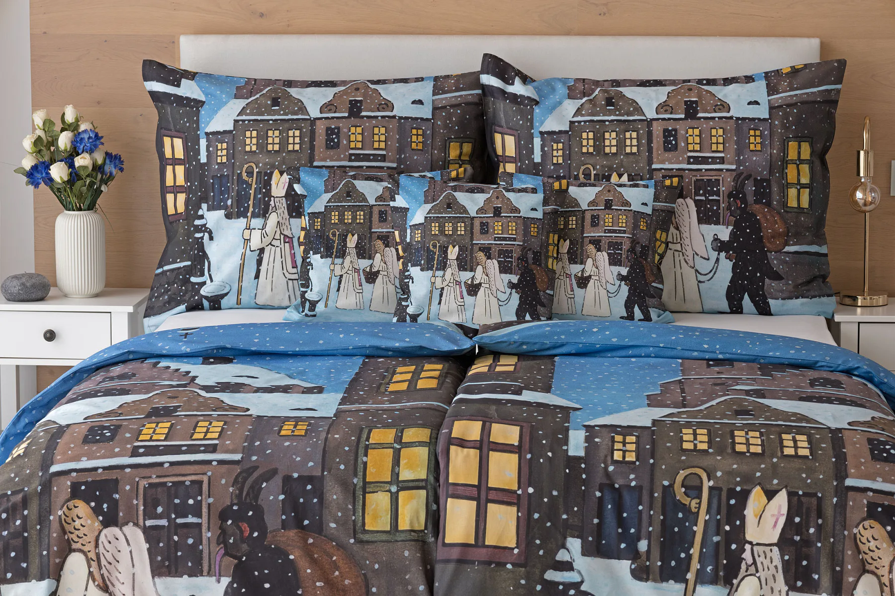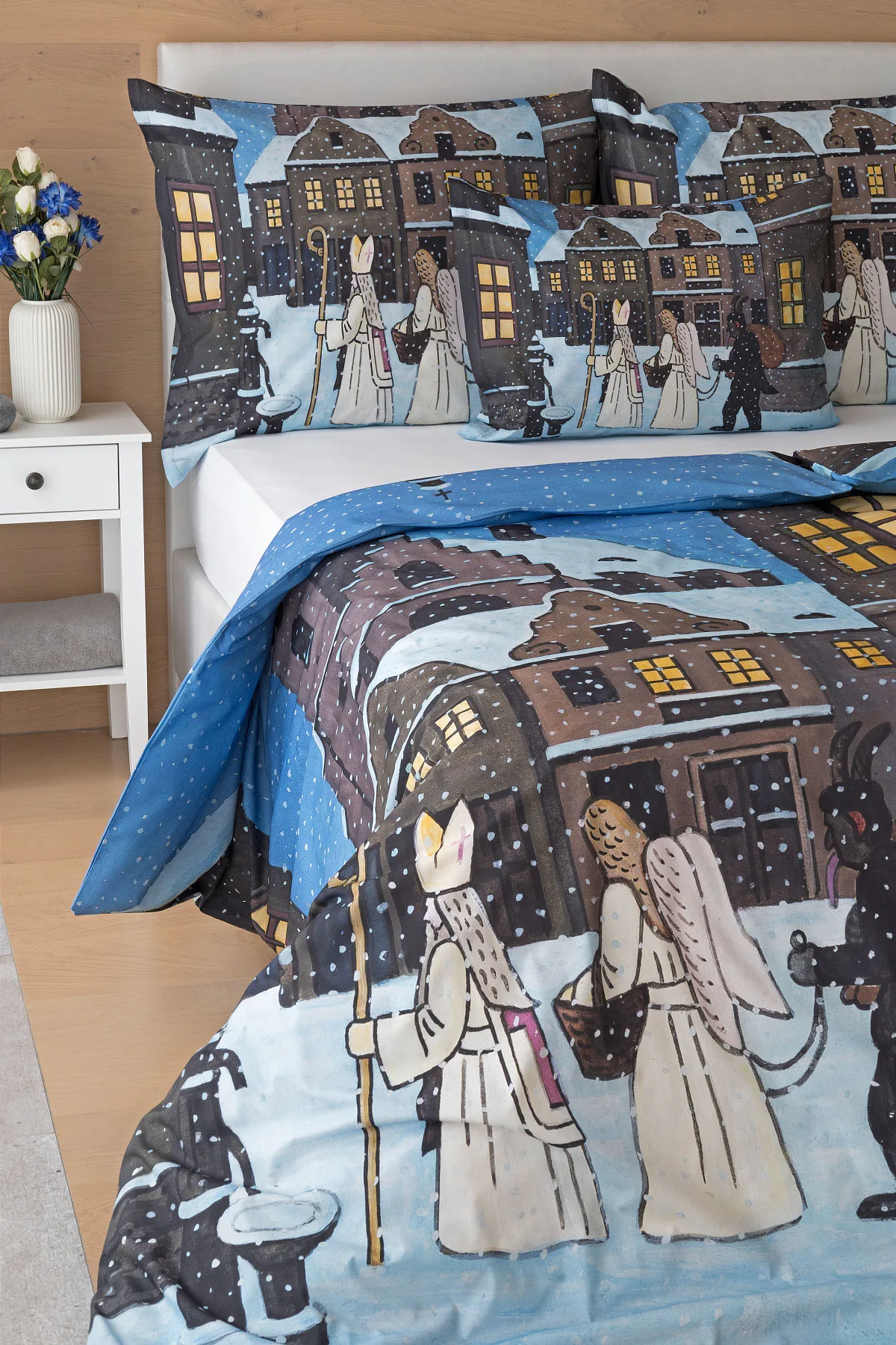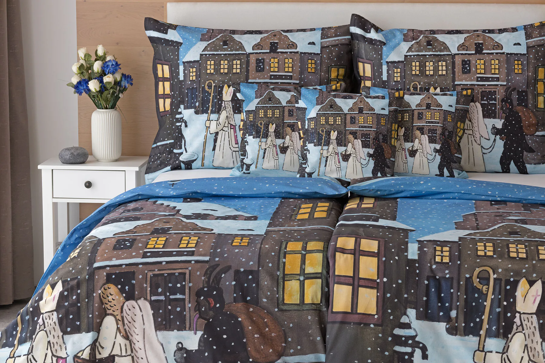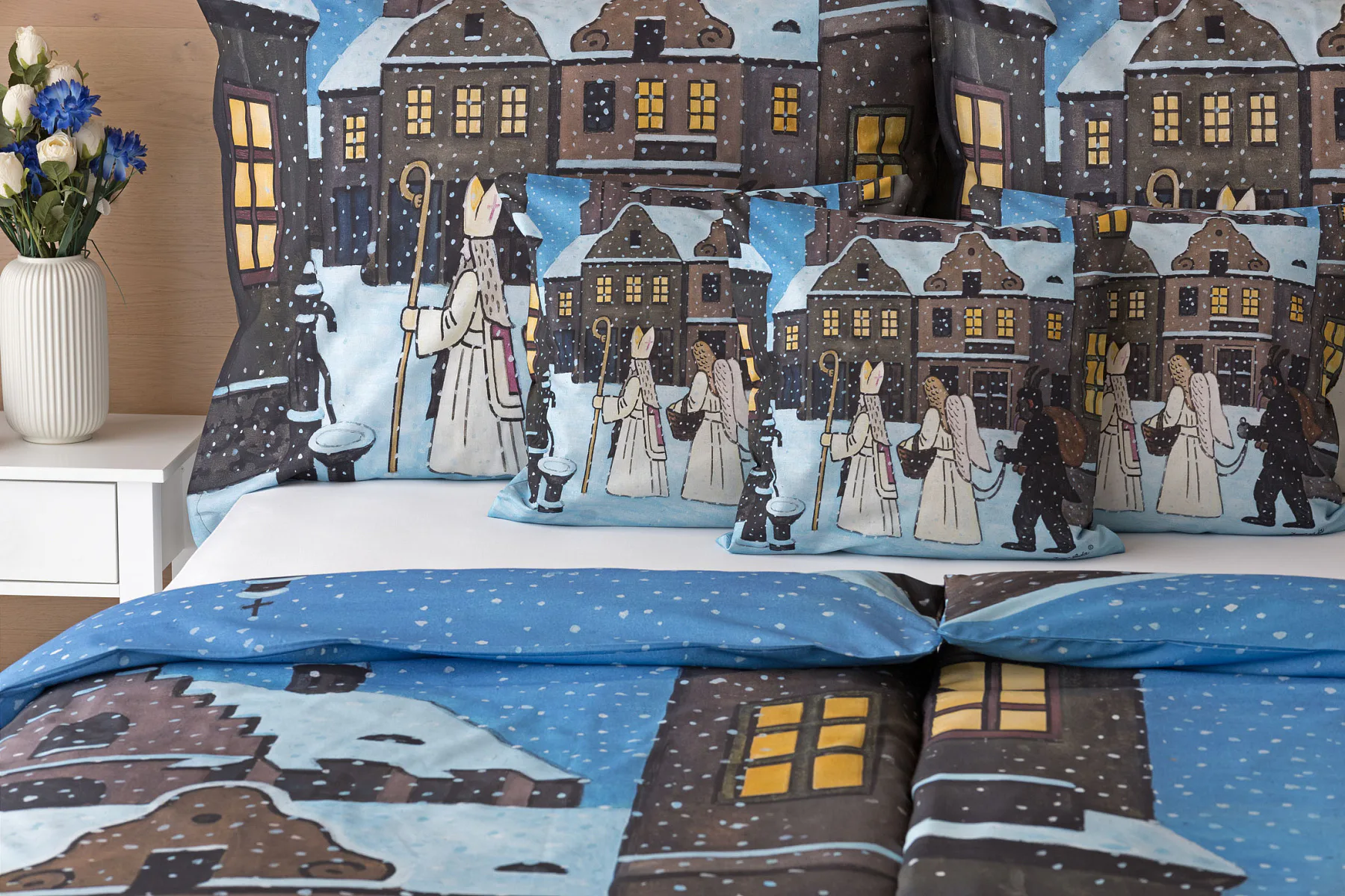 Pozvěte k sobě domů kouzlo nestárnoucích kreseb Josefa Lady, které jsou pro mnohé z nás symbolem dětství, harmonického venkova a české tradice. Motiv inspirovaný lidovou tradicí Mikuláše, anděla a čerta zachycuje kouzlo adventního období a připomíná oblíbený zvyk spojený s očekáváním Vánoc.