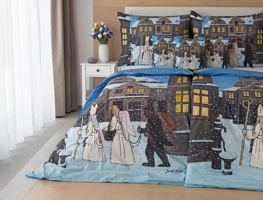 Tento motiv povlečení z kolekce Josef Lada vyrábíme s ohledem na dostupná tisková data pouze v klasickém rozměru přikrývek 140x200 cm, případně v prodloužené délce 140x220 cm.