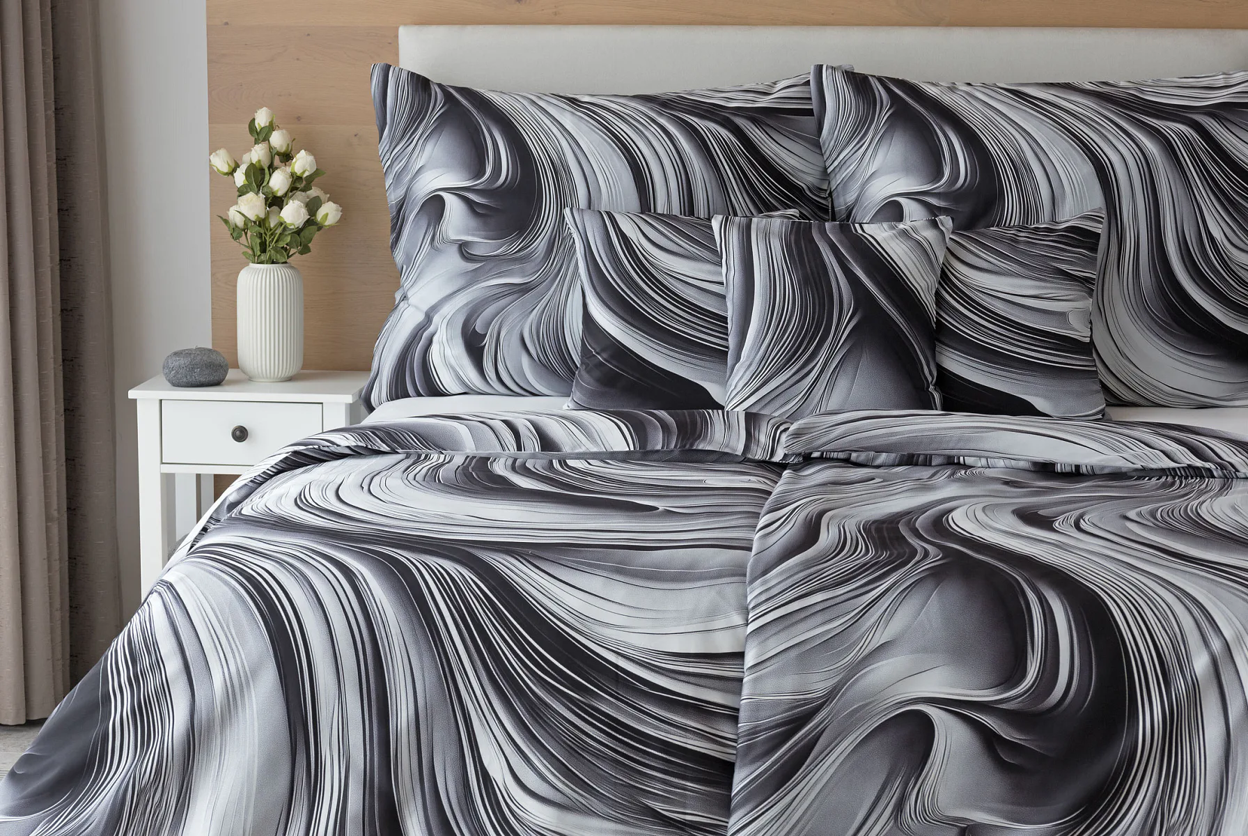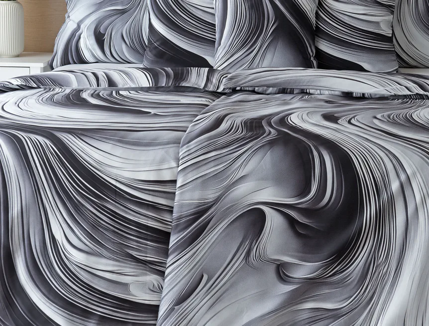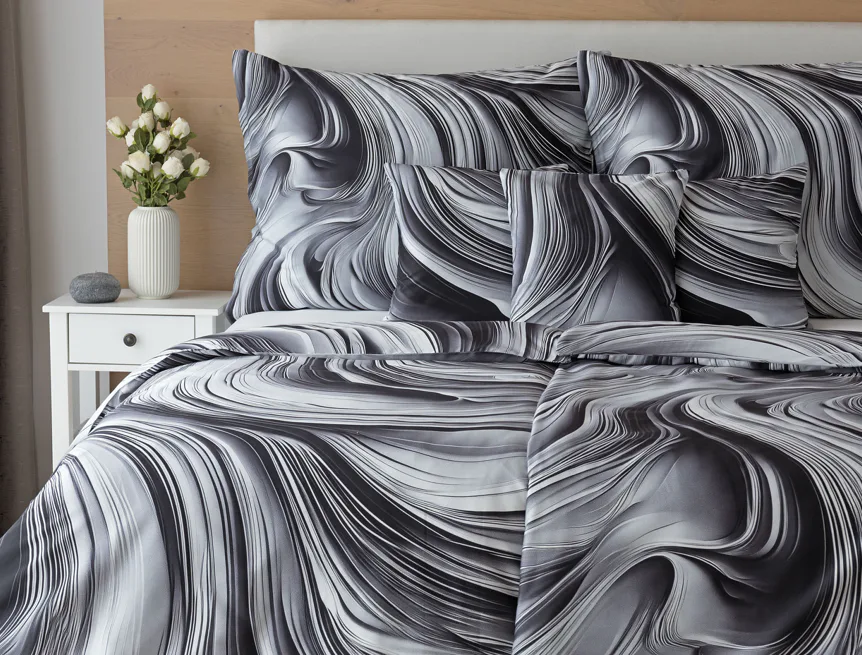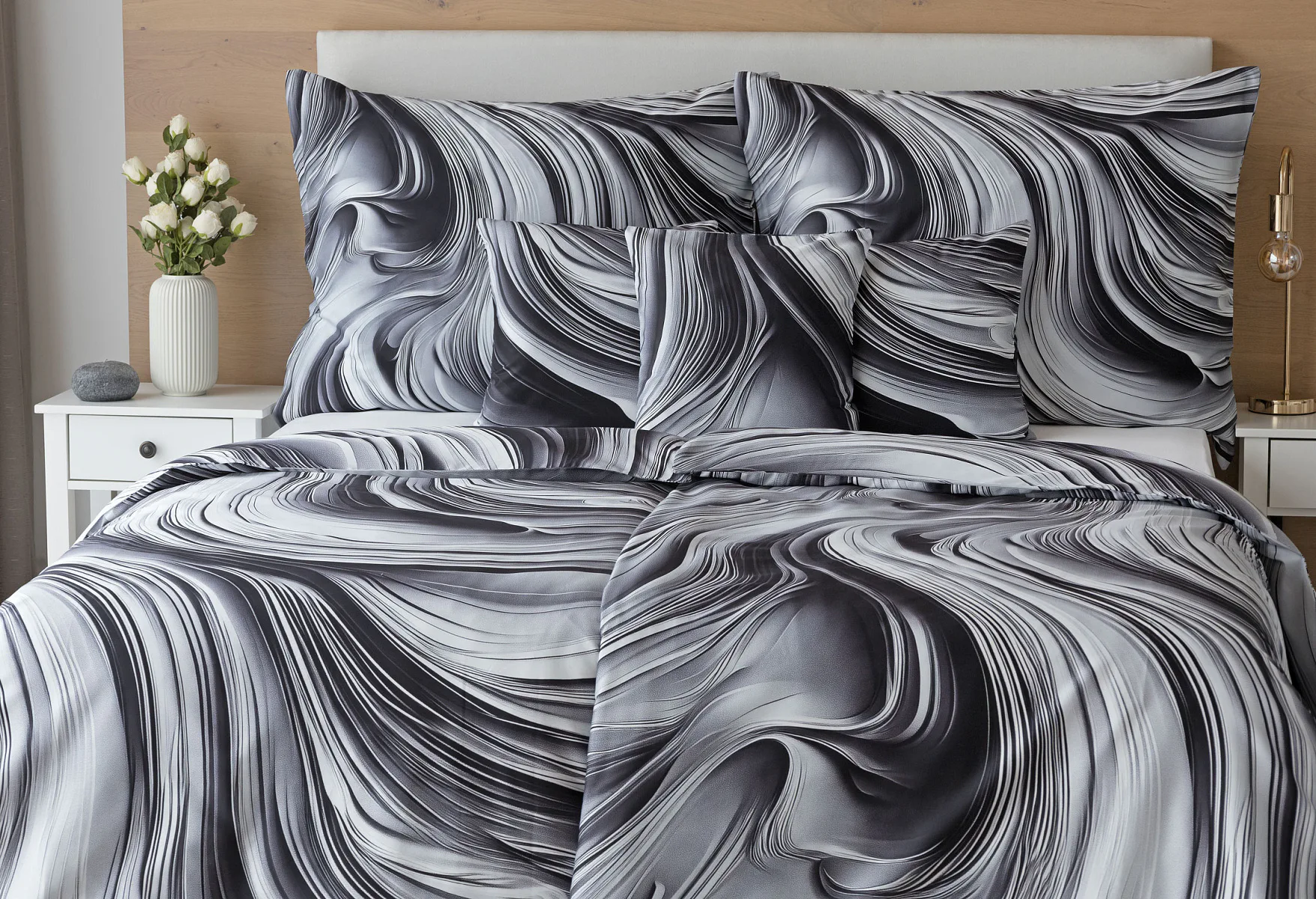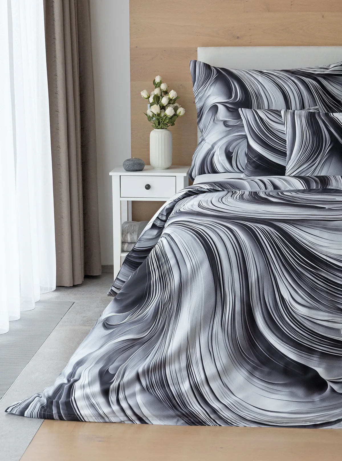 Nestárnoucí černobílé linie a nadčasový design se snoubí v originálním vzoru ložního povlečení Monroe, kde tradiční černobílá kombinace v harmonii s neotřelým abstraktním designem zaujme na první pohled. Díky nejmodernější digitální technologii tisku vyniká vzor v precizním detailu a barvy si zachovají svou sytost i po mnoha praních. Tento skvost vynikne zejména ve vzdušném a minimalistickém interiéru.