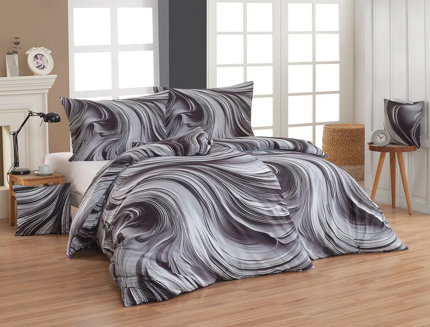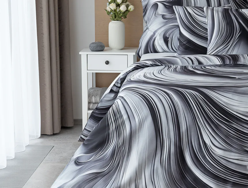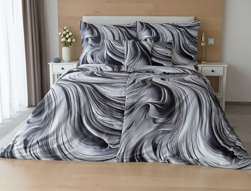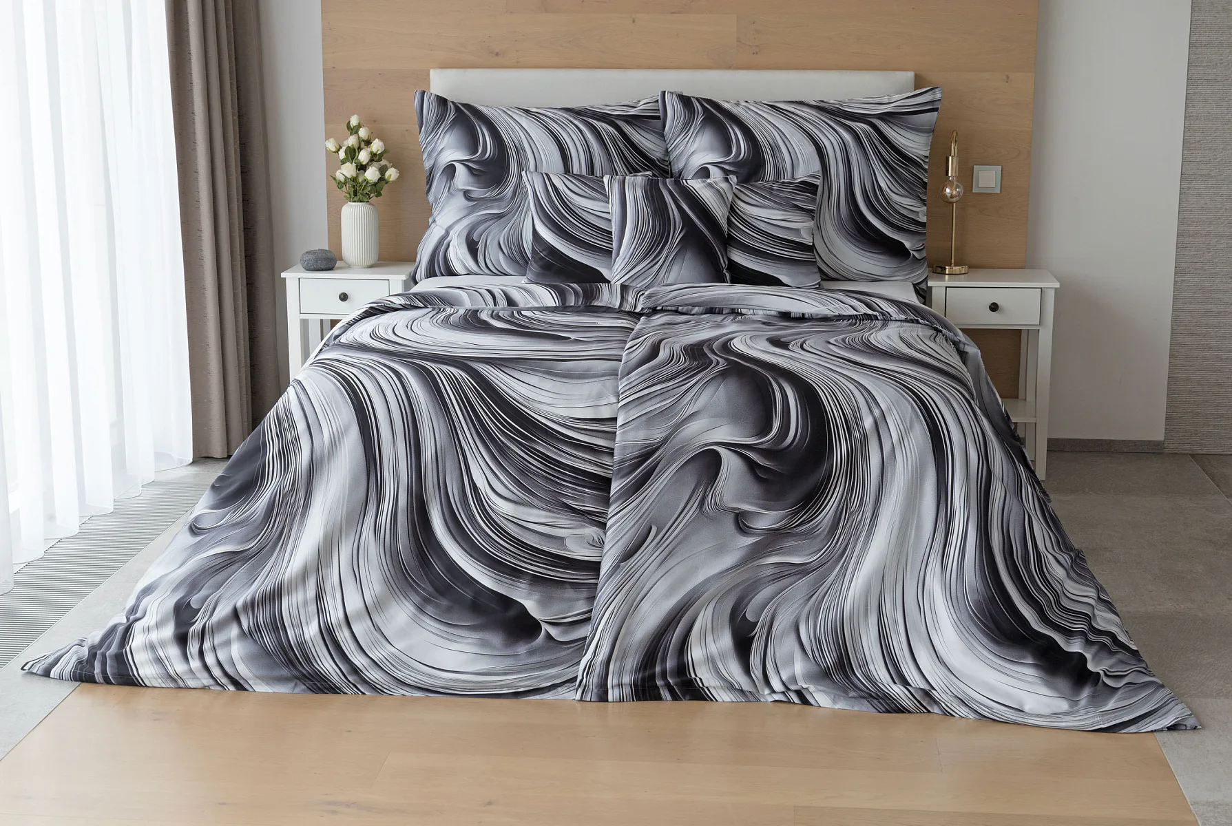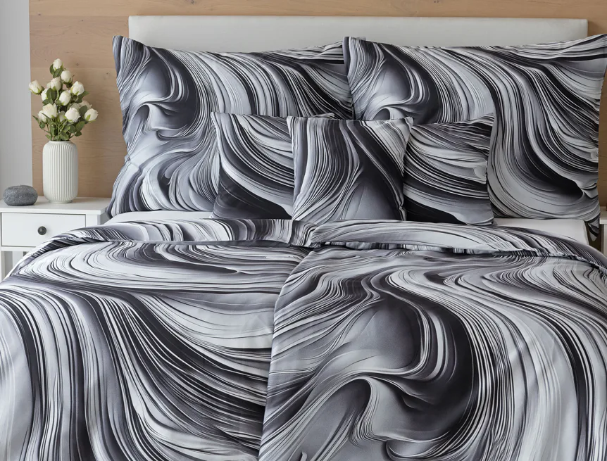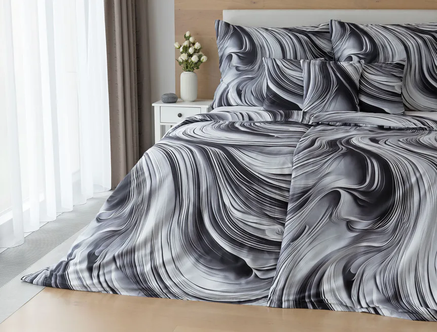 Nestárnoucí černobílé linie a nadčasový design se snoubí v originálním vzoru ložního povlečení Monroe, kde tradiční černobílá kombinace v harmonii s neotřelým abstraktním designem zaujme na první pohled. Díky nejmodernější digitální technologii tisku vyniká vzor v precizním detailu a barvy si zachovají svou sytost i po mnoha praních. Tento skvost vynikne zejména ve vzdušném a minimalistickém interiéru.