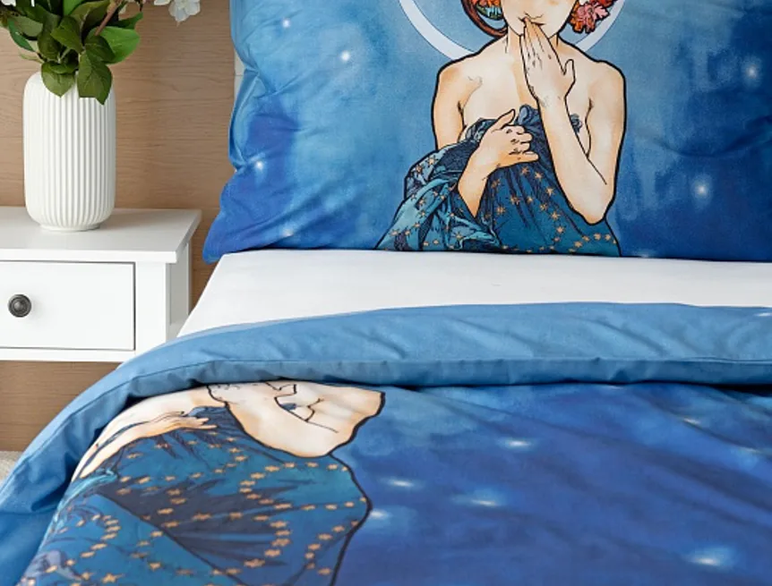 Pečlivě vybrané motivy z díla světově známého malíře Alfonse Muchy teď mohou zdobit váš interiér v podobě luxusního bavlněného povlečení. Dopřejte si harmonické usínání s povlečením Moon