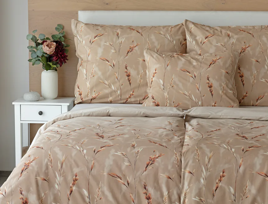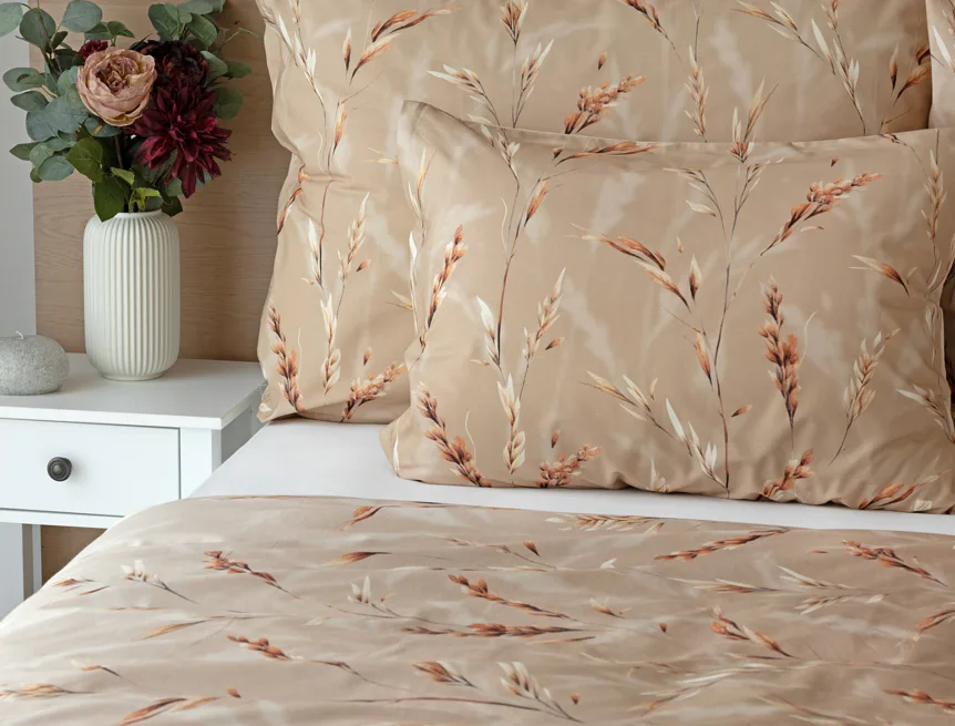 Vychutnejte si zasloužené chvíle odpočinku s bavlněným povlečením Natura. Vzory klasů v jemných béžových a hnědých tónech evokují přírodní krásu a teplo venkova. Povlečení je vyrobeno ze 100% prvotřídní bavlny, která zajišťuje maximální komfort a zaručí váš zdravý spánek.