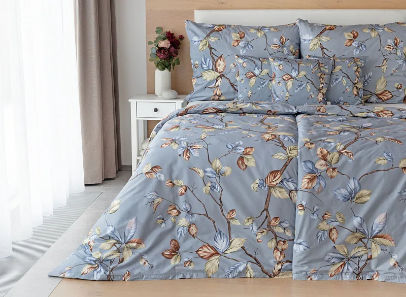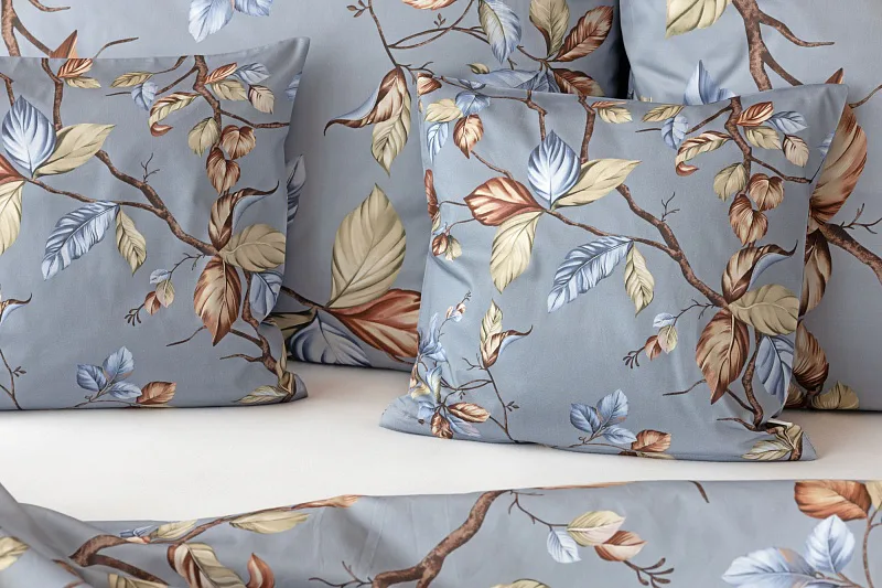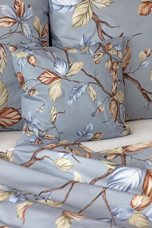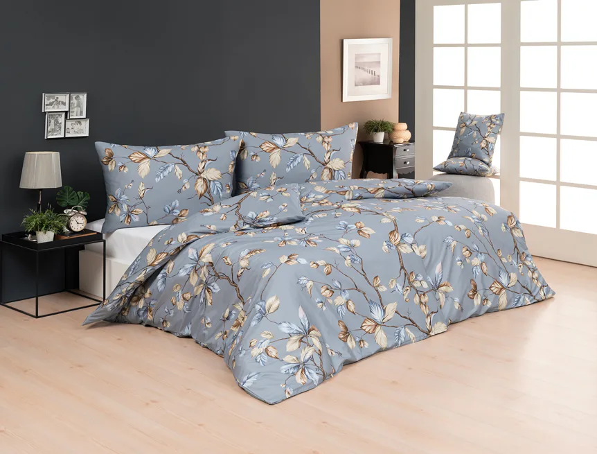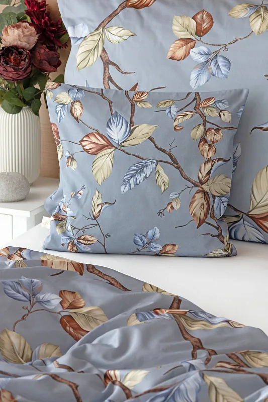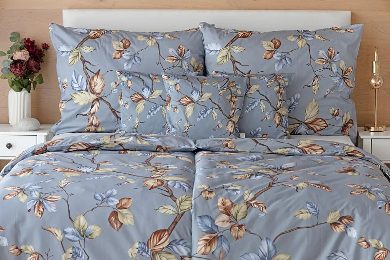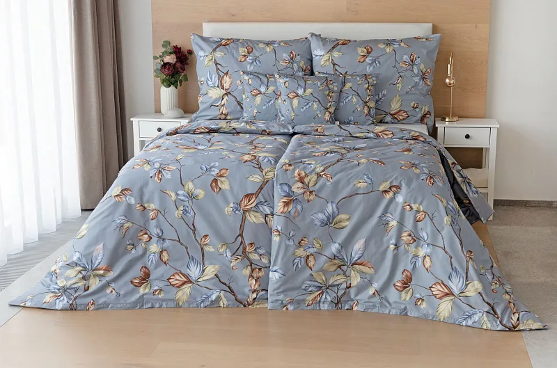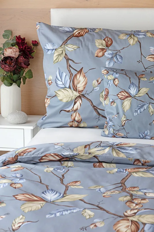 Ložní povlečení Nobilis vás nadchne ve všech ohledech. Na první pohled si zamilujete jednoduchý florální motiv v hřejivých barvách a na první dotek podlehnete kouzlu hebkého mako saténu ze 100% bavlny, který se postará o váš spokojený spánek. Podkladová barva ložního povlečení je kovově modrošedá.