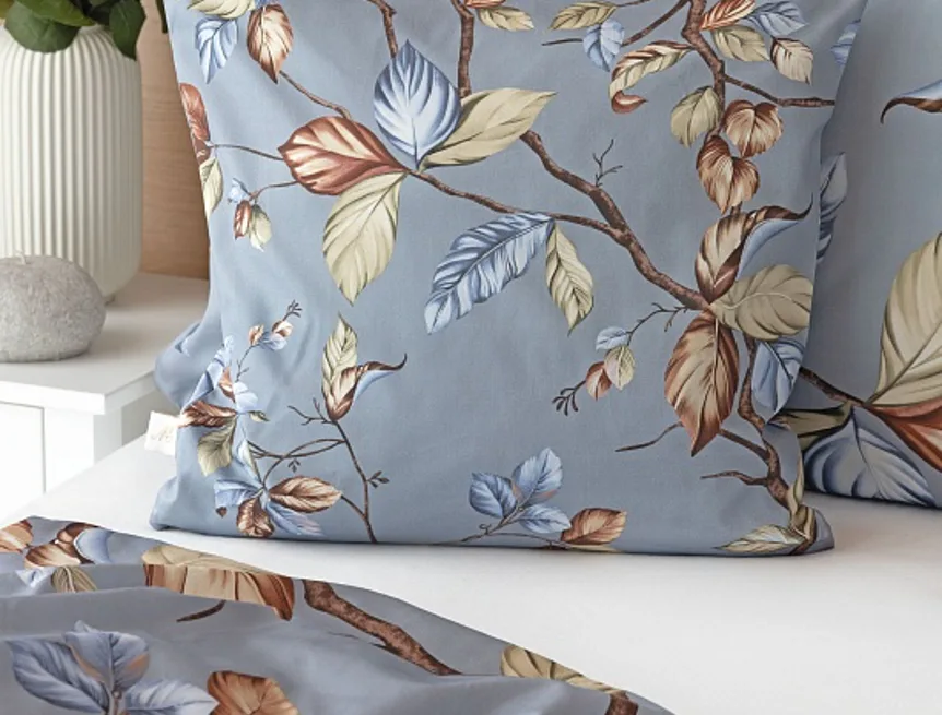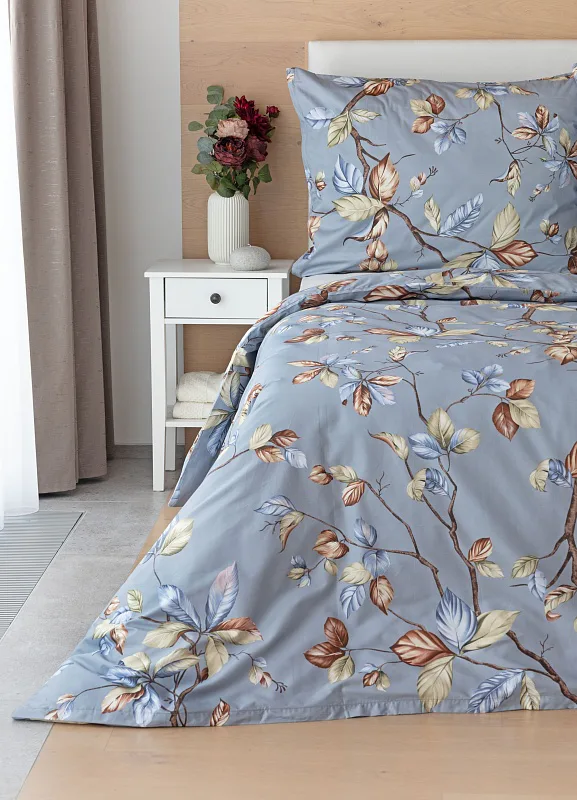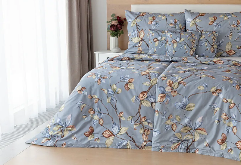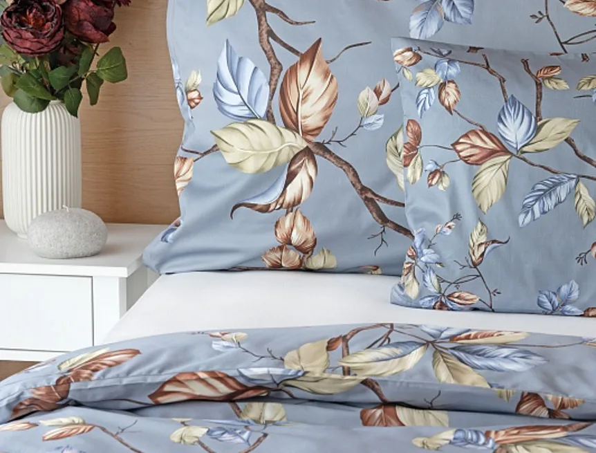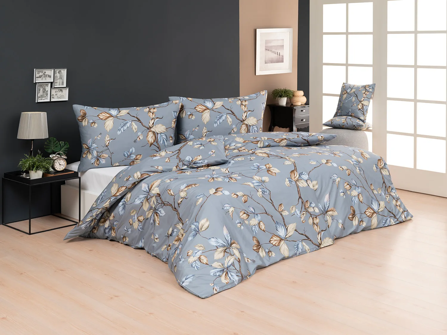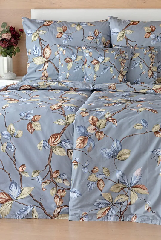 Ložní povlečení Nobilis vás nadchne ve všech ohledech. Na první pohled si zamilujete jednoduchý florální motiv v hřejivých barvách a na první dotek podlehnete kouzlu hebkého mako saténu ze 100% bavlny, který se postará o váš spokojený spánek. Podkladová barva ložního povlečení je kovově modrošedá.