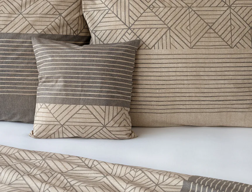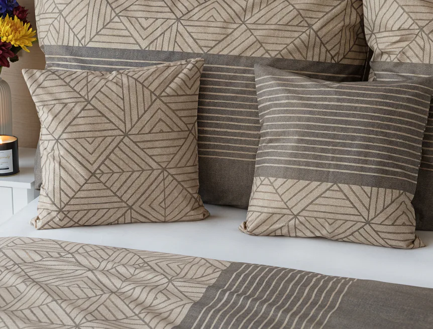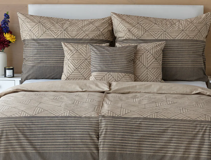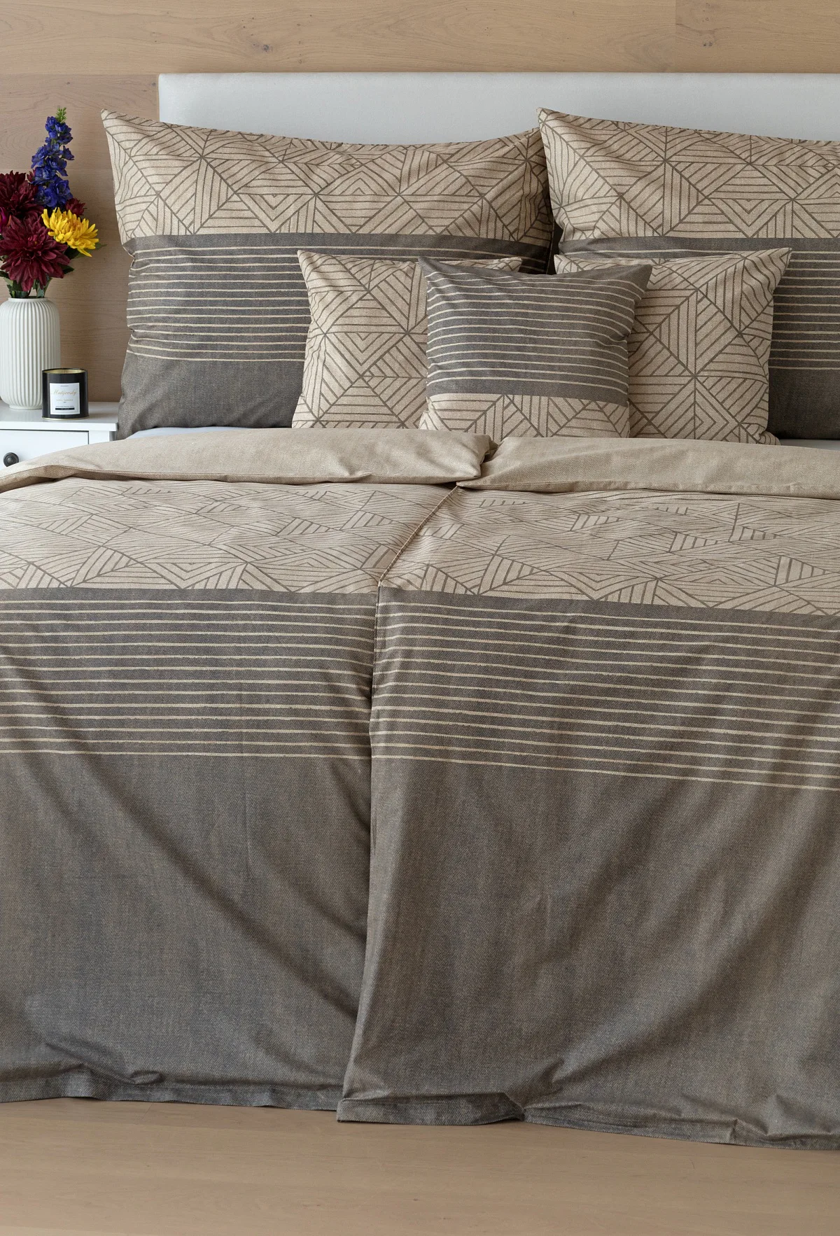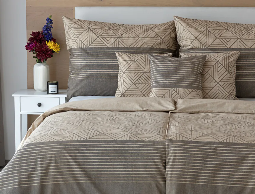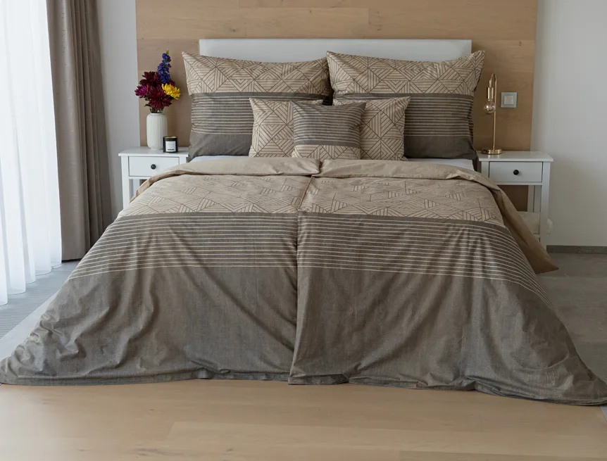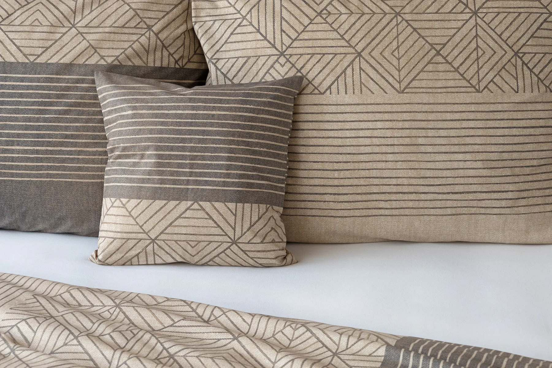 Zařiďte si ložnici ve znamení střídmé elegance s bavlněným povlečením Pietro. Jemný geometrický vzor v kombinaci šedých, přírodních béžových a hnědých tónů dodá interiéru hřejivý nádech.