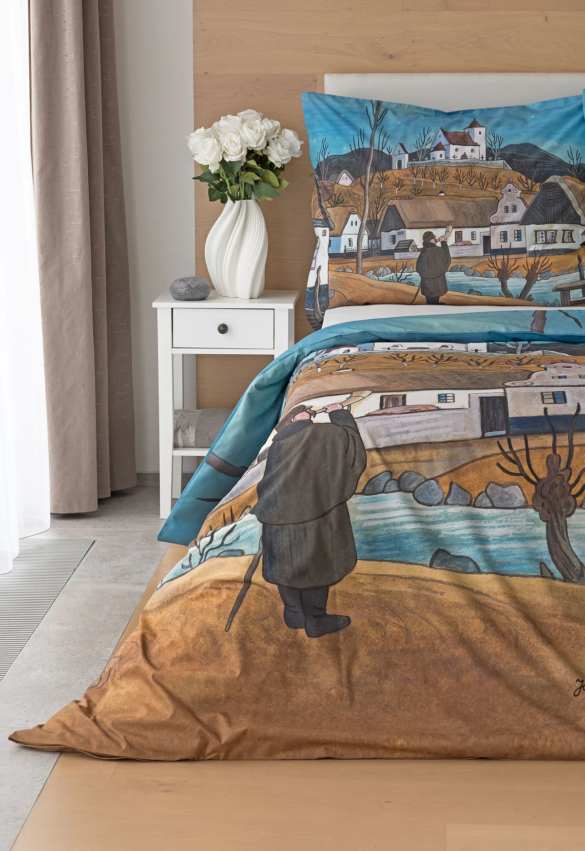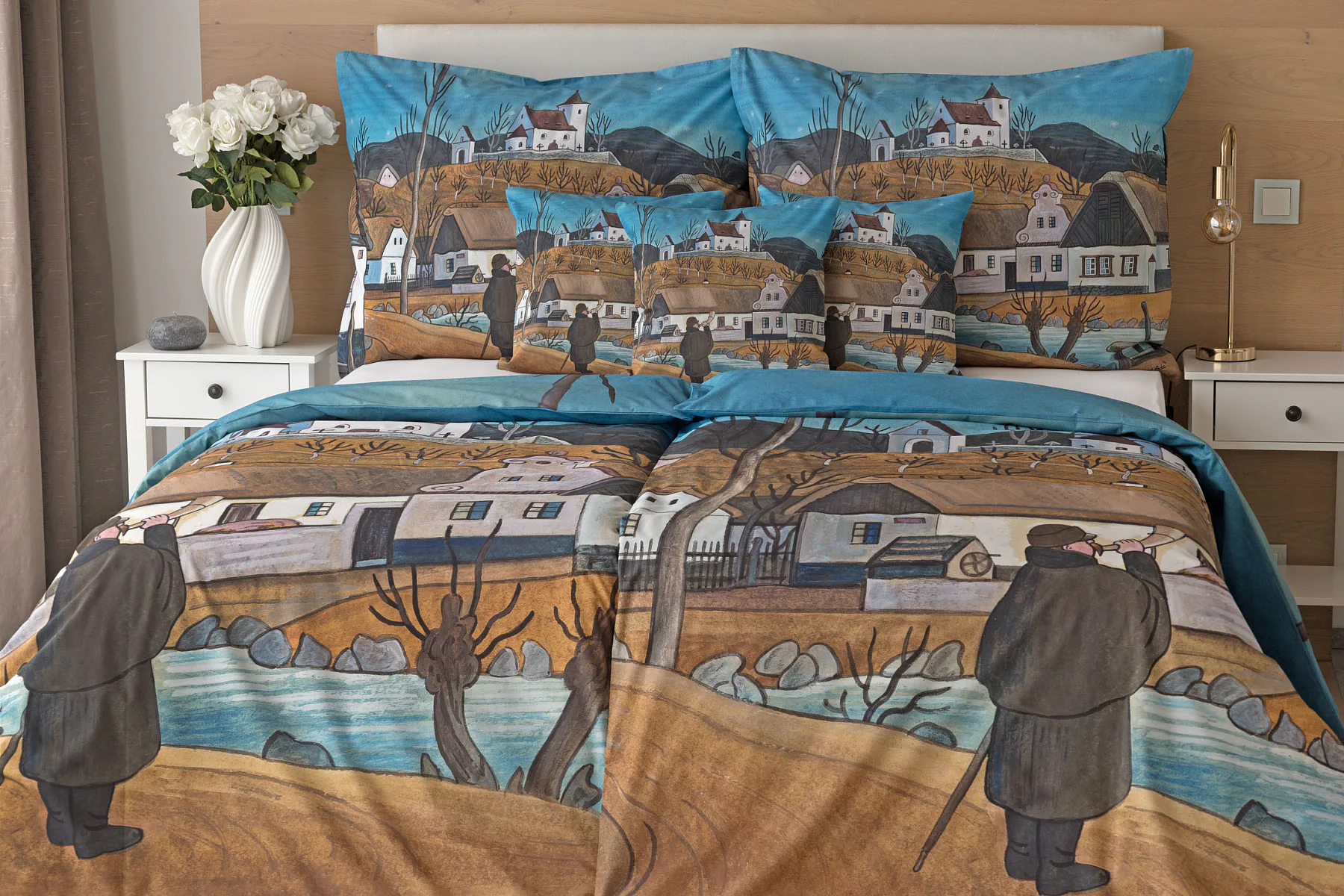 Pozvěte k sobě domů kouzlo nestárnoucích kreseb Josefa Lady, které jsou pro mnohé z nás symbolem dětství, harmonického venkova a české tradice. Povlečení Ponocný v letní noci zachycuje kouzlo tichých letních nocí, kdy se venkov ponoří do klidu a krajinu střeží postava ponocného.