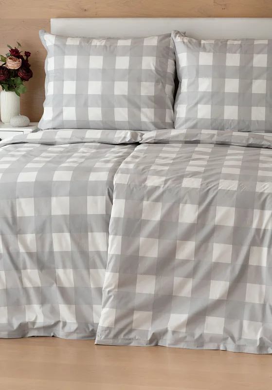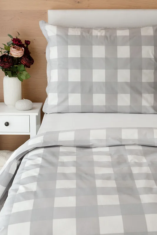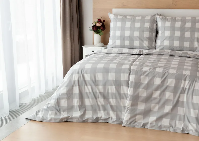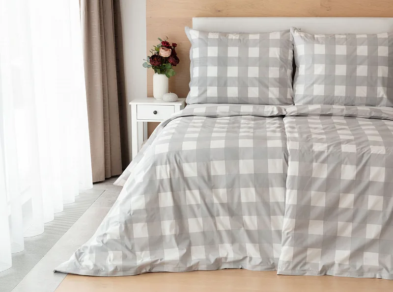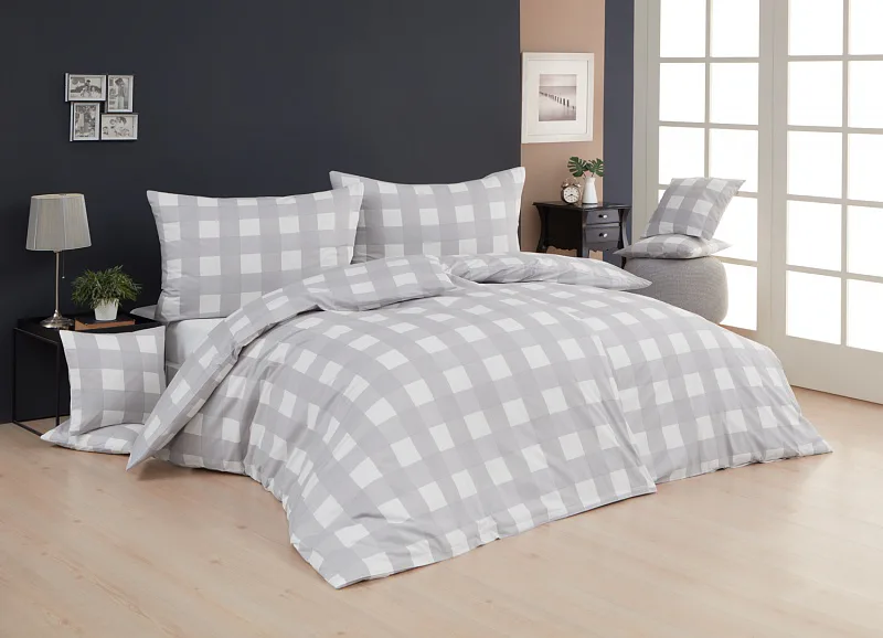 Ložní povlečení Quadro Grey potěší milovníky moderního i rustikálního stylu bydlení. Nadčasový kostkovaný vzor v odstínech šedé a krémově bílé se stane vkusným doplňkem každé ložnice bez ohledu na interiérový design. Neutrální šedé tóny navodí příjemnou domácí atmosféru v každé roční době. Přes den se budete těšit z krásné ložnice a v noci z doteku prvotřídní bavlny.