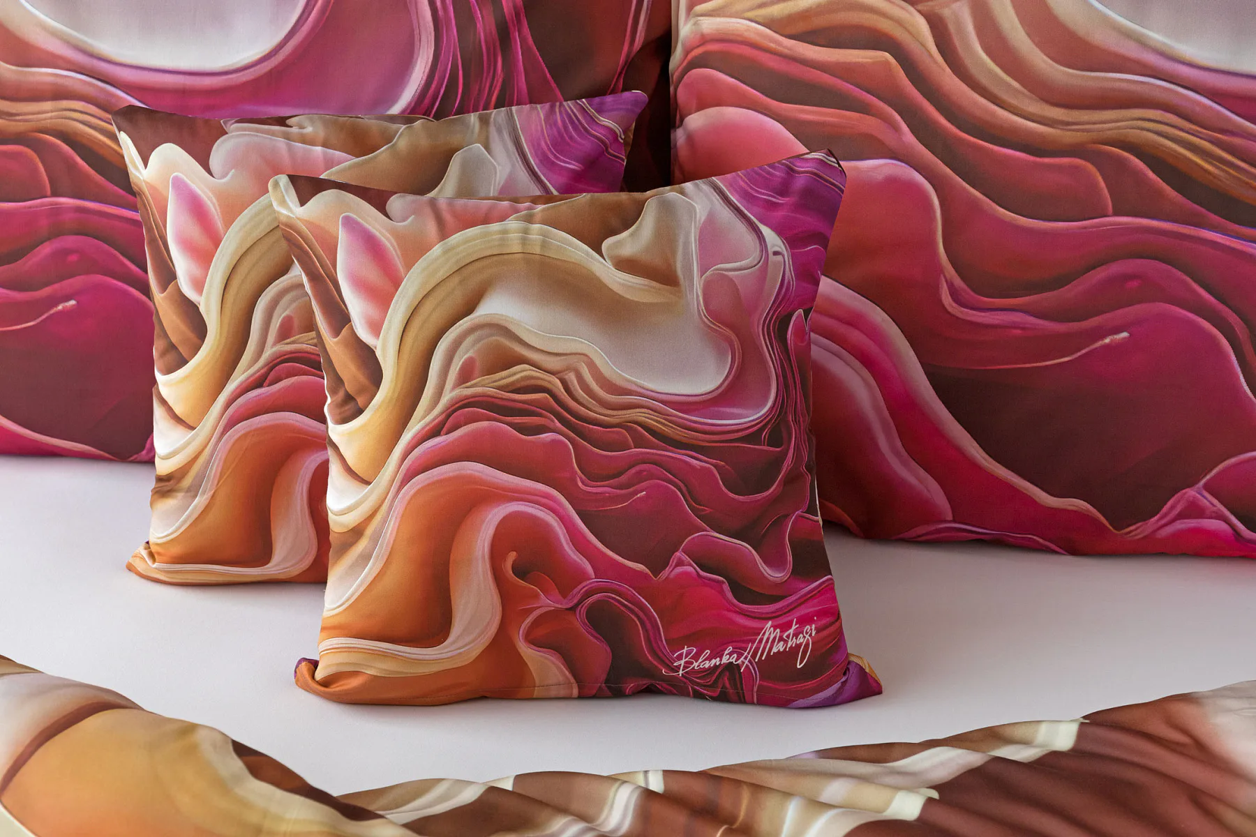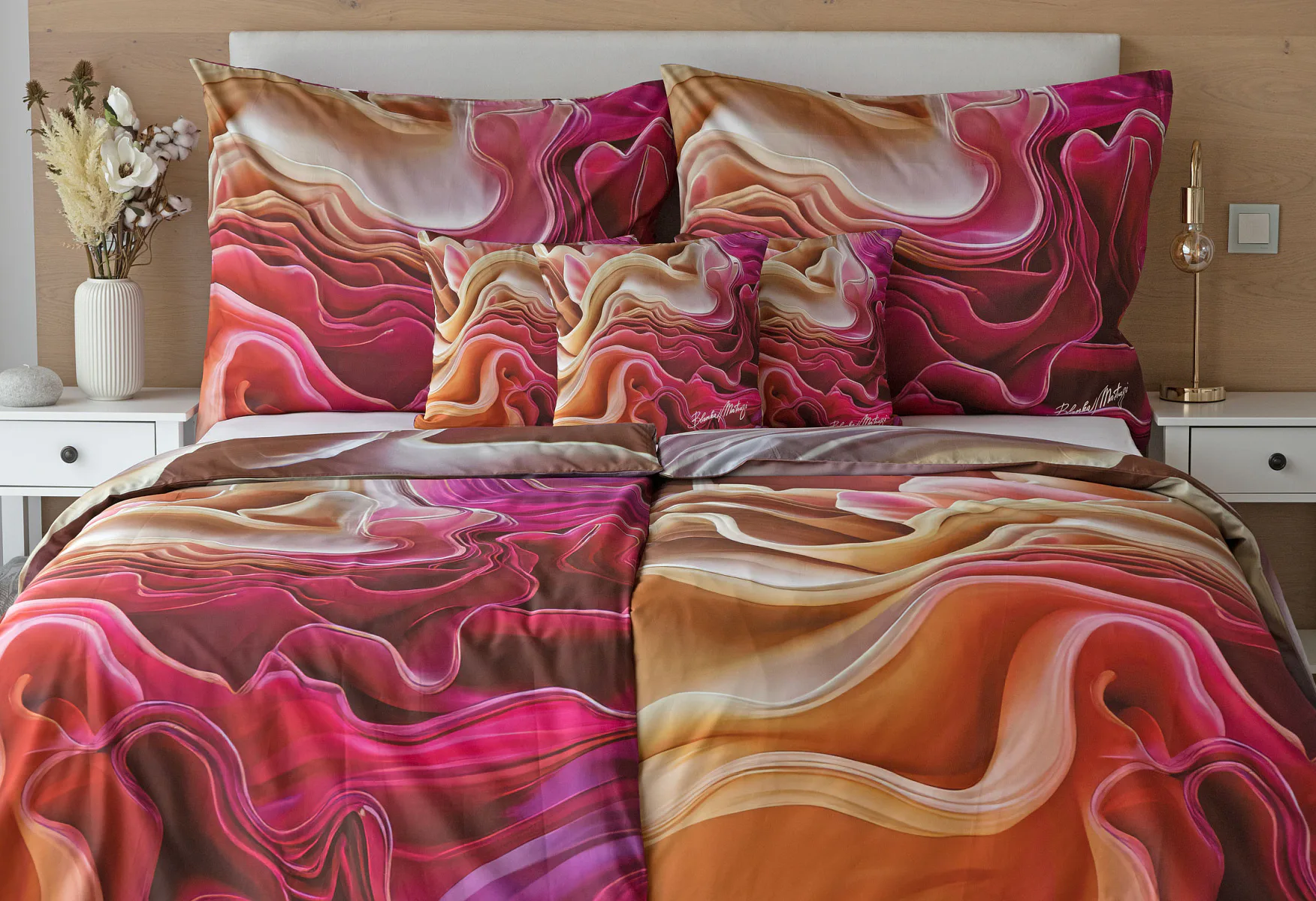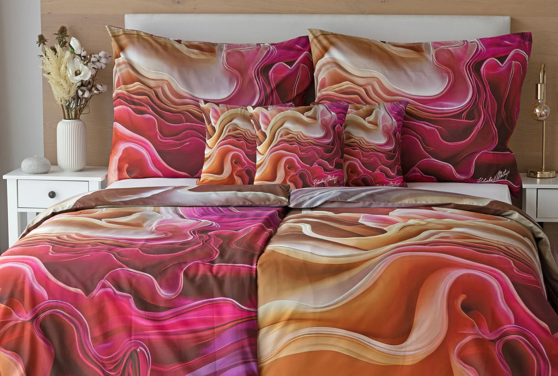 Objevte nové jedinečné vzory inspirované tvorbou světově uznávané módní návrhářky Blanky Matragi. Všechny vzory odráží její typickou hravost, vnitřní energii a odvážnou eleganci. Originální design a propracované detaily činí z tohoto luxusního povlečení umělecké dílo, které může zdobit právě vaši ložnici. Už víte, který z nových vzorů nejlépe vynikne ve vašem domácím ateliéru?