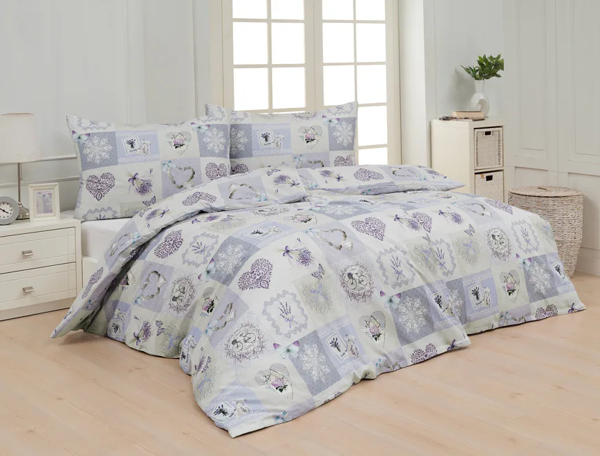 Romantické bavlněné povlečení Rosea ve stylu provence vnese do vaší ložnice svěží atmosféru. Nápaditý patchwork, kde se prolínají typické středomořské symboly, je laděný do odstínů přírodní béžové a pastelově fialové barvy.