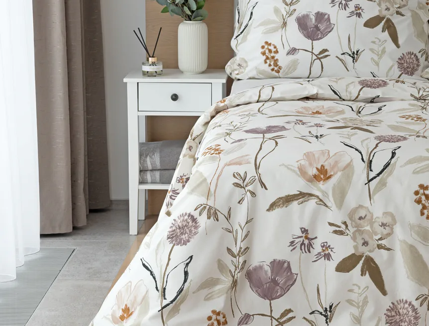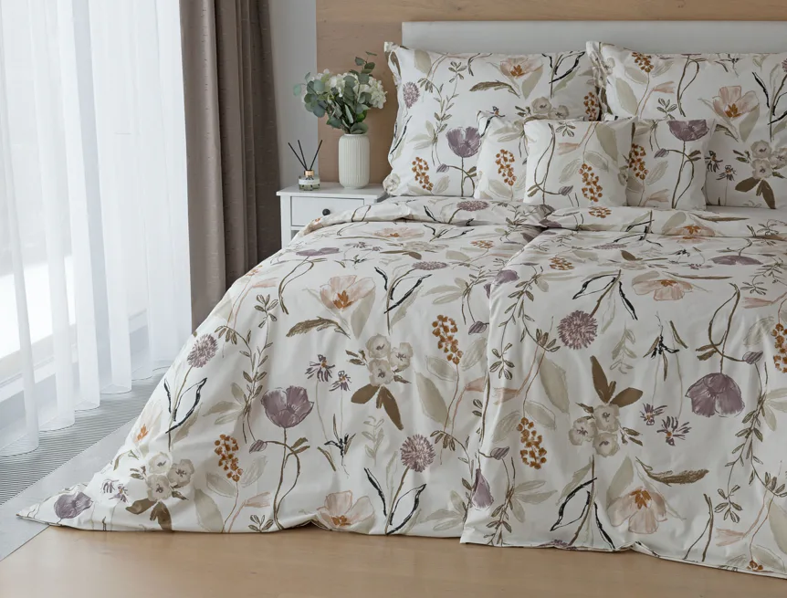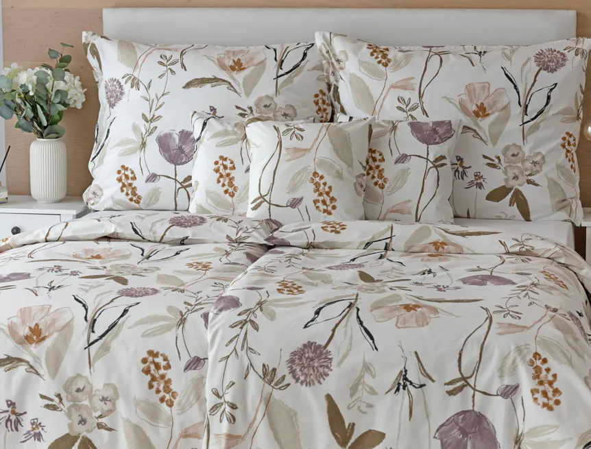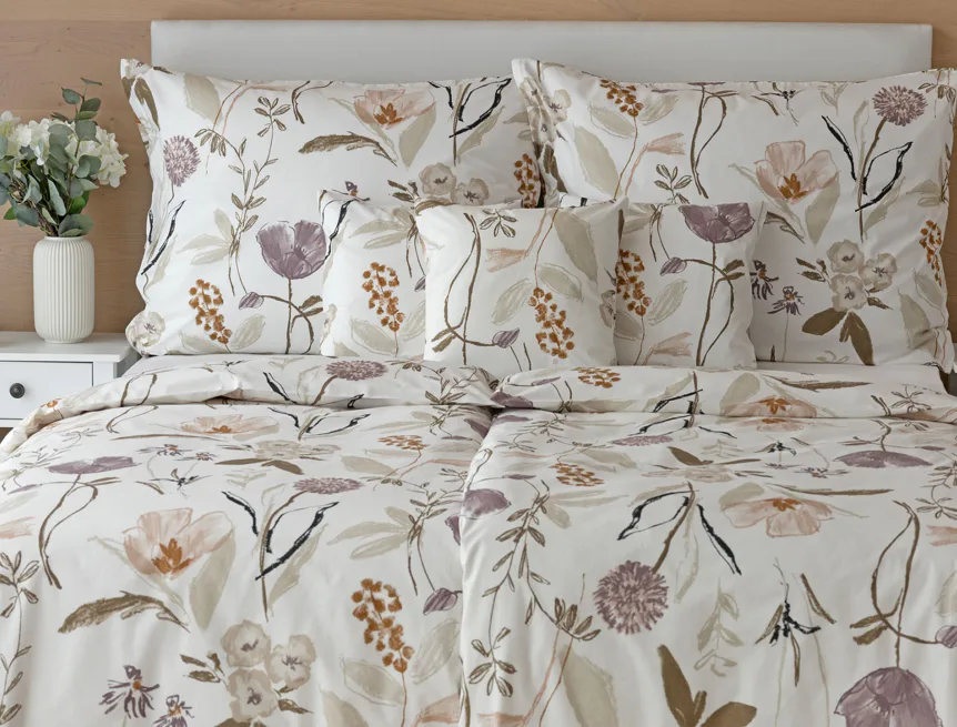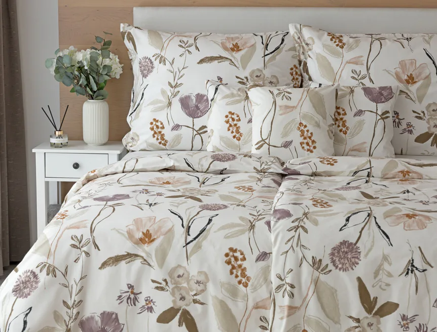 Květinové povlečení dokáže navodit svěží atmosféru v každé roční době. Bavlněné ložní povlečení Savoy vnese navíc do interiéru klid a pohodu. Motiv jemných lučních květů v přírodních zemitých tónech vyniká na krémově bílém podkladu.