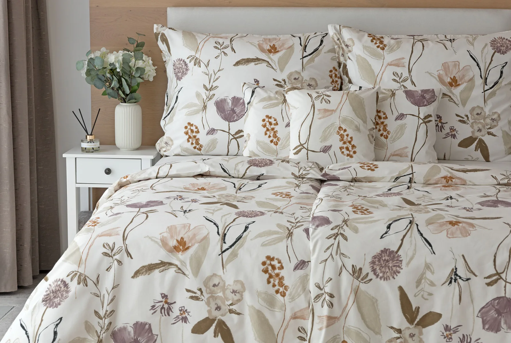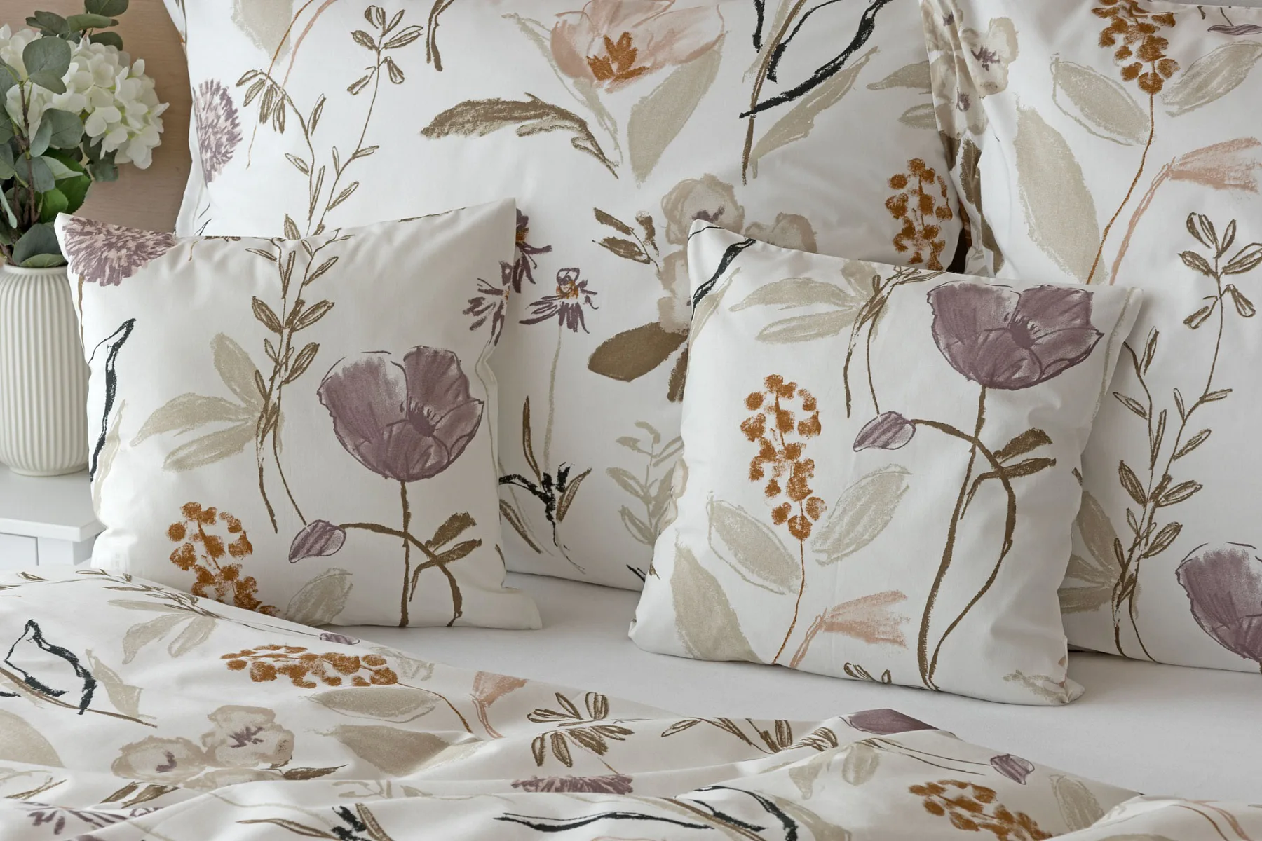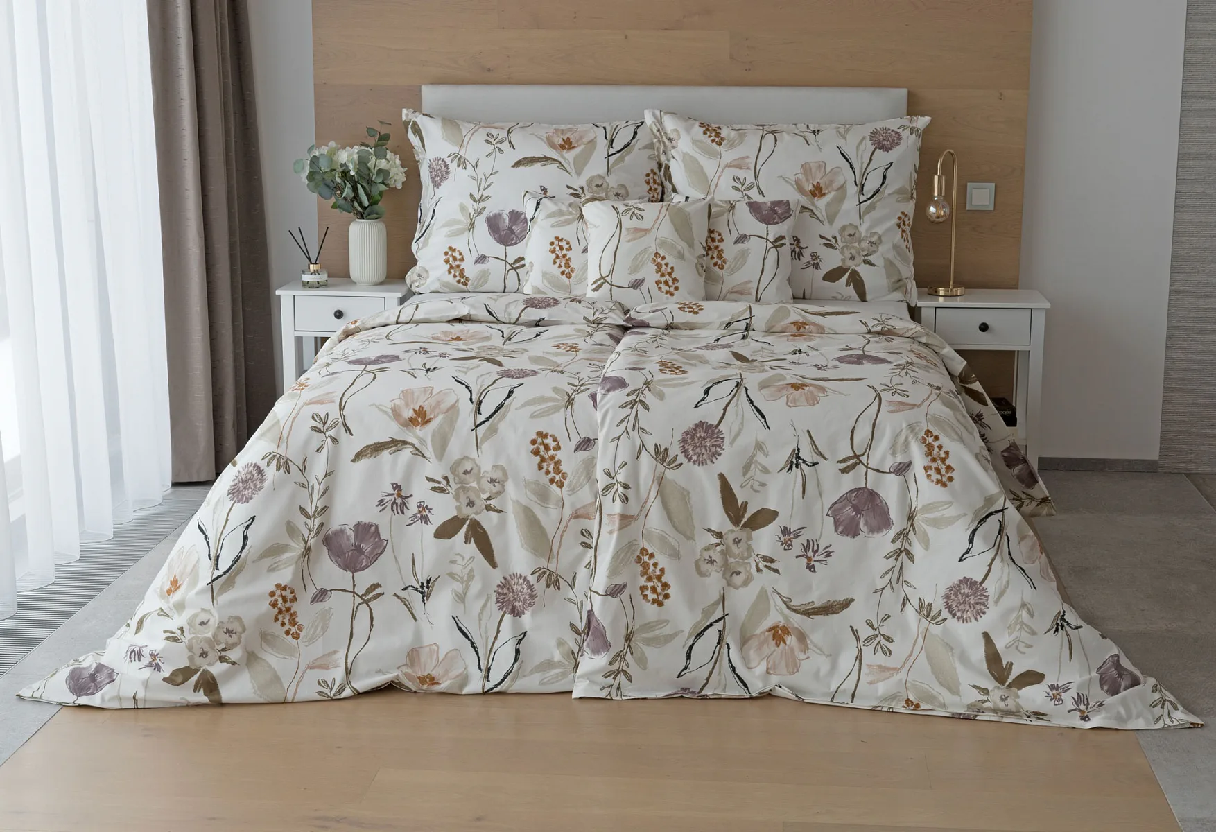 Květinové povlečení dokáže navodit svěží atmosféru v každé roční době. Bavlněné ložní povlečení Savoy vnese navíc do interiéru klid a pohodu. Motiv jemných lučních květů v přírodních zemitých tónech vyniká na krémově bílém podkladu.