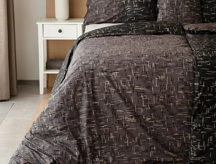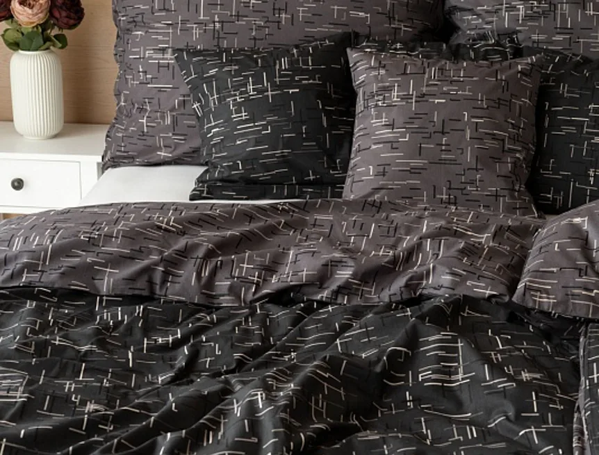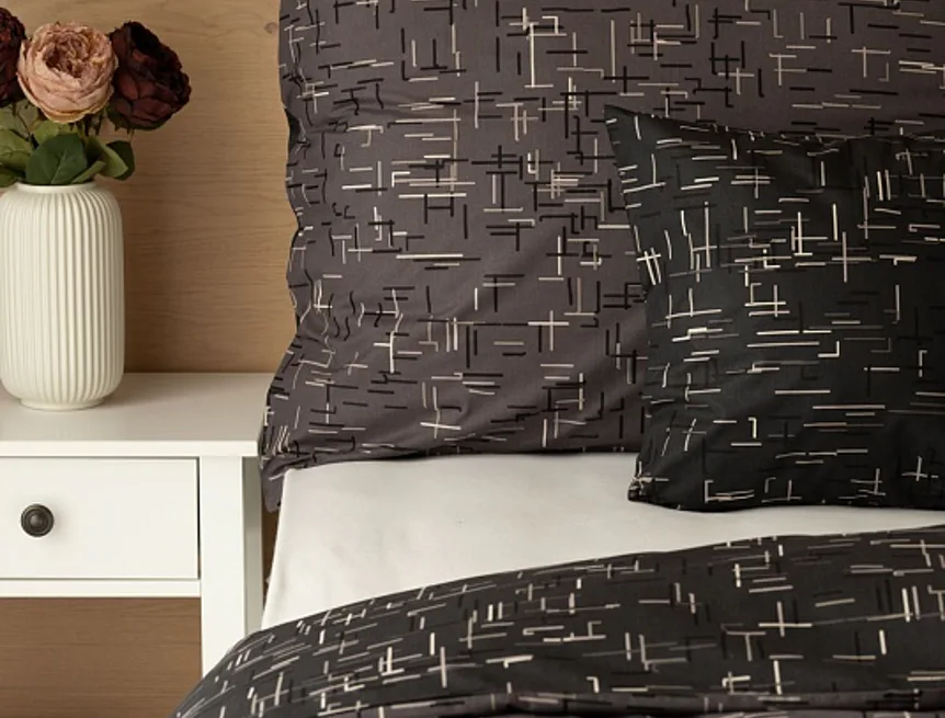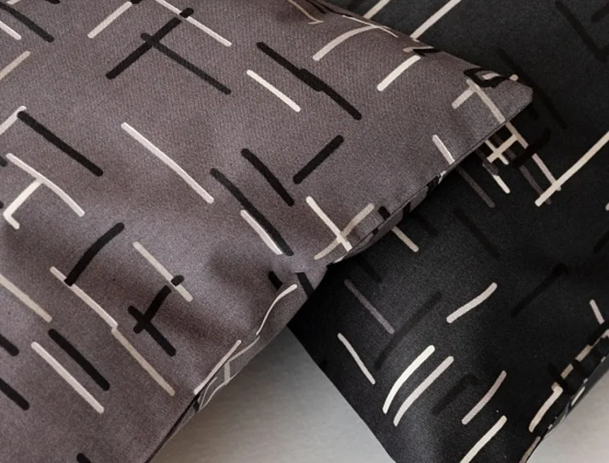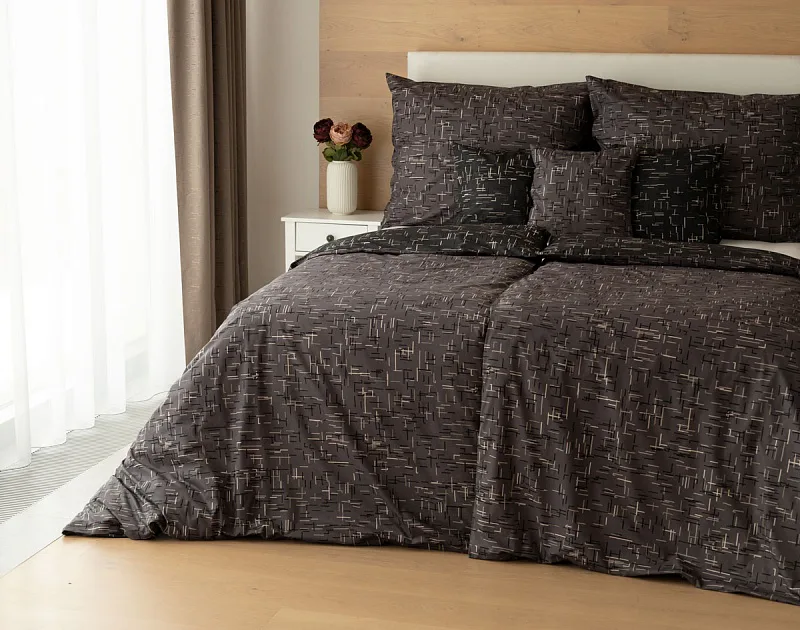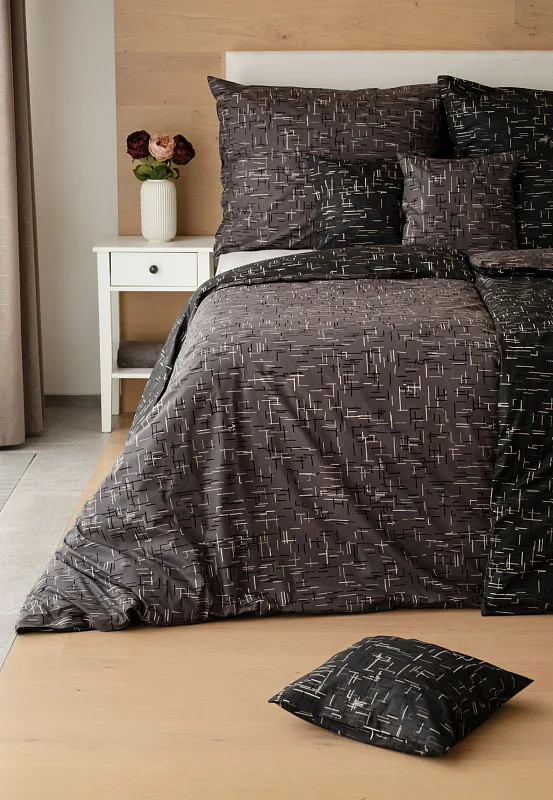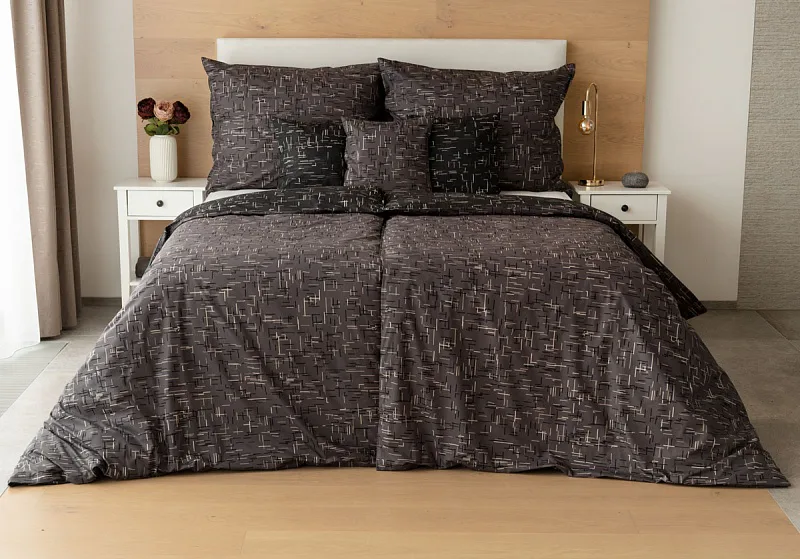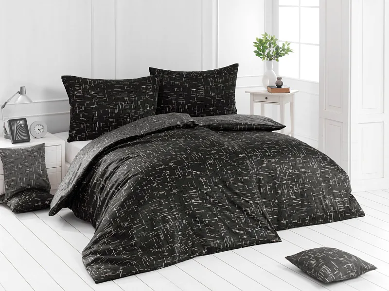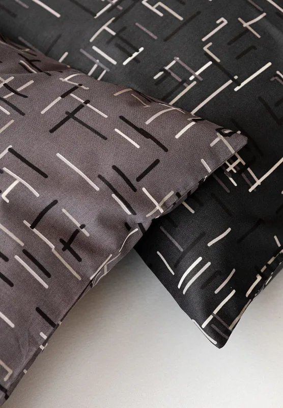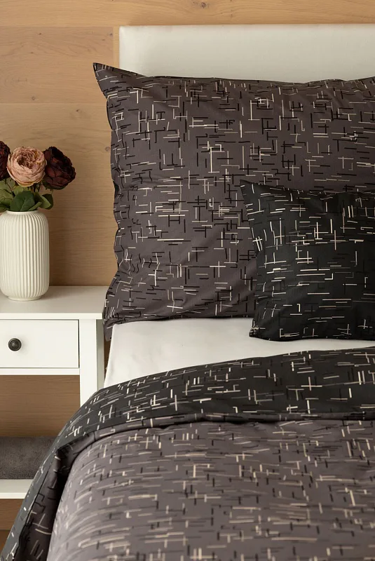 Ložní povlečení Setter promění vaši ložnici v dokonale elegantní místo. Jednoduchý geometrický vzor, který kombinuje černou a bílou s odstíny šedé, vyniká z jedné strany na středně šedém podkladu, druhá strana je tmavě antracitová.