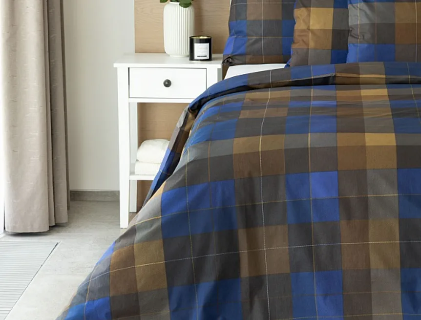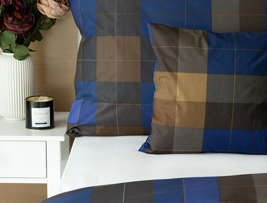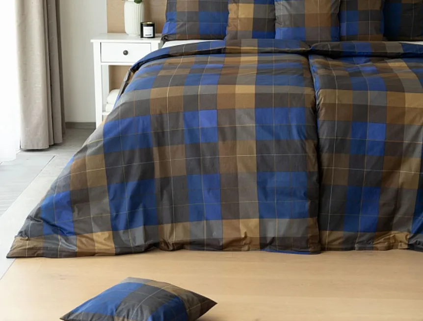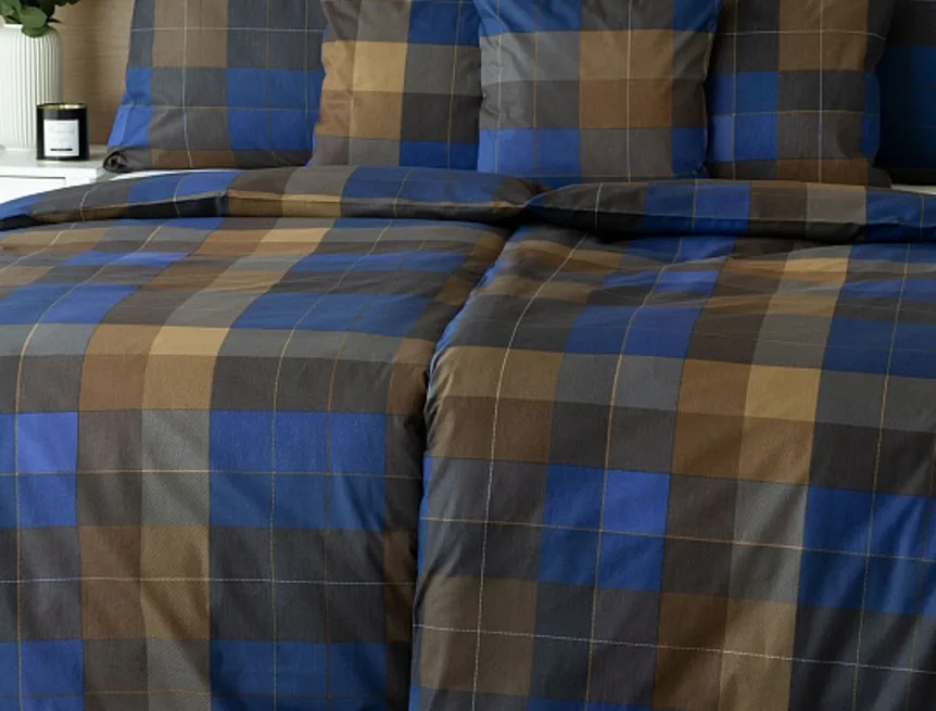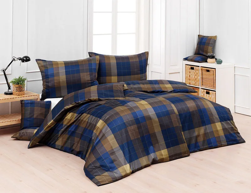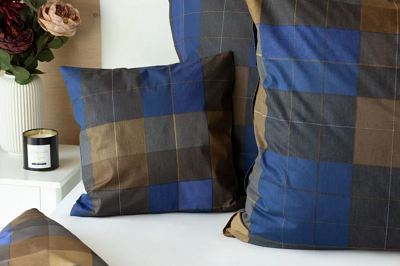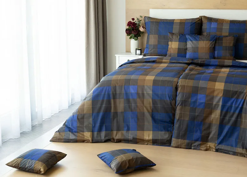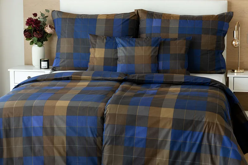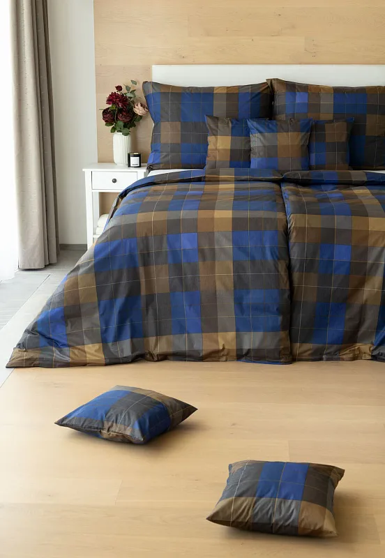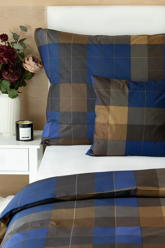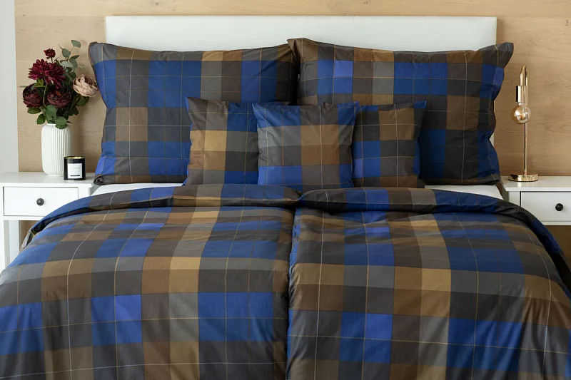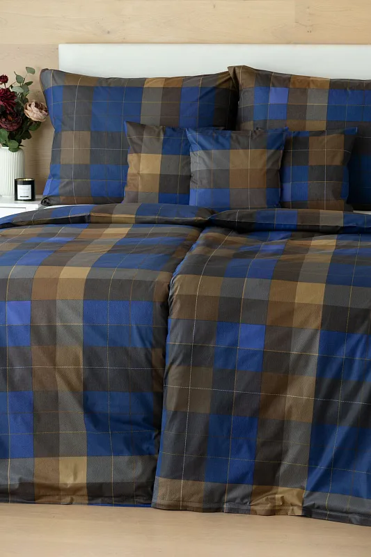 Bavlněné povlečení Shelby nesmí chybět ve vaší ložní výbavě. Nadčasový kostkovaný vzor v hřejivě hnědých a tmavě modrých tónech utváří poutavý celek, který je nesmírně elegantní, praktický a vhodný do každé ložnice.