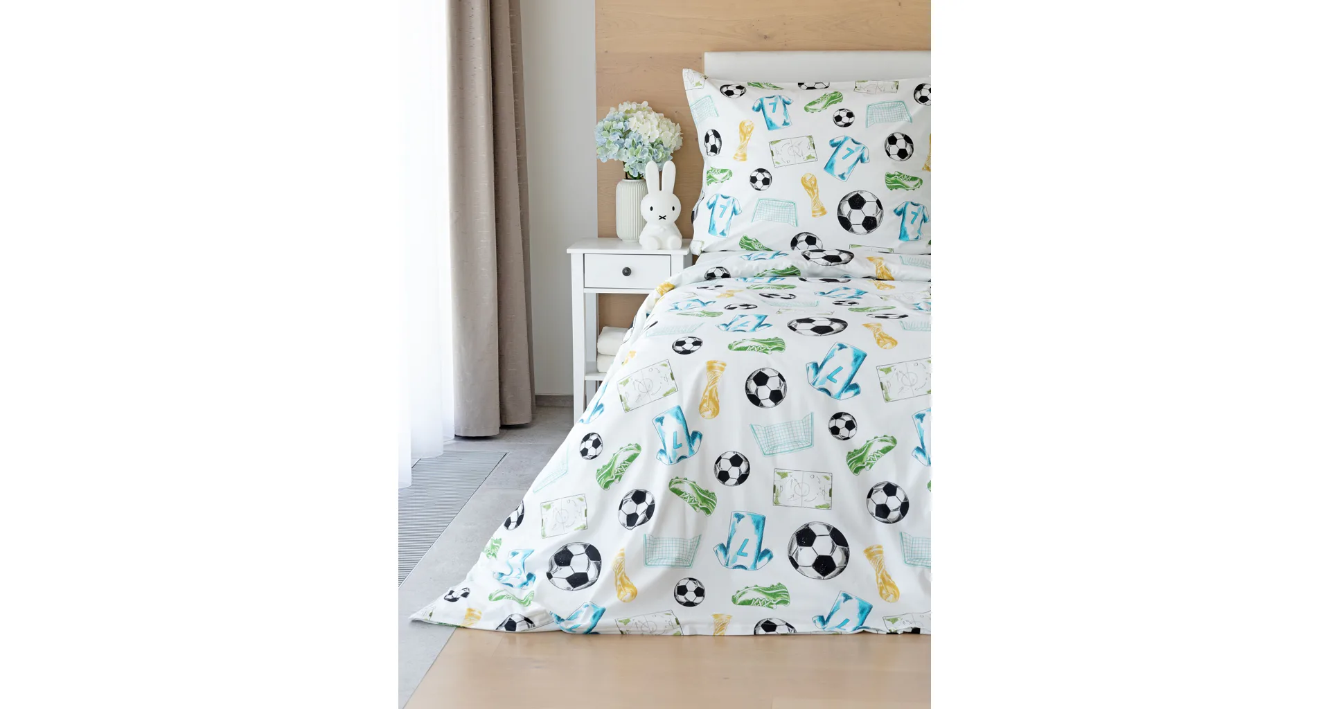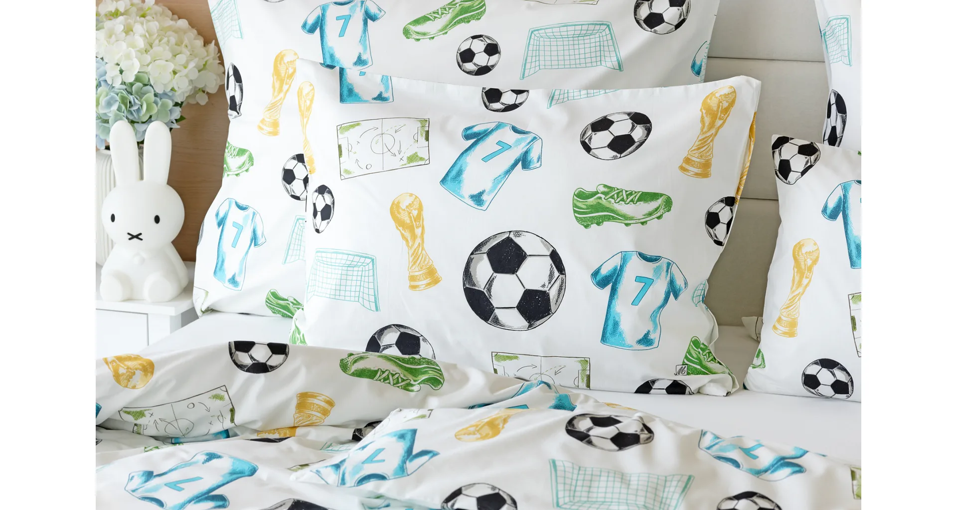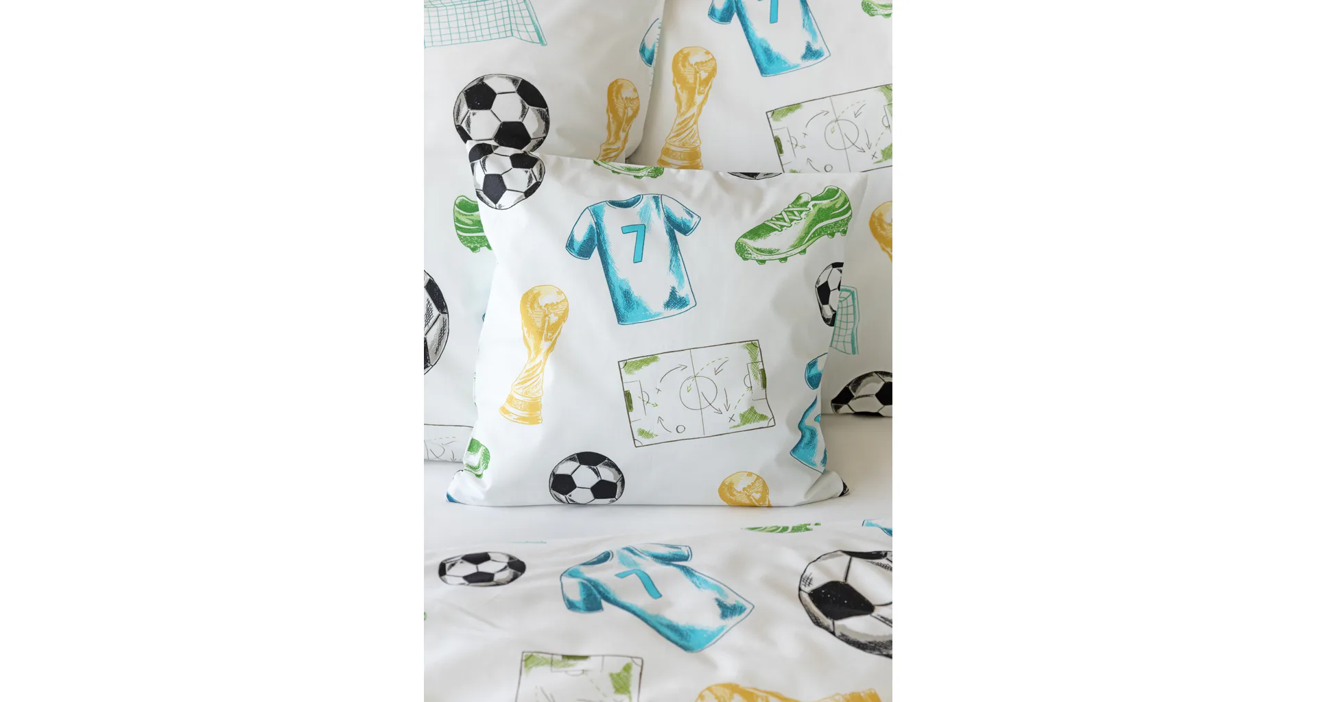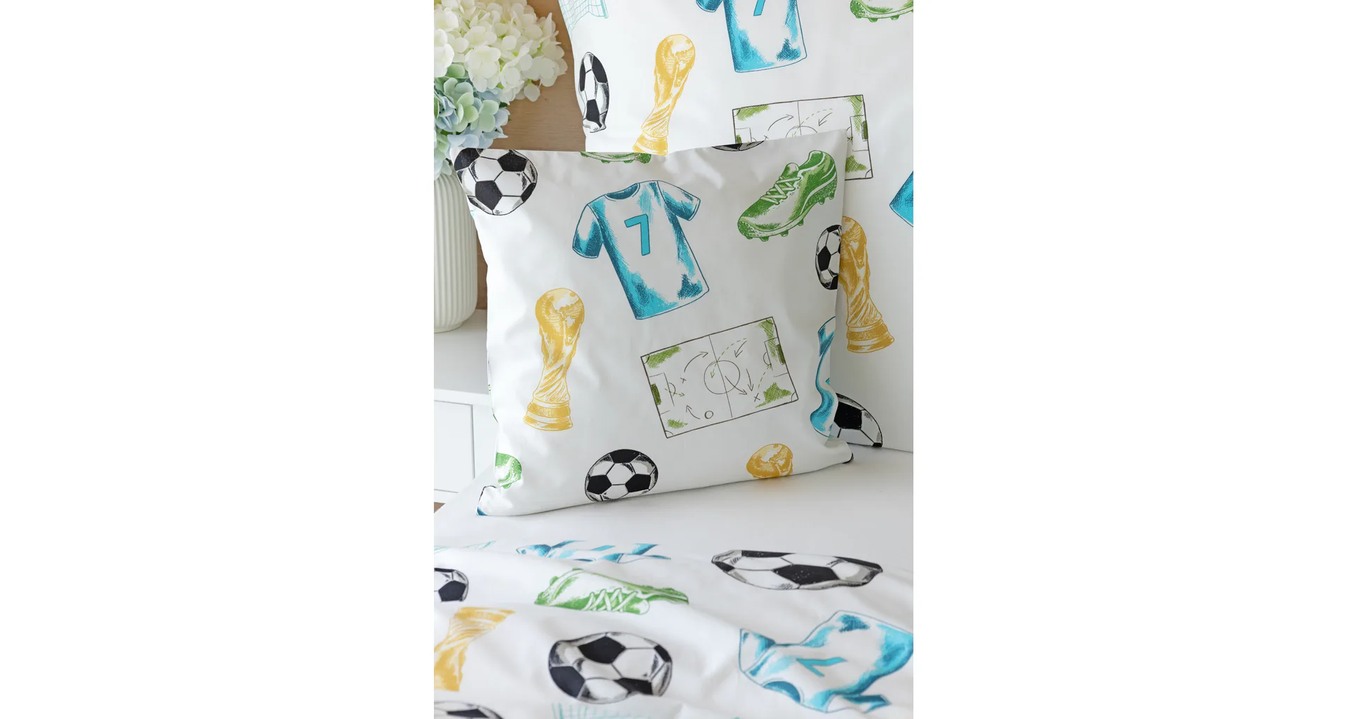 Potěšte své dítko novým bavlněným povlečením Sporty s fotbalovou tematikou. Oblíbený sportovní motiv kombinuje atraktivní barvy na bílém podkladu. Díky stoprocentní prvotřídní bavlně budou spokojeně usínat děti i rodiče.