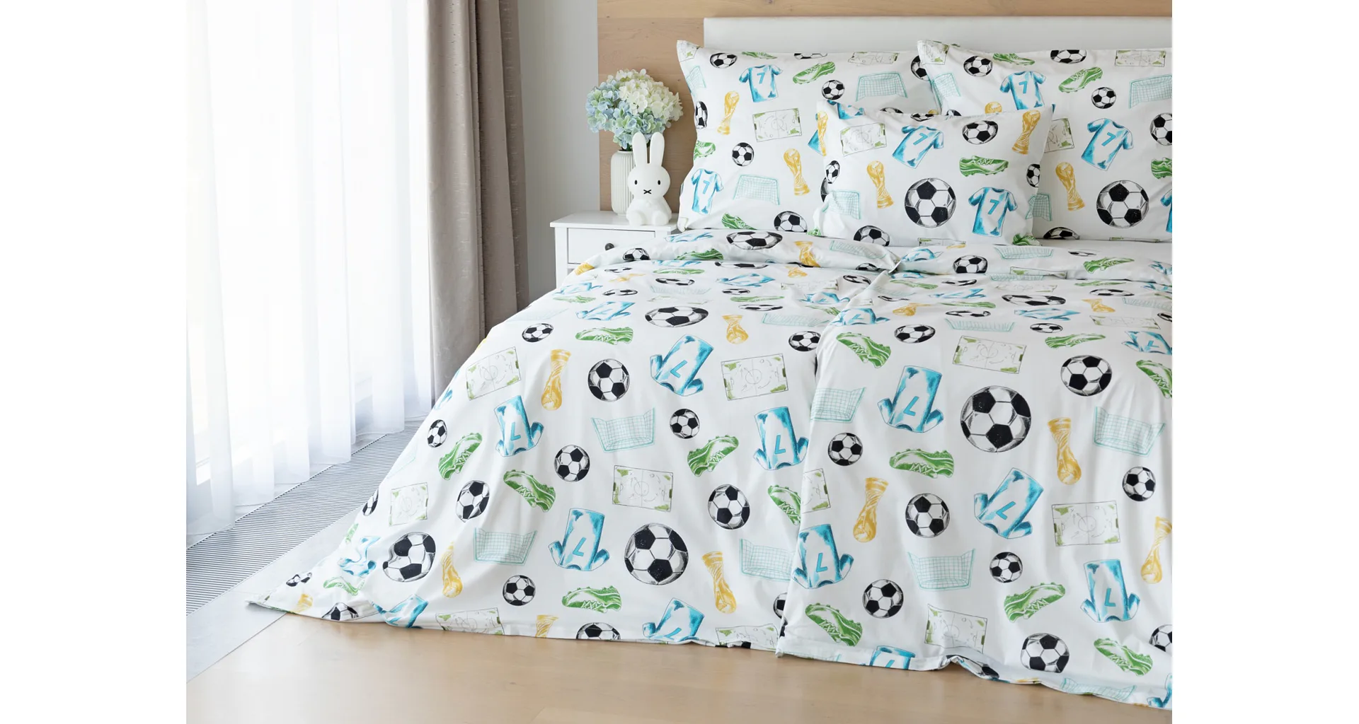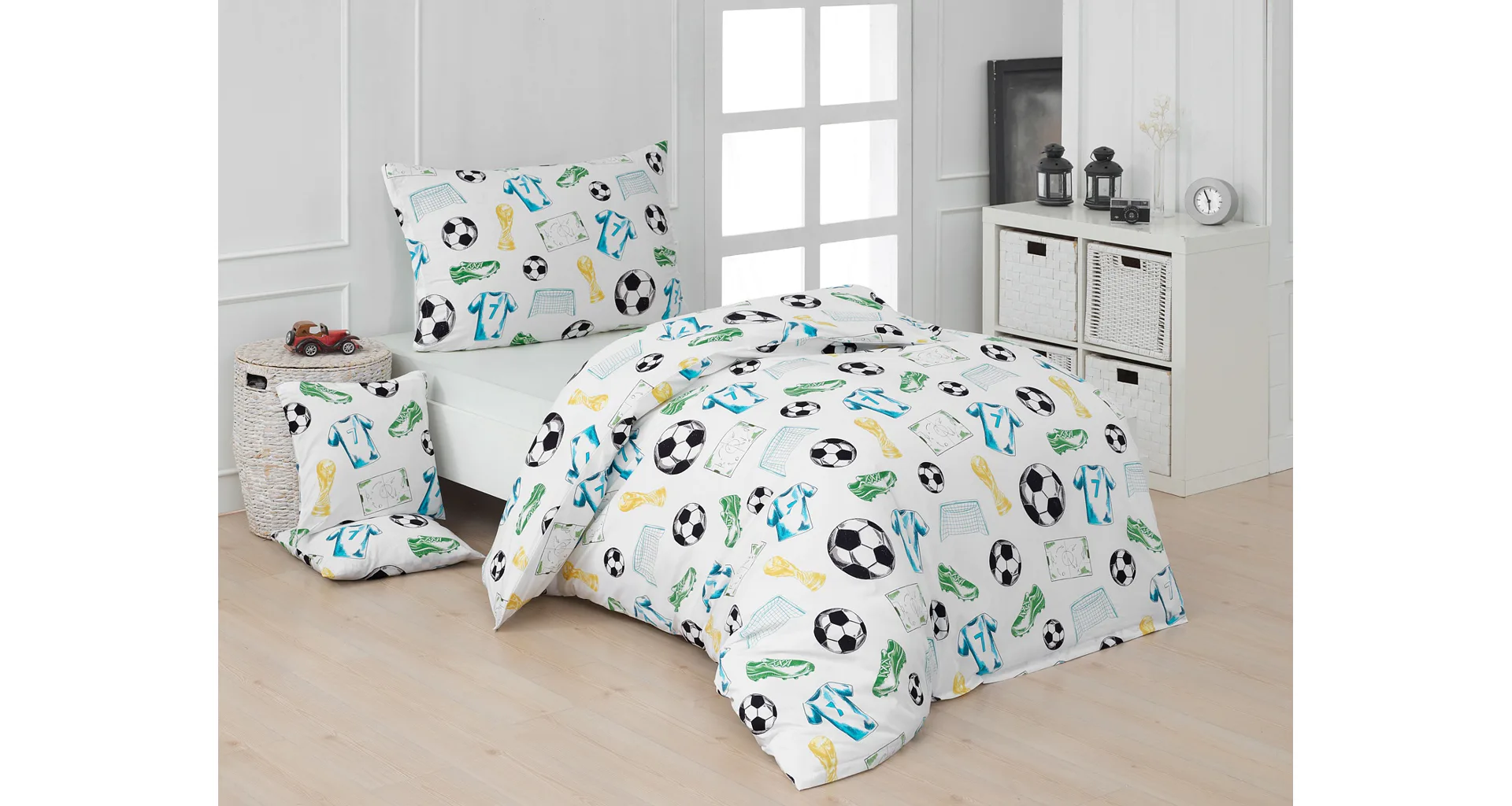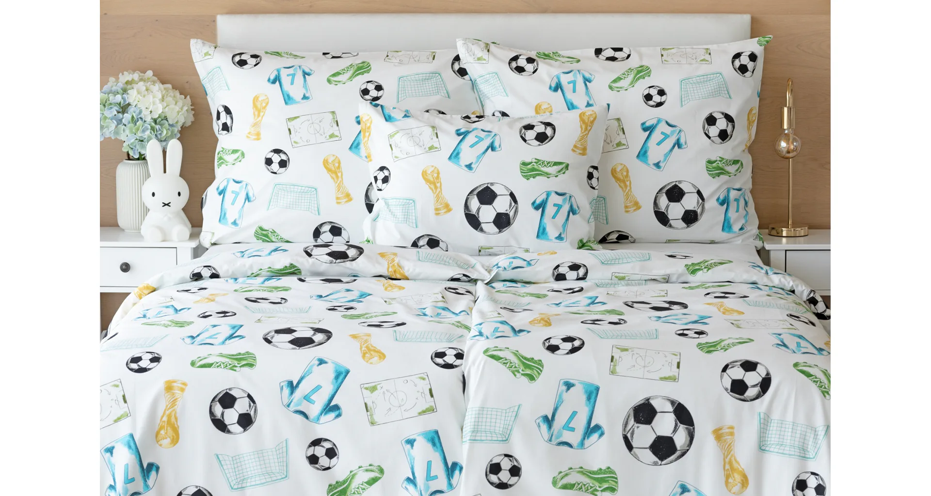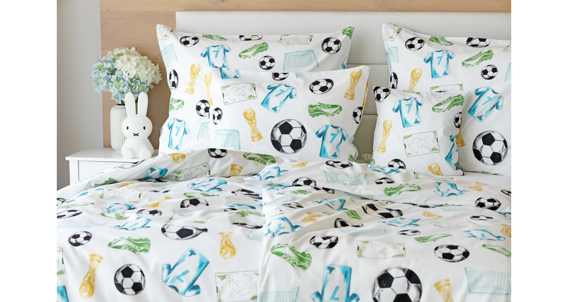 Potěšte své dítko novým bavlněným povlečením Sporty s fotbalovou tematikou. Oblíbený sportovní motiv kombinuje atraktivní barvy na bílém podkladu. Díky stoprocentní prvotřídní bavlně budou spokojeně usínat děti i rodiče.