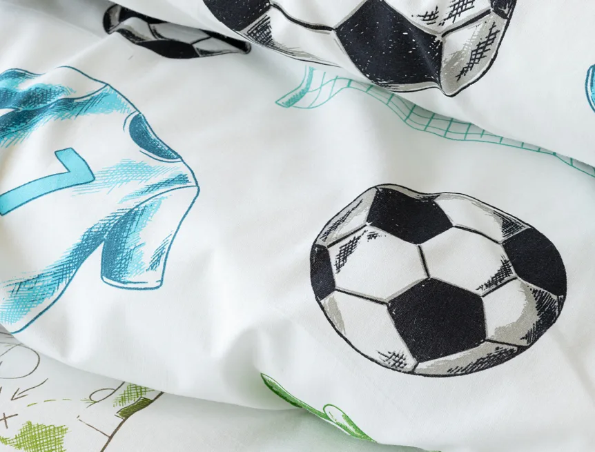 Potěšte své dítko novým bavlněným povlečením Sporty s fotbalovou tematikou. Oblíbený sportovní motiv kombinuje atraktivní barvy na bílém podkladu. Díky stoprocentní prvotřídní bavlně budou spokojeně usínat děti i rodiče.