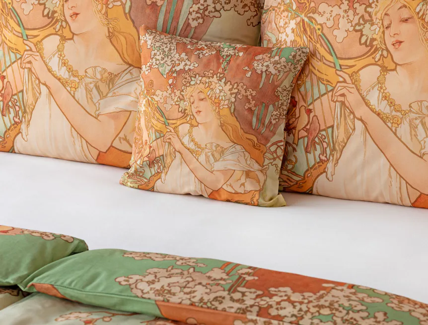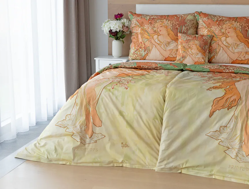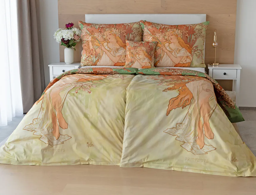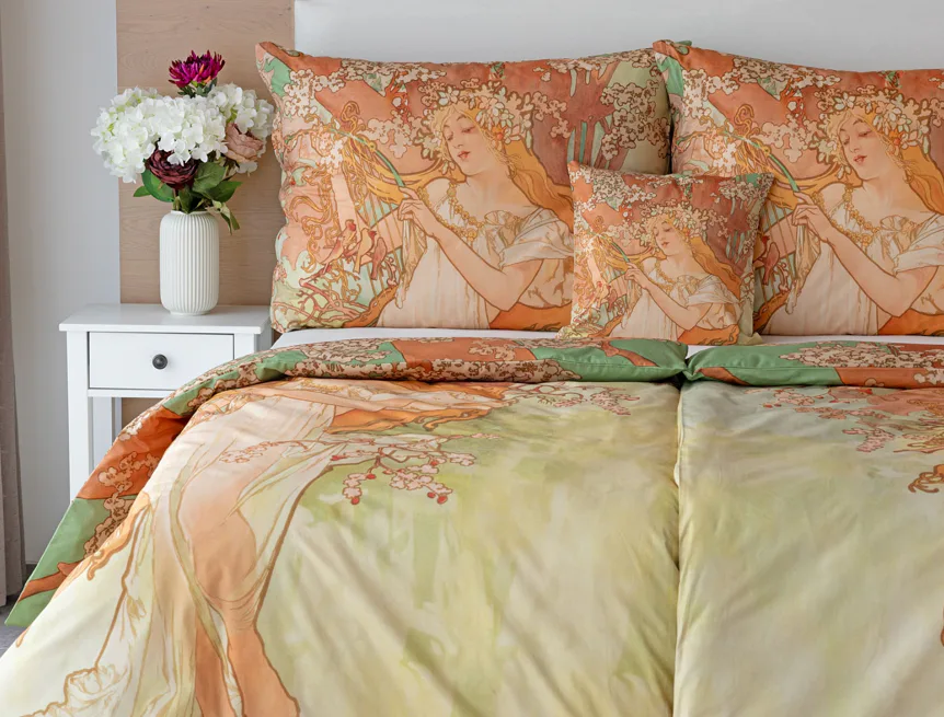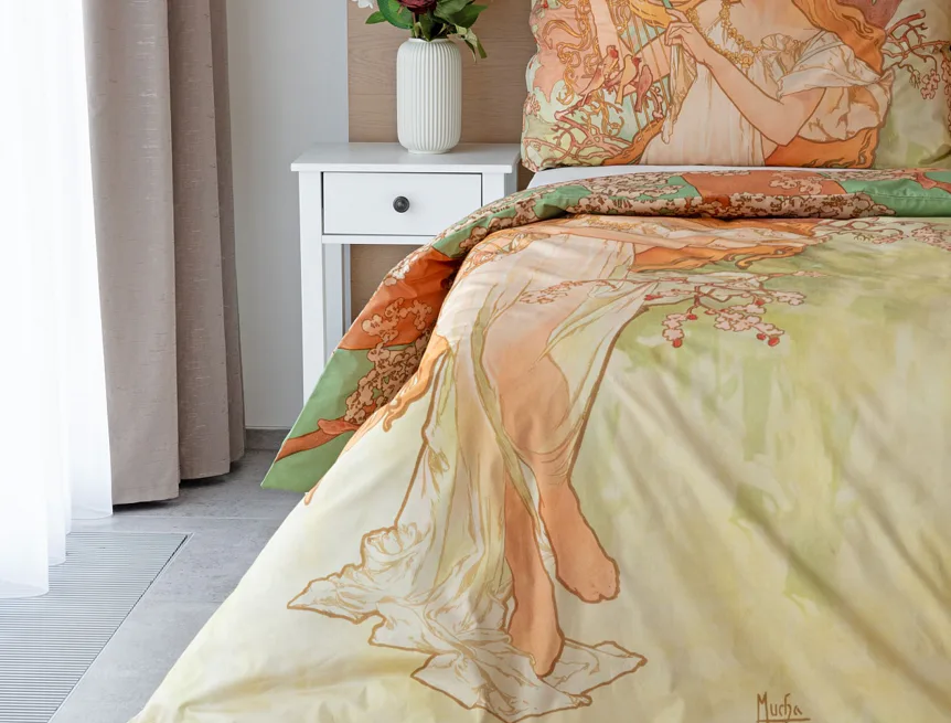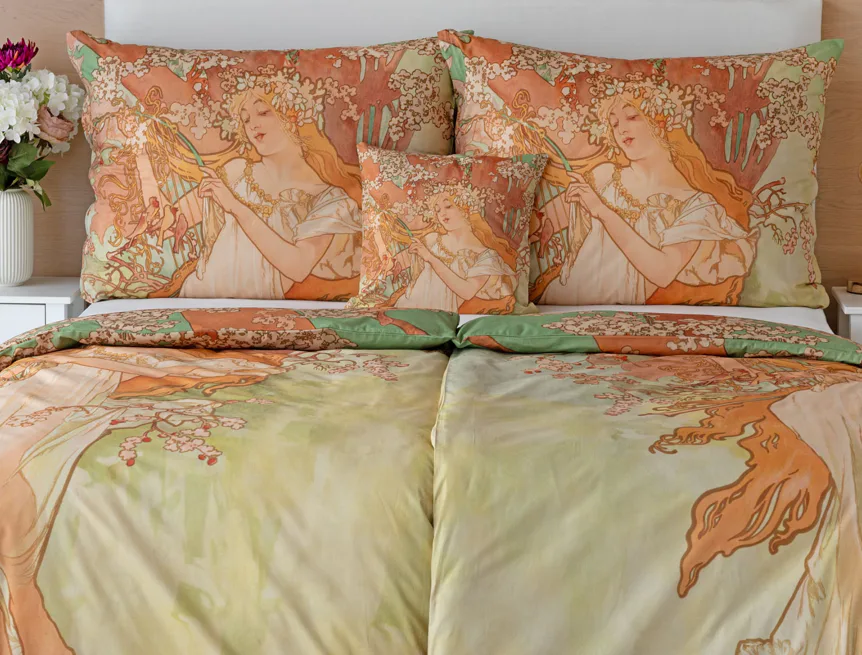 Pečlivě vybrané motivy z díla světově známého malíře Alfonse Muchy teď mohou zdobit váš interiér v podobě luxusního bavlněného povlečení. Vdechněte své ložnici jarní atmosféru s povlečením Spring