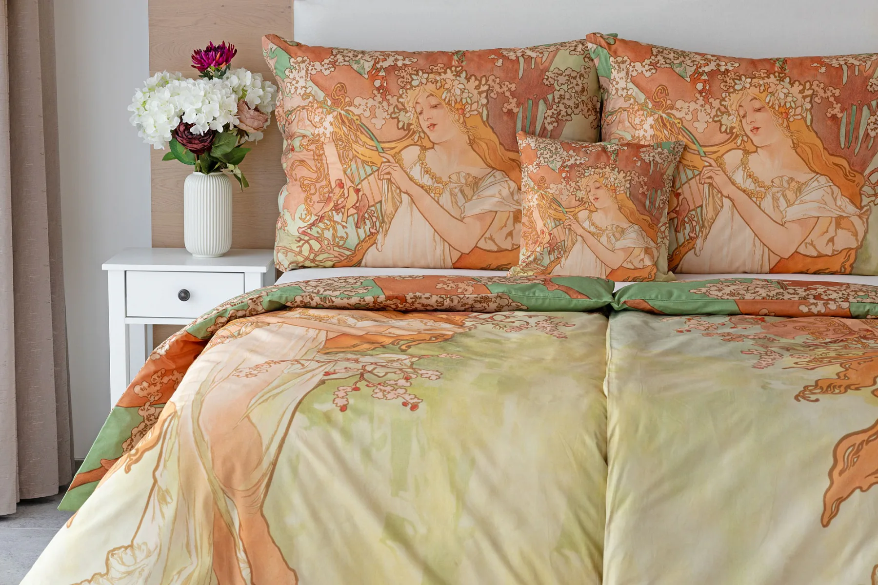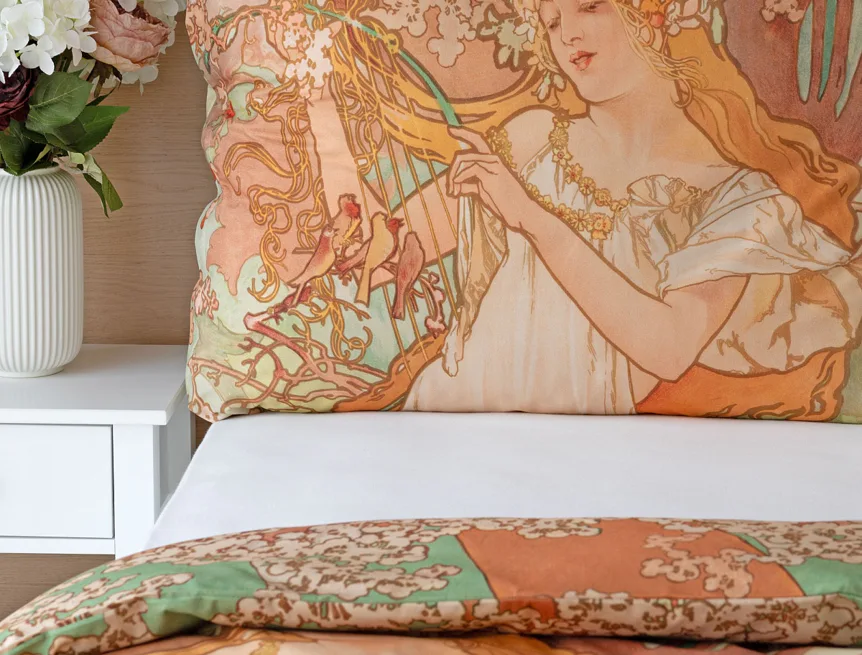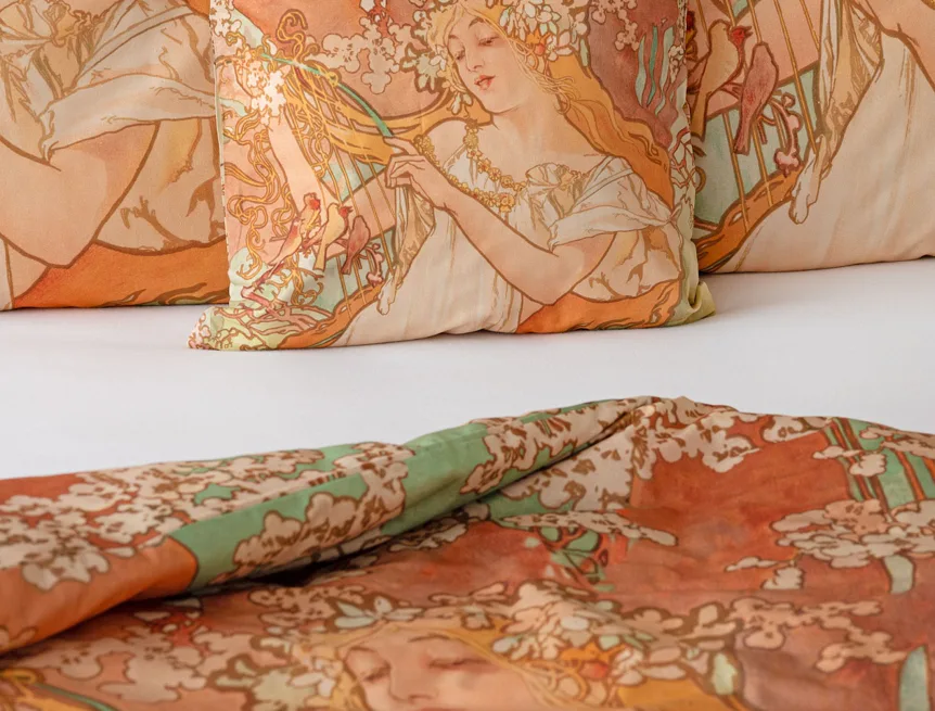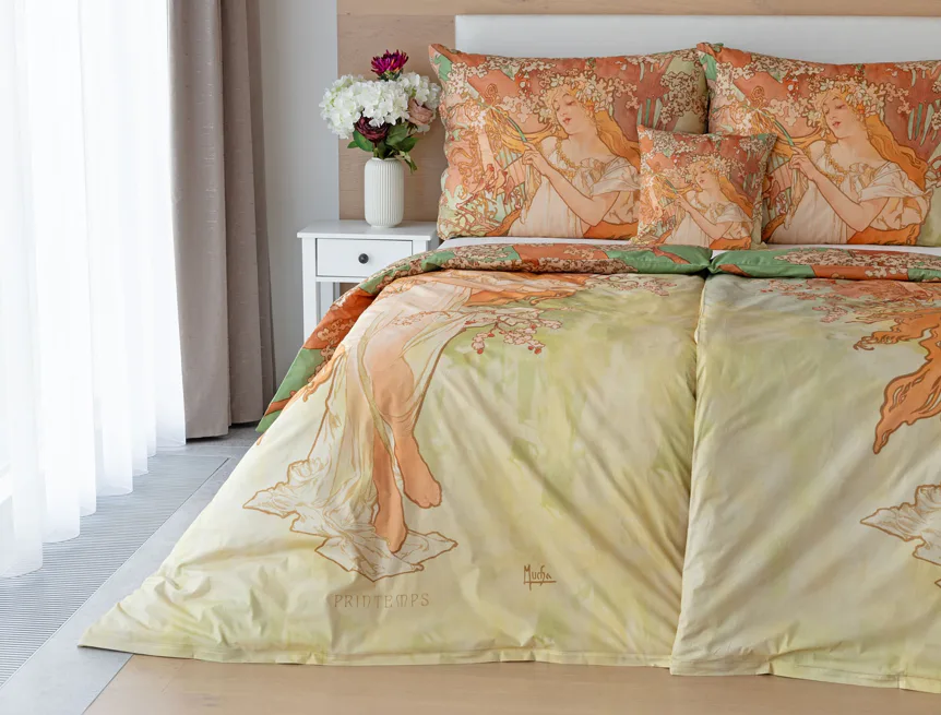 Pečlivě vybrané motivy z díla světově známého malíře Alfonse Muchy teď mohou zdobit váš interiér v podobě luxusního bavlněného povlečení. Vdechněte své ložnici jarní atmosféru s povlečením Spring