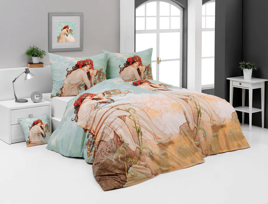 Pečlivě vybrané motivy z díla světově známého malíře Alfonse Muchy teď mohou zdobit váš interiér v podobě luxusního bavlněného povlečení. Dopřejte si svěží vstávání do letních dnů s povlečením Summer