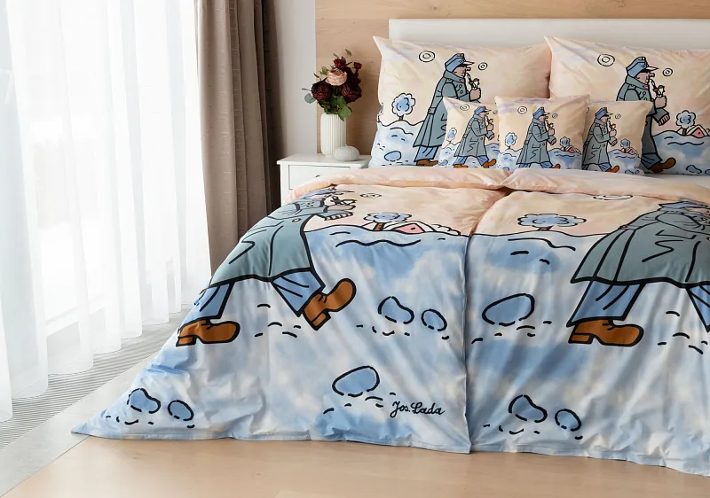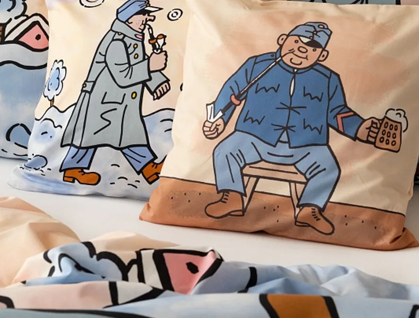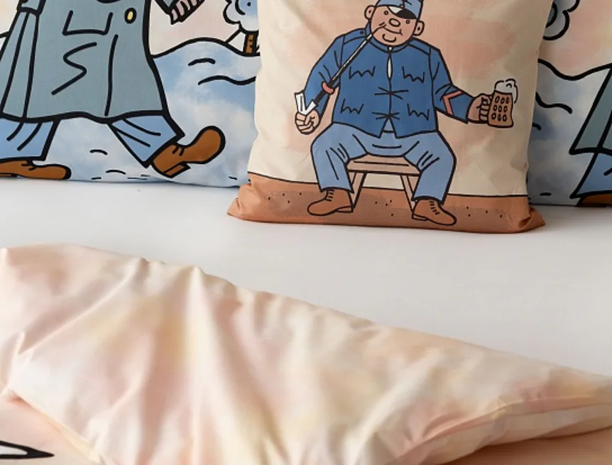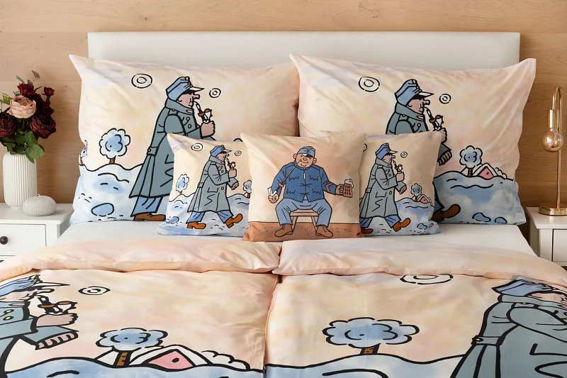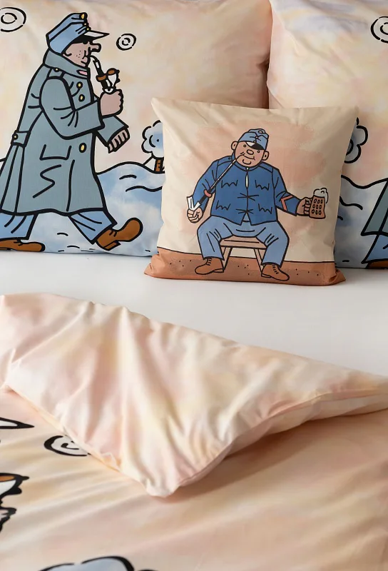 Bavlněné povlečení Švejk s fajfkou potěší všechny milovníky české tradice. Klasické dílo české literatury, které je nerozlučně spjato s ilustracemi Josefa Lady, ožívá na hebké bavlně. Připomeňte si osudy dobrého vojáka Švejka prostřednictvím luxusního povlečení a nechte se ukolébat ke krásným snům.