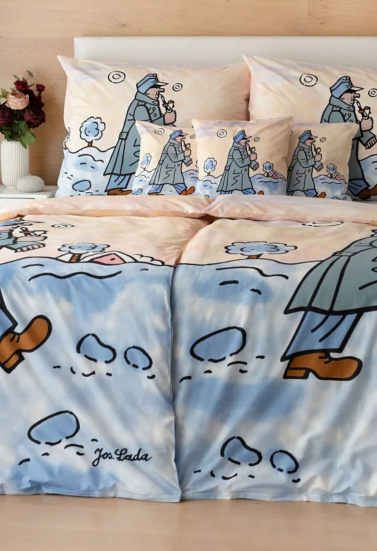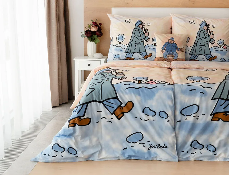 Povlečení z kolekce Josef Lada vyrábíme s ohledem na dostupná tisková data pouze v klasickém rozměru přikrývek 140x200 cm, případně v prodloužené délce 140x220 cm.